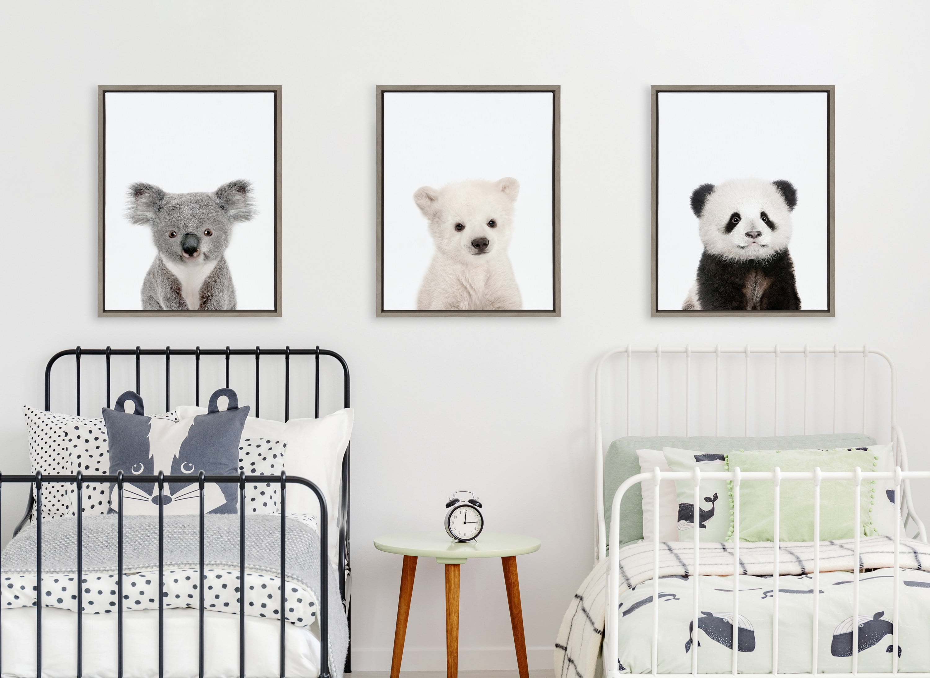 TRANSITIONAL CANVAS WALL ART: Animal art on framed high quality gallery-wrapped canvas. Print name: “Three Bears” by Amy Peterson EASY TO HANG: Metal sawtooth hangers come attached on the inset MDF back for easy wall display LARGE SIZE CANVAS: The frame is lightweight polystyrene with display dimensions of 18″ x 24″ LOCALLY FRAMED: Gallery wrapped canvas is printed with fade resistant inks and framed in Waunakee, Wisconsin, USA of domestic and imported parts ARTIST DESIGNED: Print “Three Bears” ©2019 Amy Peterson