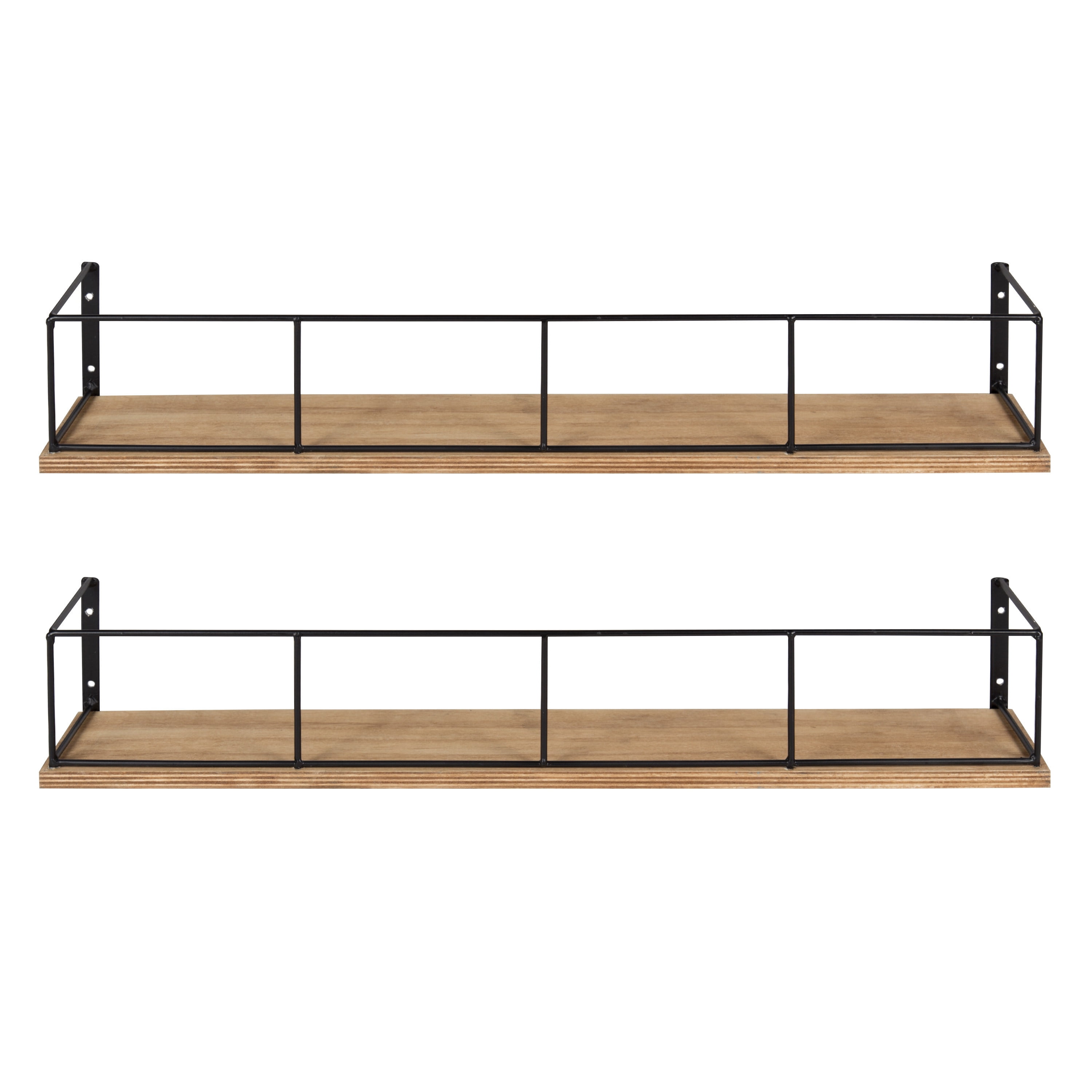 Kate and Laurel Benbrook 24 inch 2-Pack Wood and Metal Floating Wall Shelves, Rustic Brown and Black