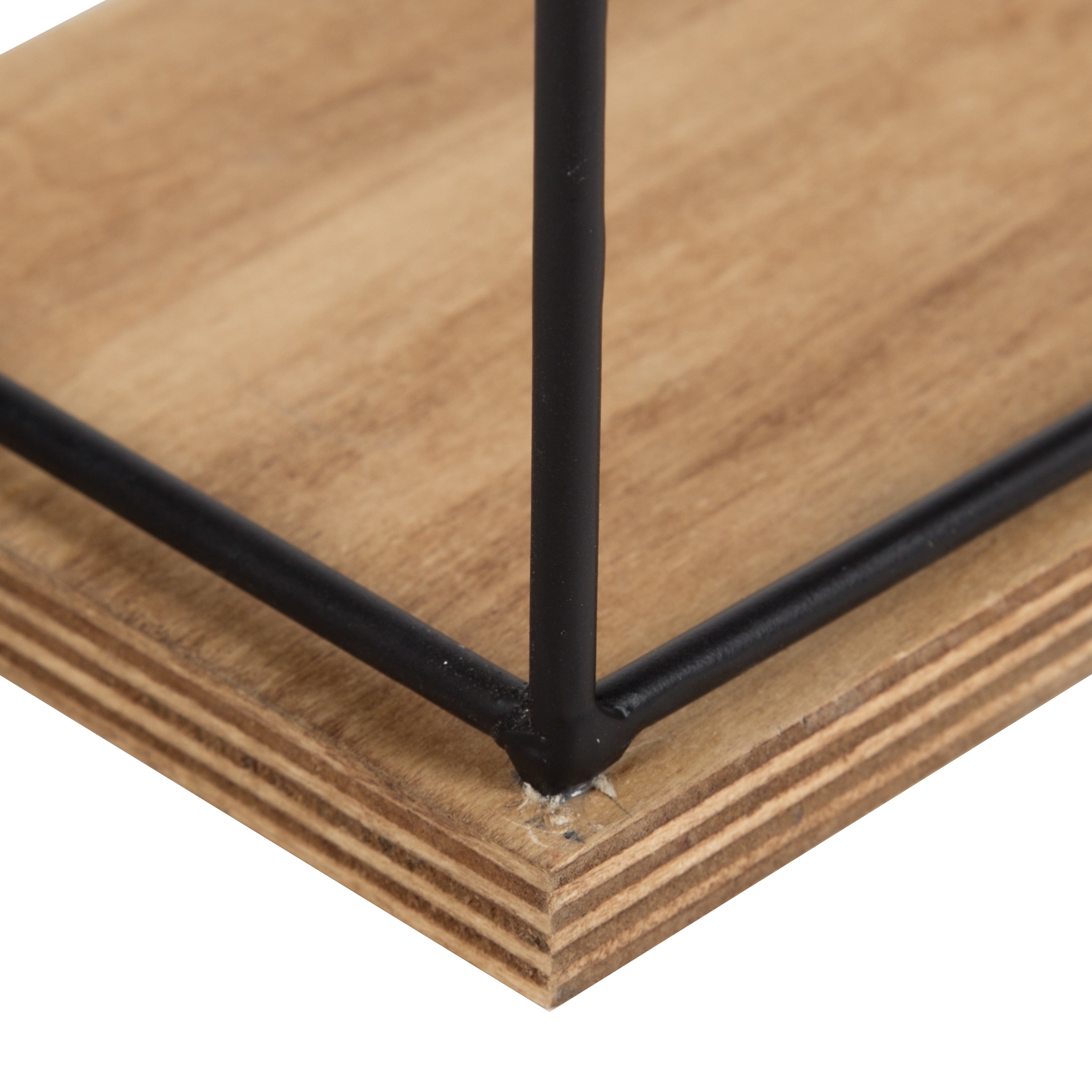 Decorate your home in beautiful modern chic style with these metal and wood shelves. These shelves can organize and display your framed photos, office supplies, or other decorative knickknacks. They are a perfect wall accent for your office or home to display in your kitchen, bathroom, or bedroom. These shelves are constructed of metal and wood. The wall display dimensions are 24 inches wide by 4 inches deep by 4 inches high. The shelves arrive completed assembled ready for use. They have holes drilled in to the metal frame for easy and secure wall display. Decorate and organize in modern design in any room of the home with these lovely accent shelves.