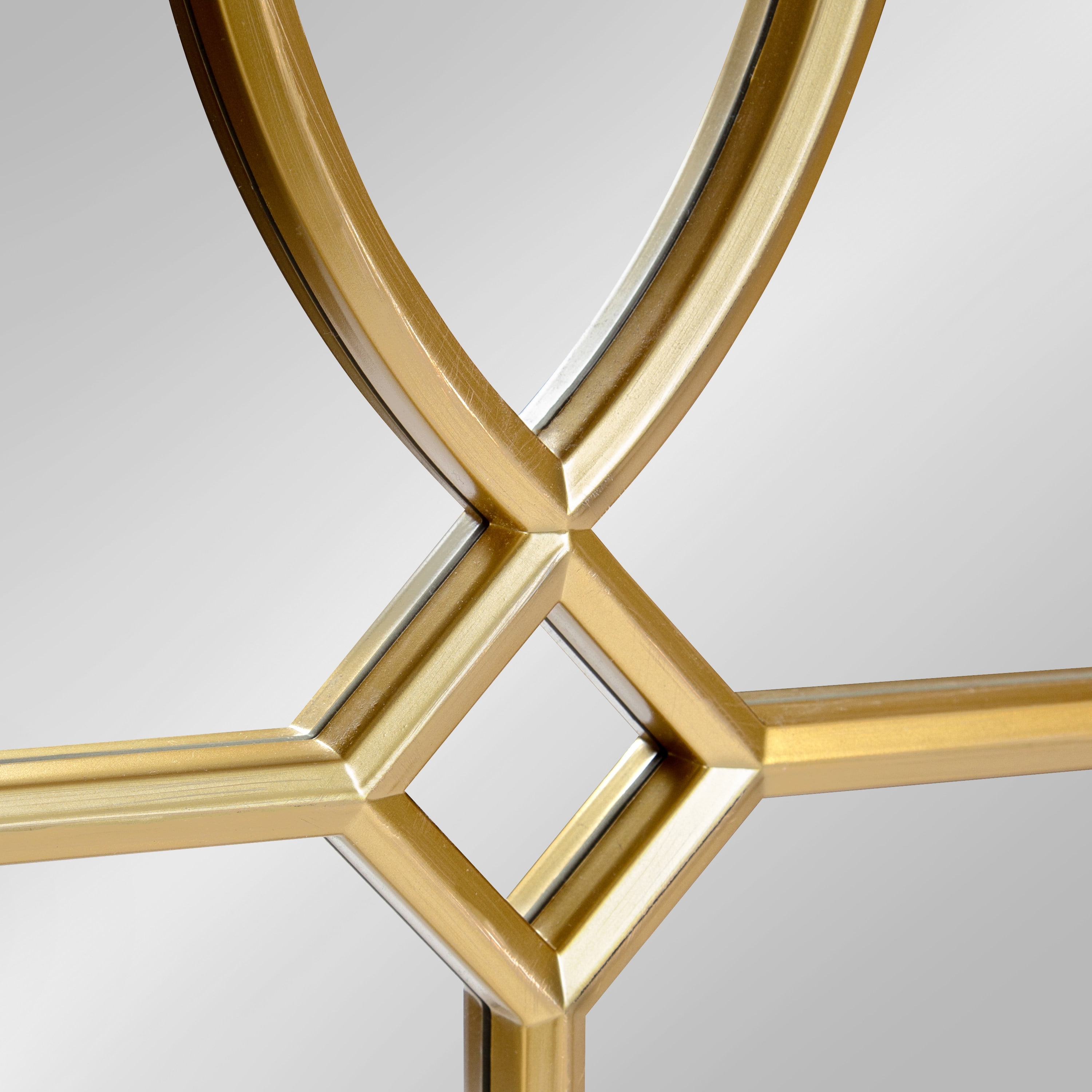 Decorative framed windowpane mirror in a gorgeous gold finish will bring a modern sophisticated style to your home This accent mirror is lovely on its own or combine multiple to create a beautiful statement wall The intricate trellis design is lovely to look at and creates added interest. The overall display dimensions are 13 inches by 30 inches by 1 inch deep The D-ring hangers are all ready attached to the back for easy horizontal or vertical wall display Accent mirror is constructed of a resilient plastic material that is lighter weight for easy wall hanging