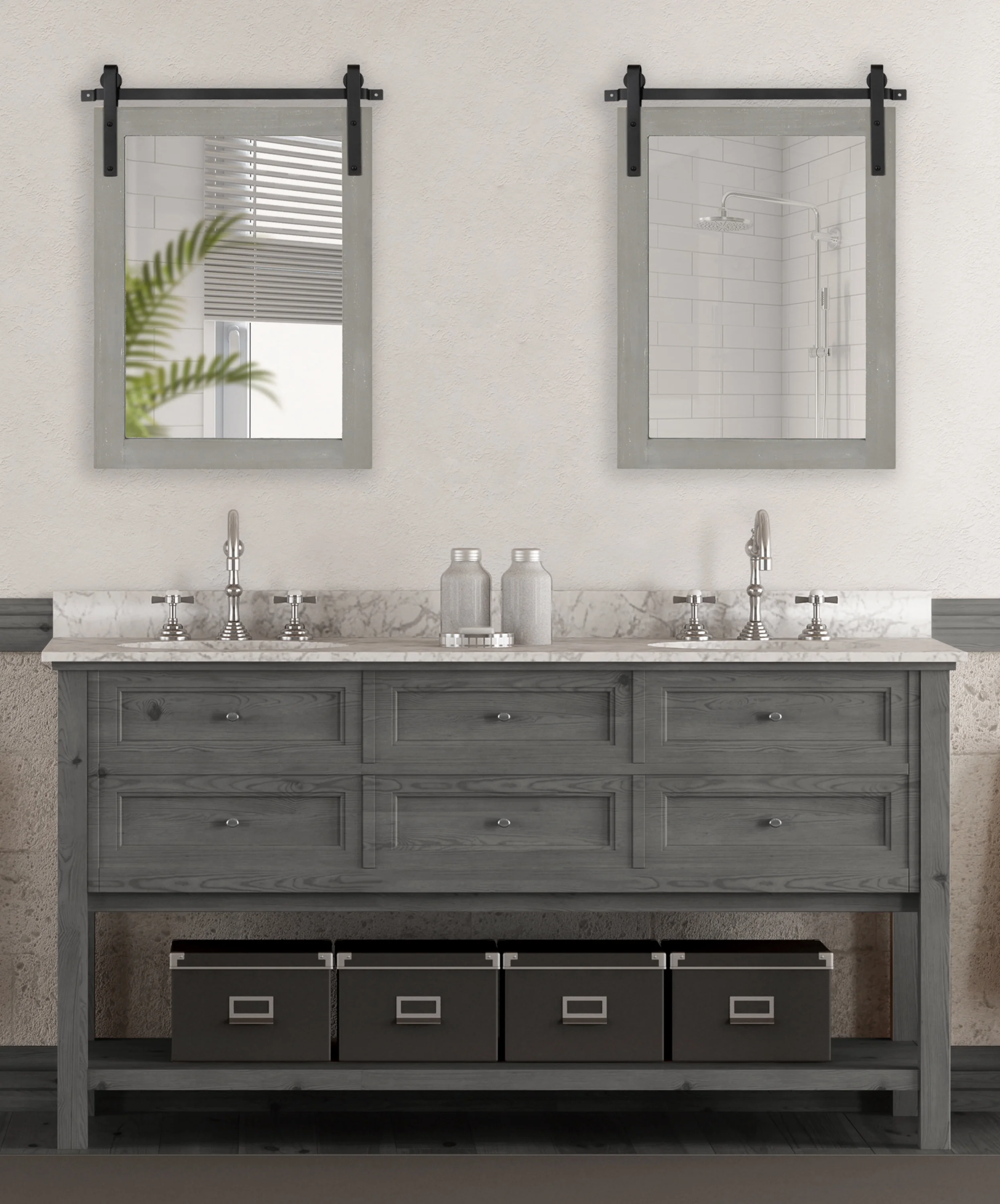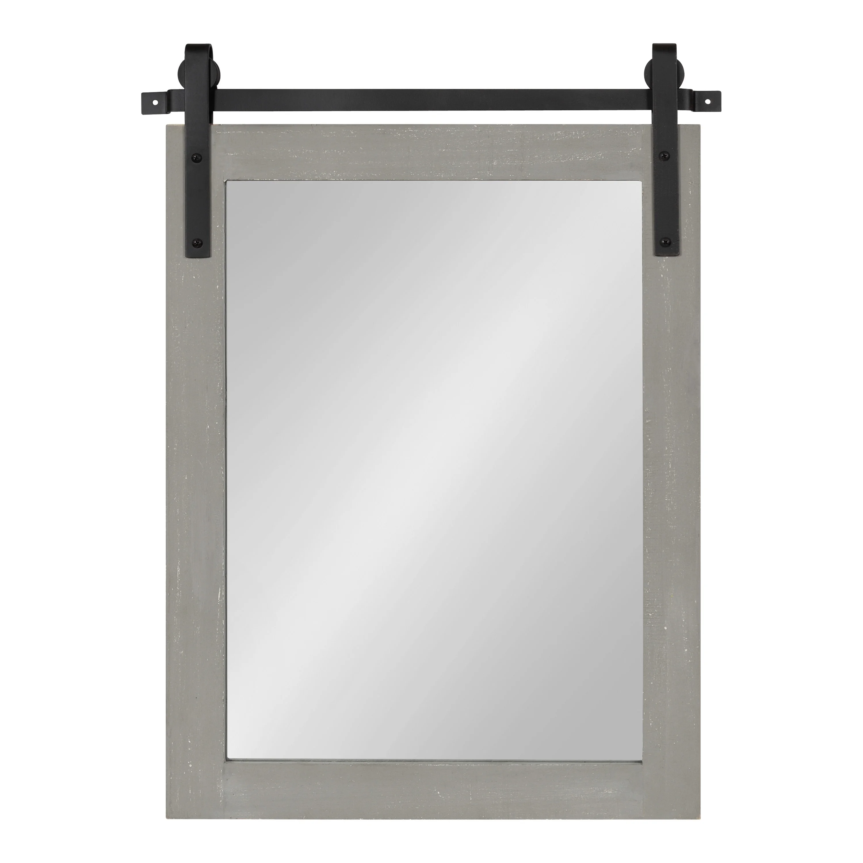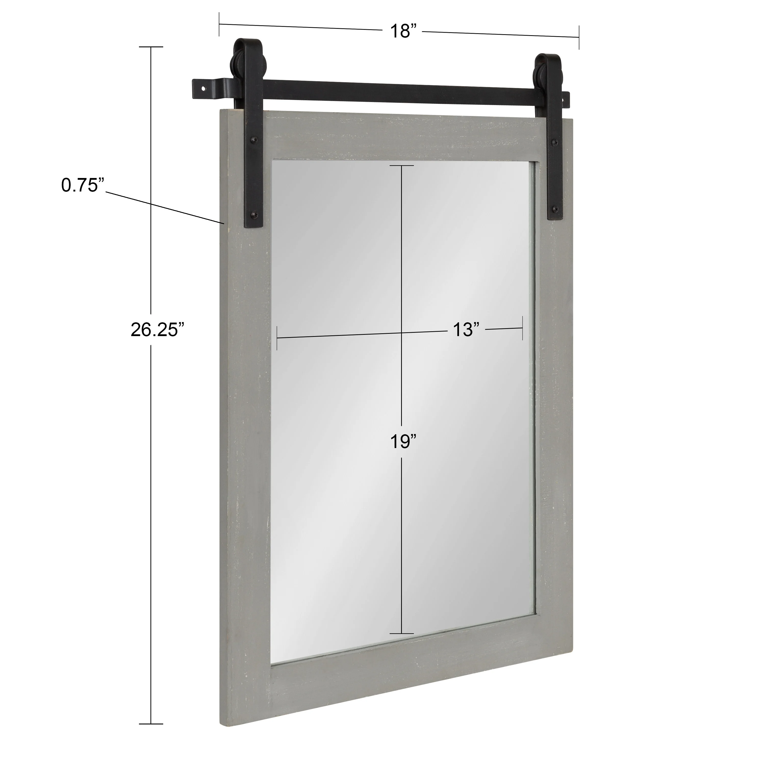 Kate and Laurel Cates Farmhouse Wood Framed Wall Mirror, 18 x 26, Gray, Barn Door-Inspired Rustic Mirrors for Wall