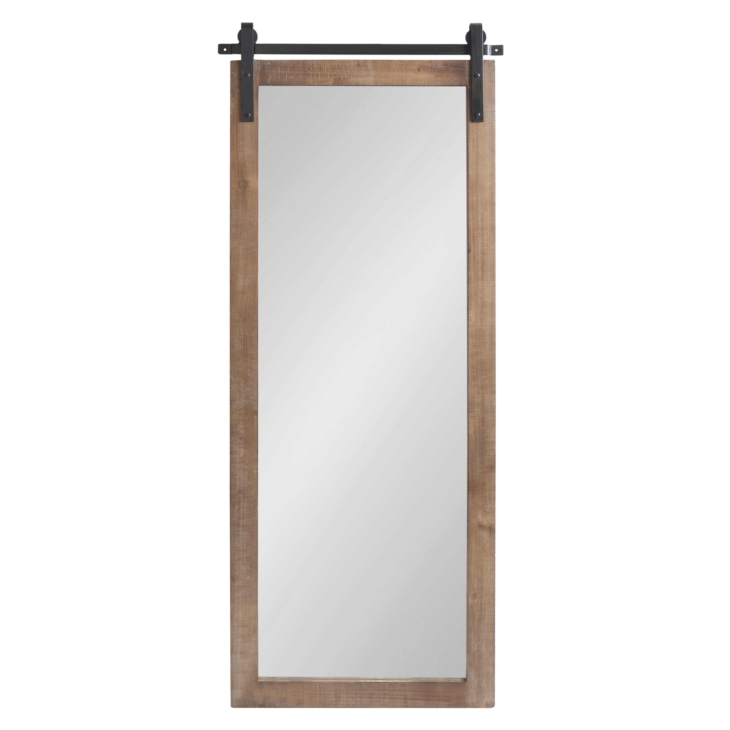 Kate and Laurel Cates Farmhouse Wood Framed Wall Mirror, 18 x 50, Rustic Brown, Barn Door-Inspired Rustic Mirrors for Wall