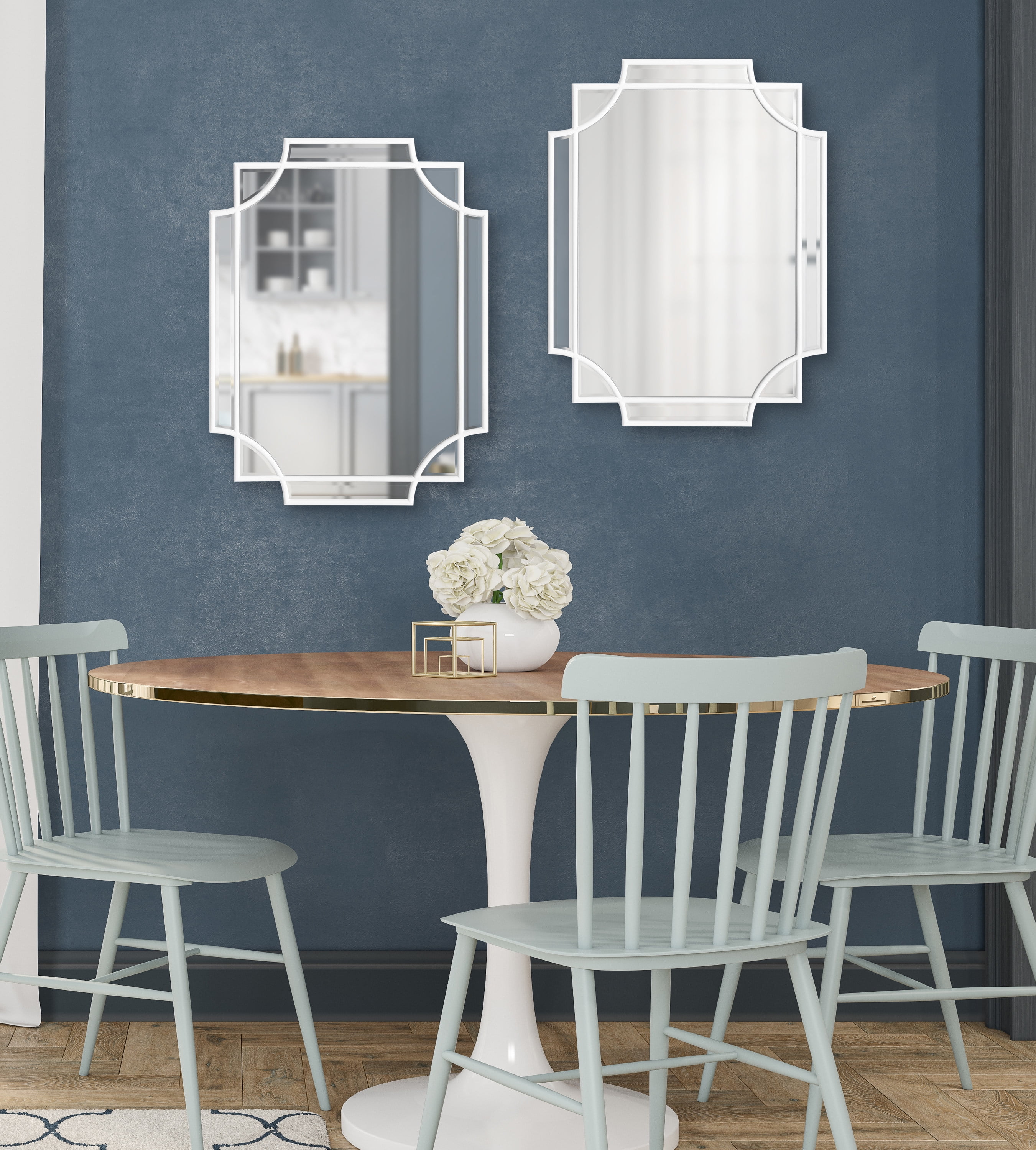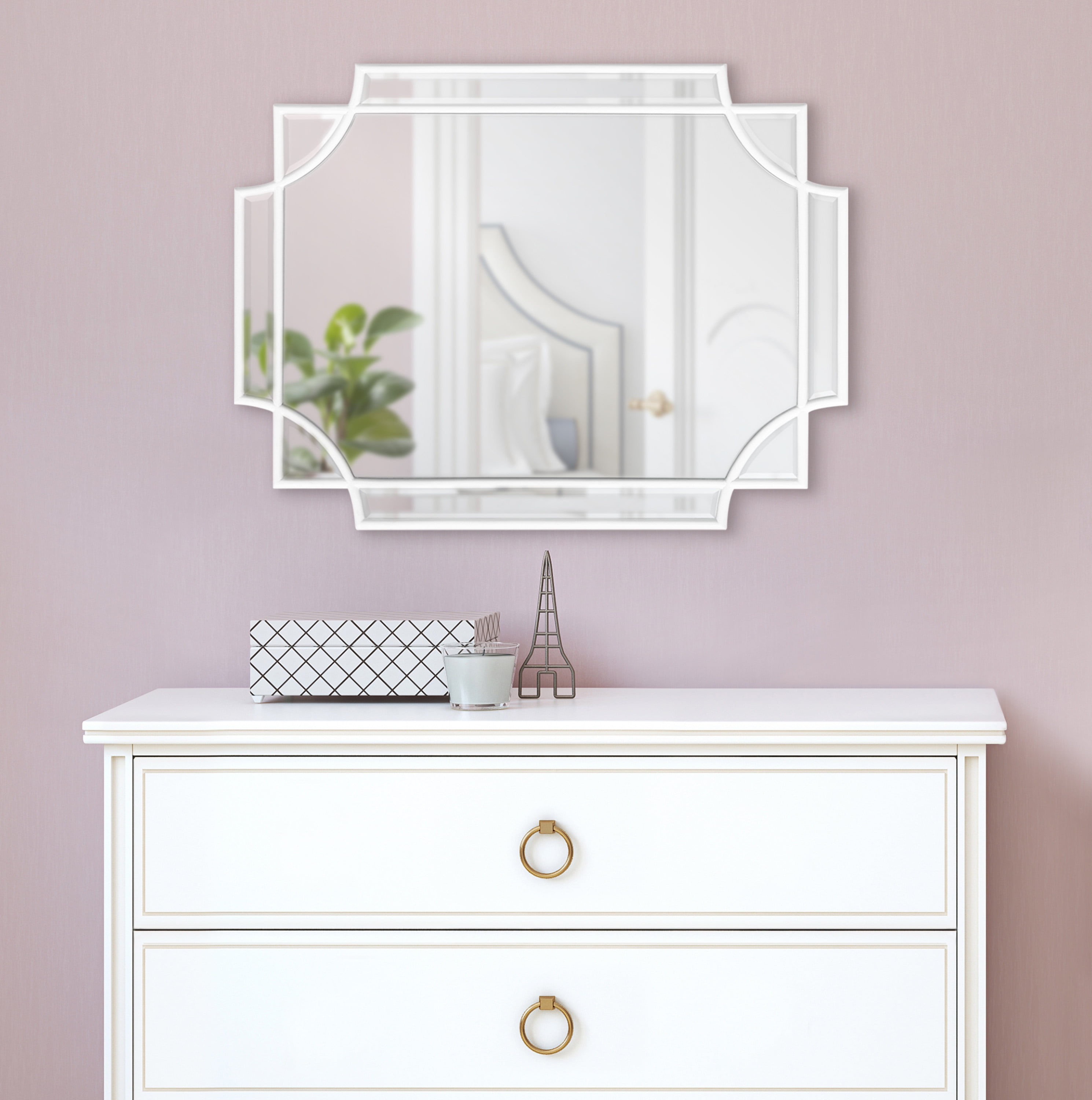 Kate and Laurel Minuette Glam Wall Mirror, 18 x 24, White, Boho-Chic Home Decor for Wall
