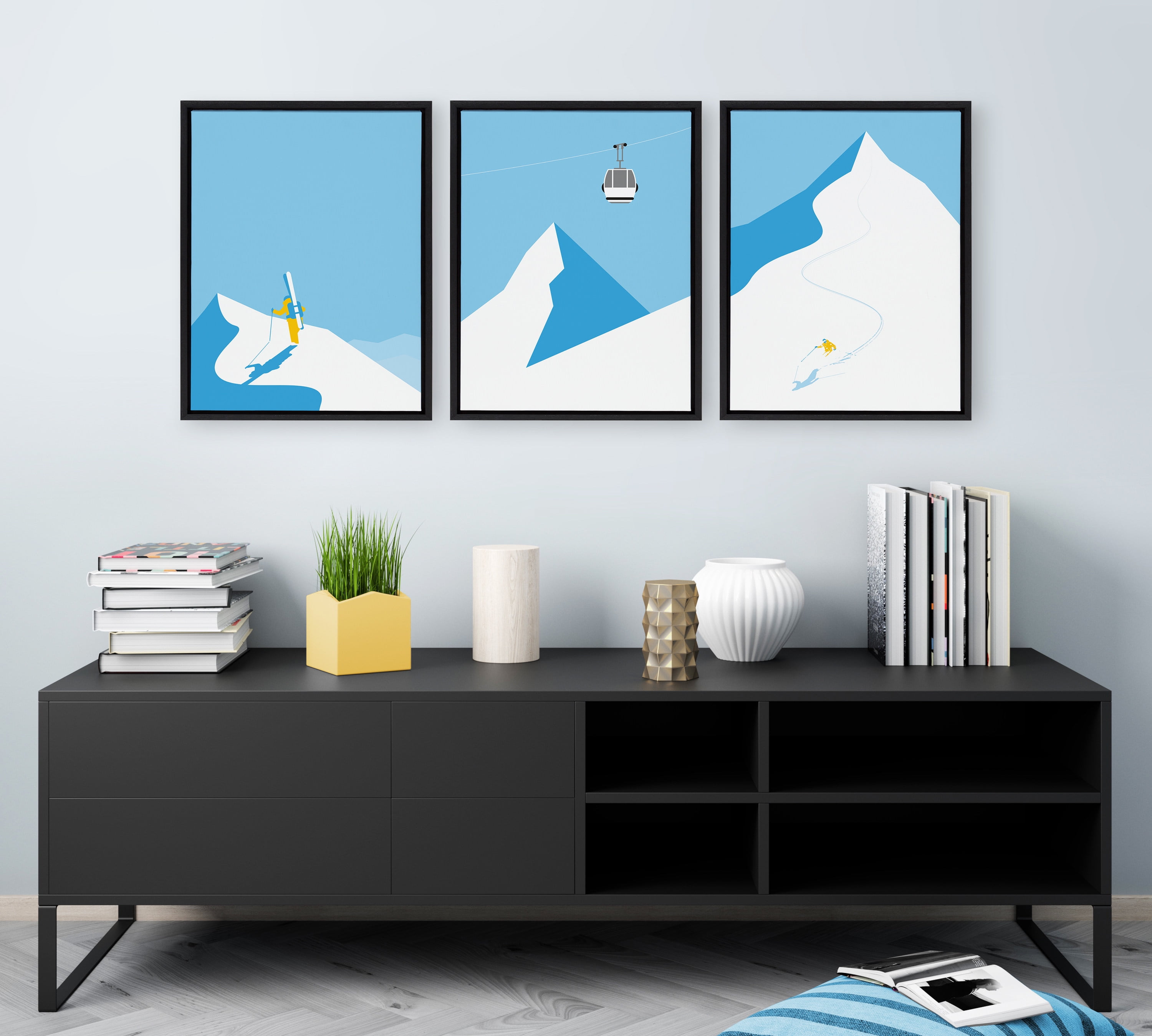 TRANSITIONAL CANVAS WALL ART: Ski art on framed high quality gallery-wrapped canvas. Print name: “Downhill Skier” by Rocket Jack EASY TO HANG: Metal sawtooth hangers come attached on the inset MDF back for easy wall display LARGE SIZE CANVAS: Each frame is constructed of lightweight polystyrene with display dimensions of 18″ x 24″ LOCALLY FRAMED: Gallery wrapped canvas is printed with fade resistant inks and framed in Waunakee, Wisconsin, USA of domestic and imported parts ARTIST DESIGNED: Prints “Ski Hike”, “Ski Bubble” and “Downhill Skier” ©2019 RocketJack.co.uk
