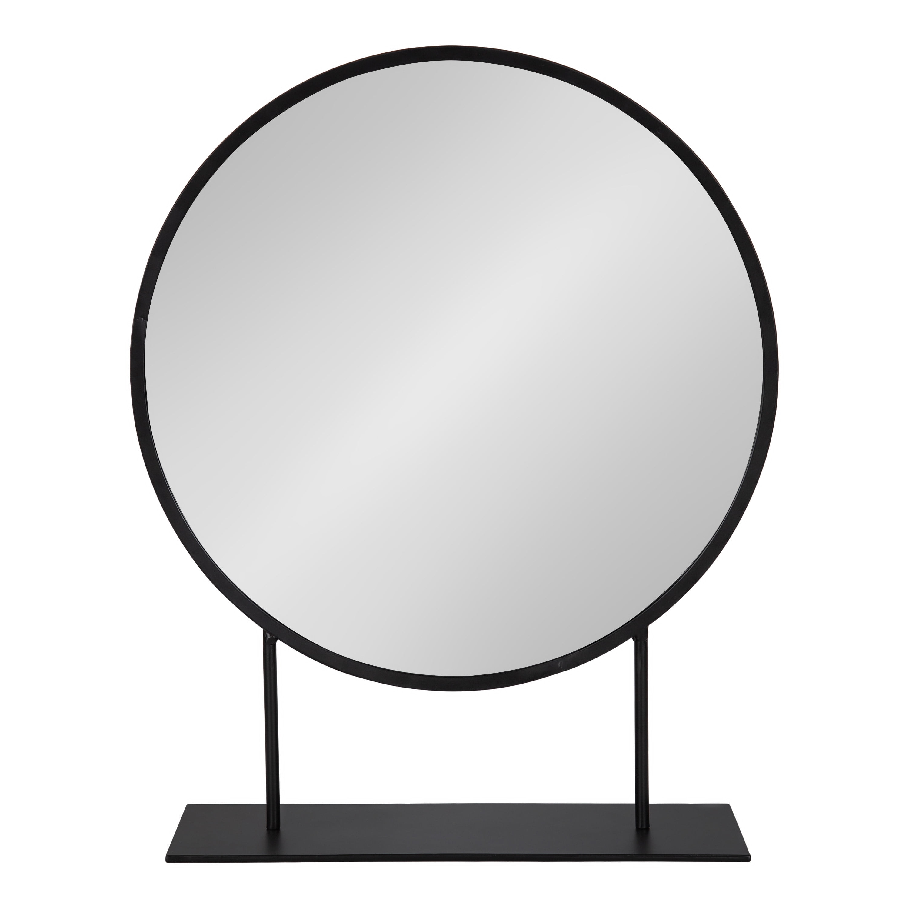 Kate and Laurel Rouen Modern Glam Round Metal Frame Table Mirror with Stand, Black