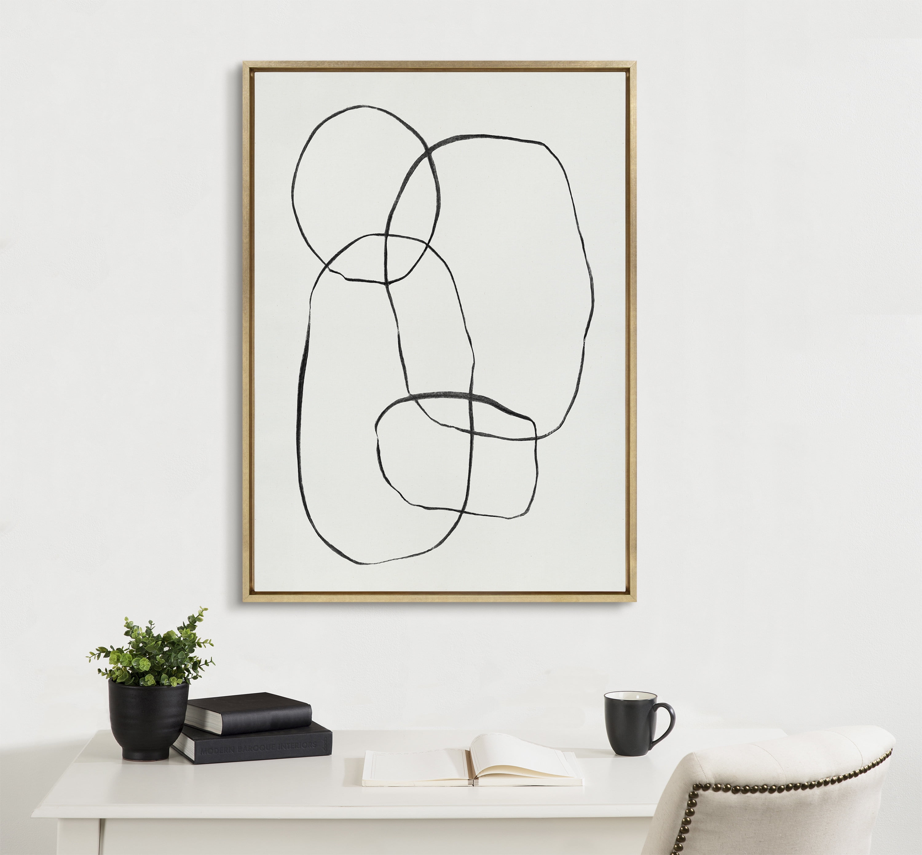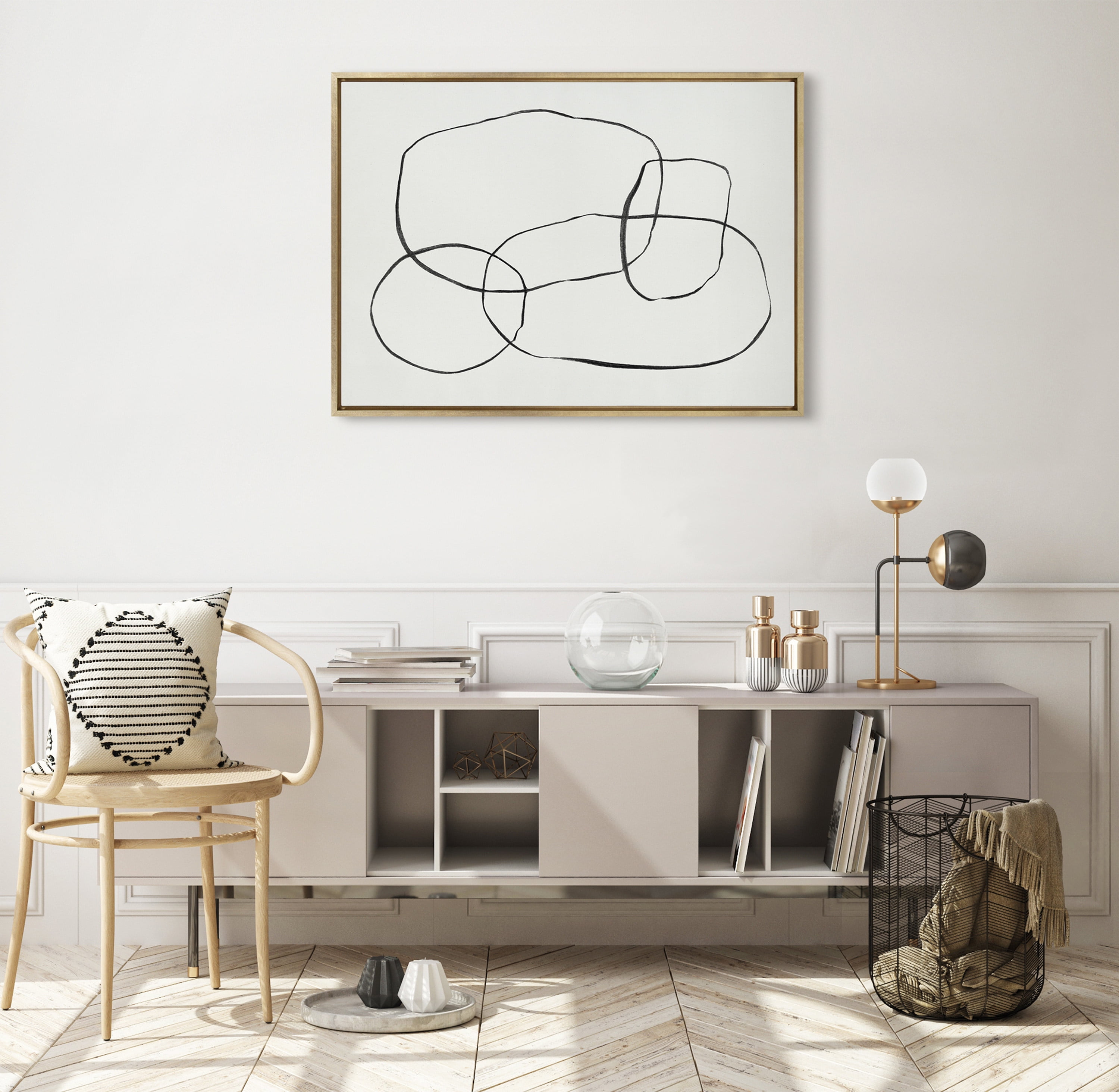 TRANSITIONAL CANVAS WALL ART: Abstract art on framed high-quality linen textured canvas. Display dimensions are 28 inches by 38 inches QUALITY MATERIALS: Printed with UV-resistant inks to provide increased durability and fade resistance EASY TO HANG: The frame is made with a premium lightweight polystyrene and has metal sawtooth hangers already attached to the back LOCALLY FRAMED: Gallery wrapped canvas is printed and hand framed in Waunakee, Wisconsin, USA of domestic and imported parts ARTIST DESIGNED: Print “871 Modern Circles” ©2020 SnazzyHues by Teju Reval