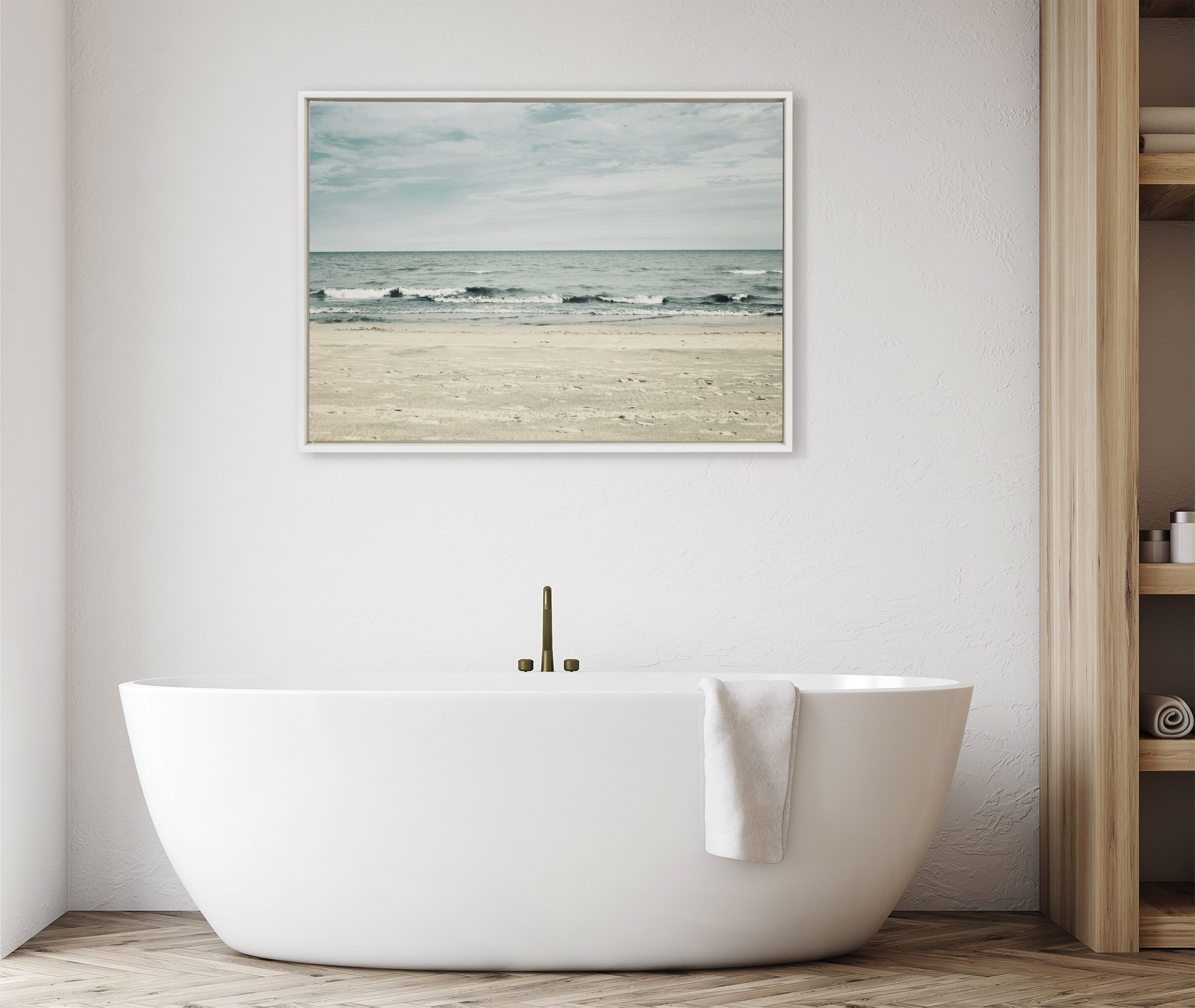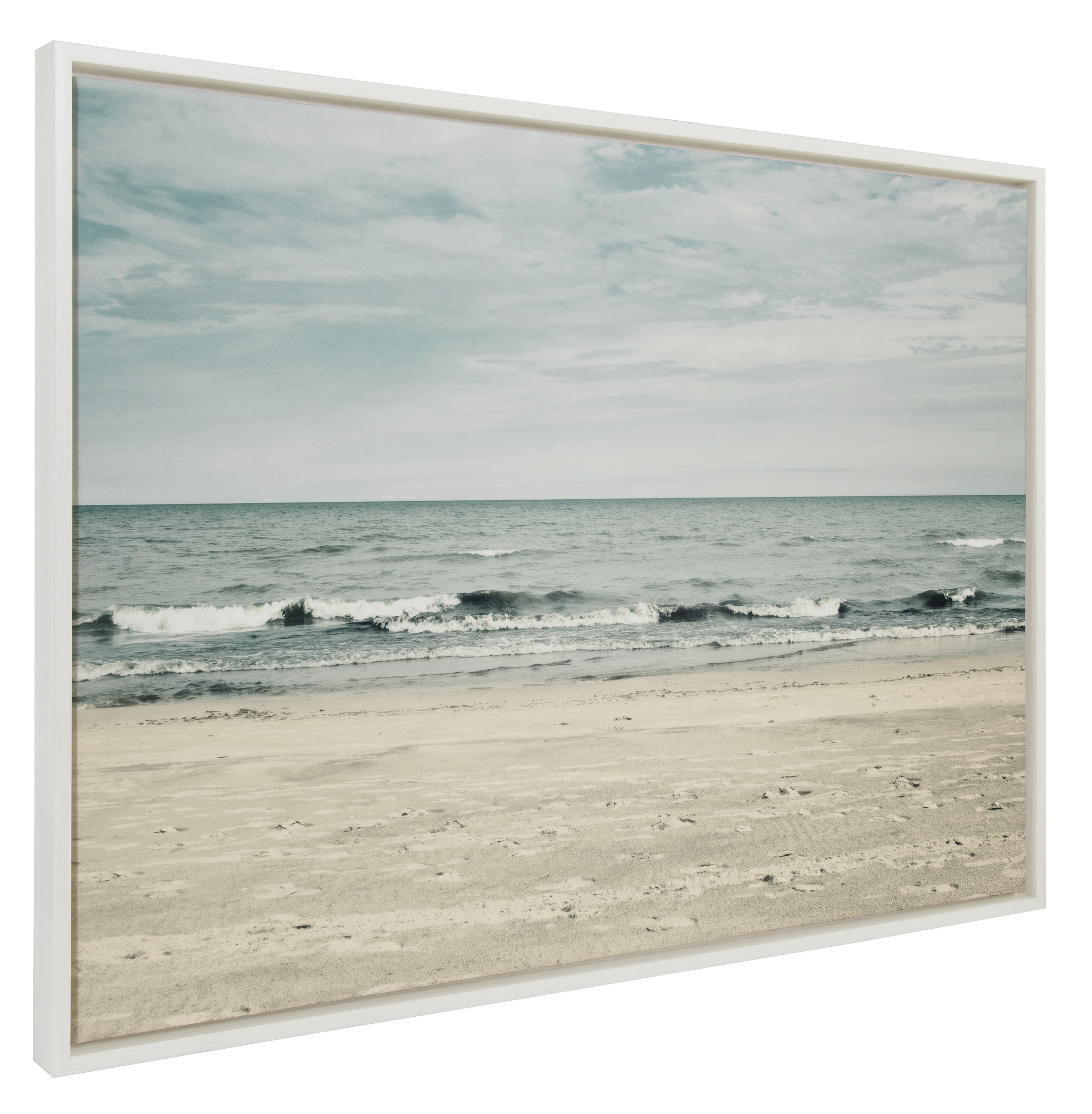 Relax by the water in this refreshing beach art for your coastal-inspired home. Framed in the USA in Waunakee, Wisconsin, this floating canvas art will be a pleasure to look at every day in your living room, bedroom, office, or any room in the home. This art print also makes an excellent gift for birthdays, holidays, or house-warming parties. Printed on gallery-wrapped canvas and framed with a lightweight polystyrene frame, this wall art has two hangers already attached to the MDF back for easy wall display. The outer dimensions are 38 inches by 28 inches by 1.6 inches. Print Name: “Beach 2”