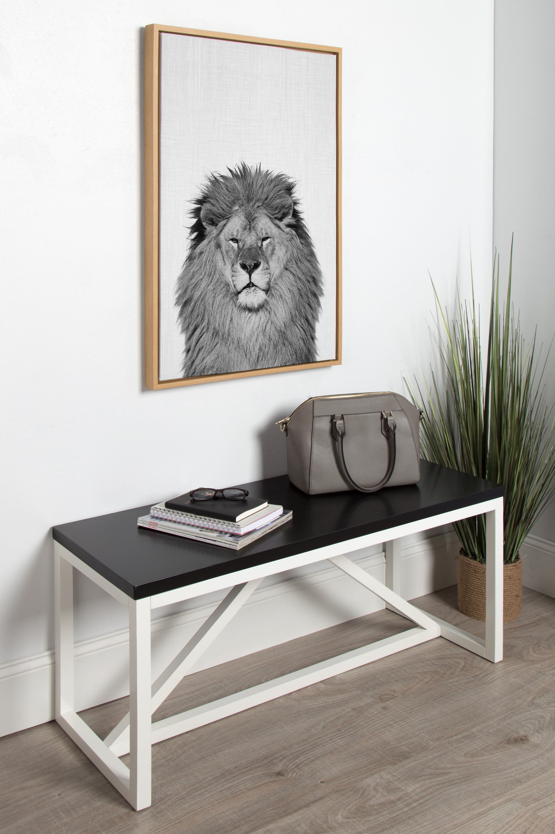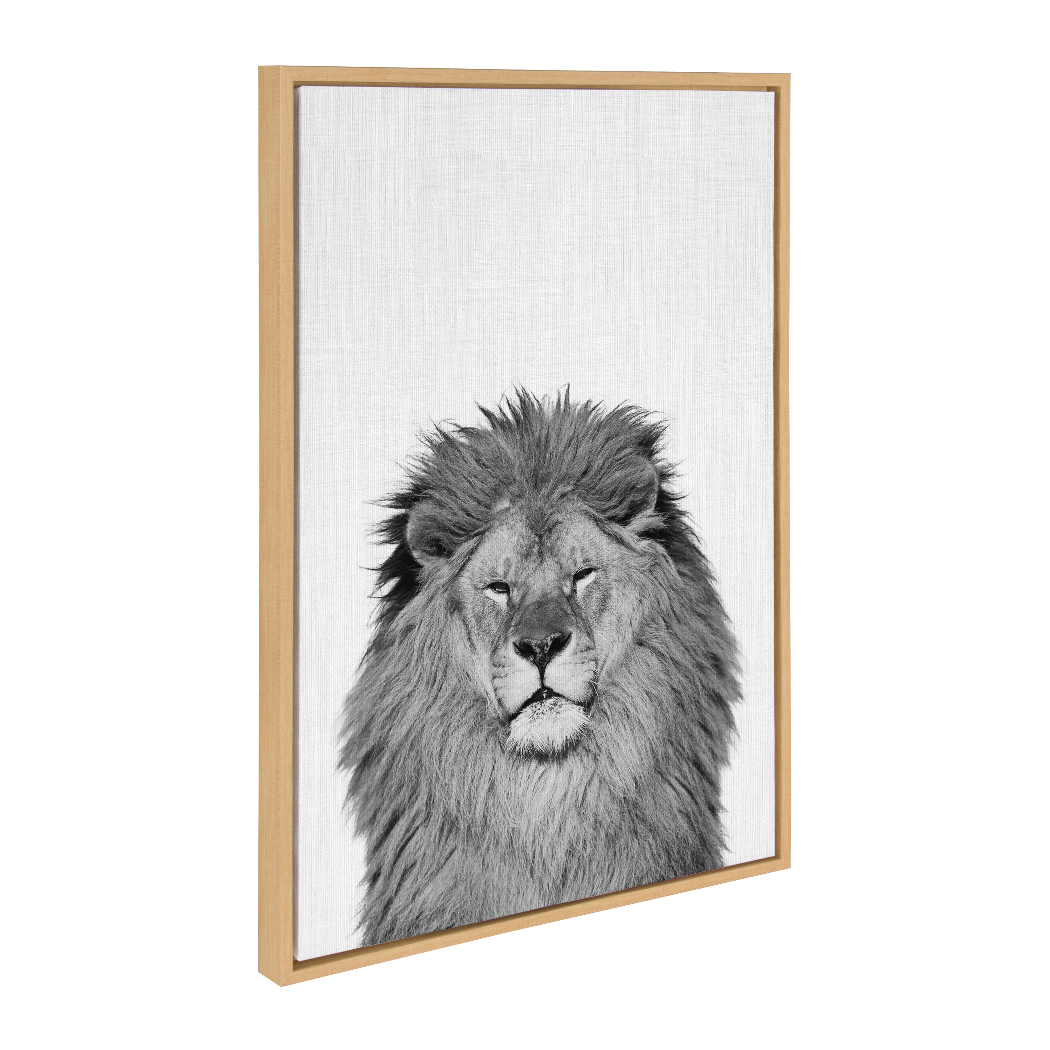 Kate and Laurel Sylvie Lion Animal Print Black and White Portrait Framed Canvas Wall Art by Simon Te Tai, 23×33 Natural