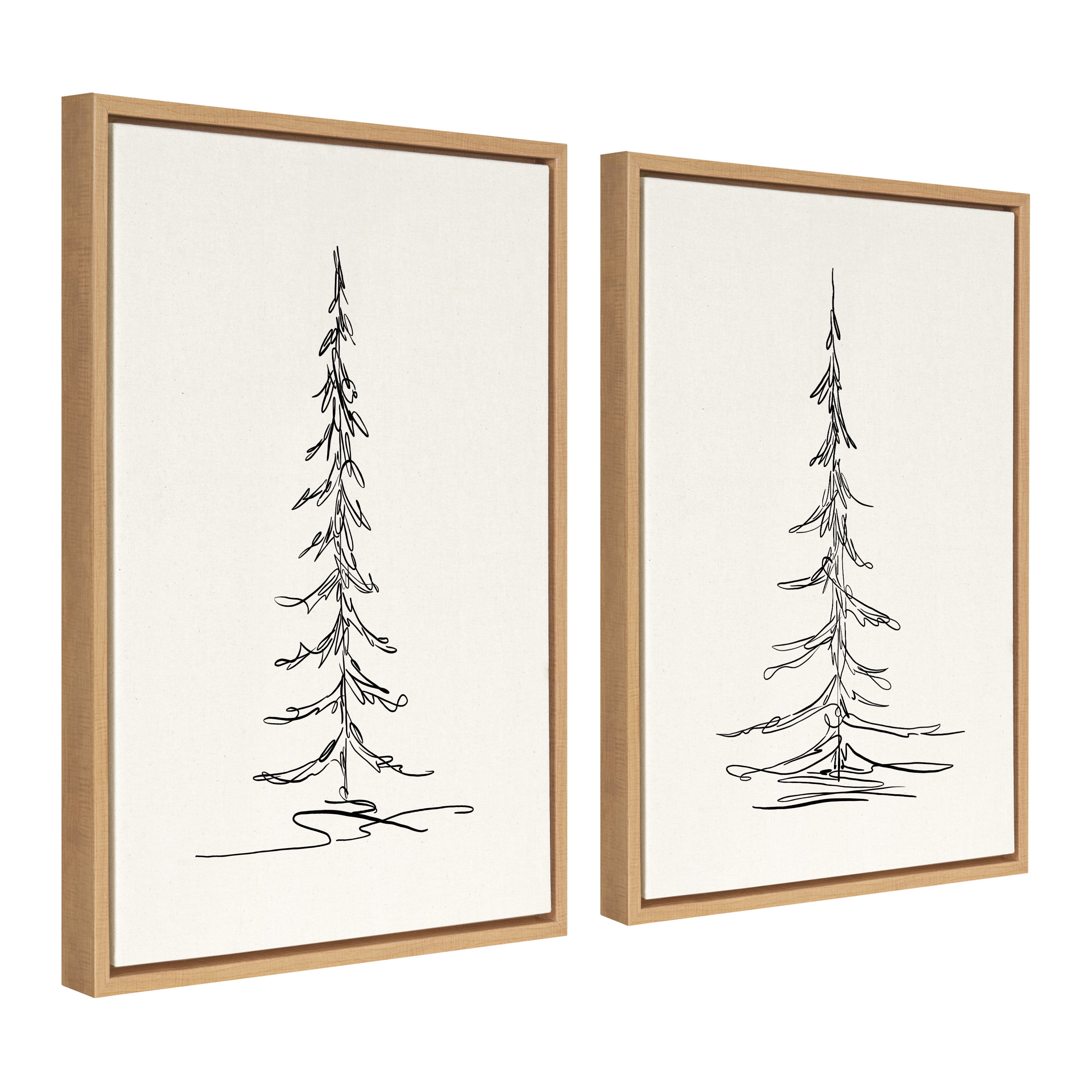 Kate and Laurel Sylvie Minimalist Evergreen Trees Framed Linen Textured Canvas Wall Art by The Creative Bunch Studio, Set of 2, 18×24 Natural, Modern Nature Art for Wall