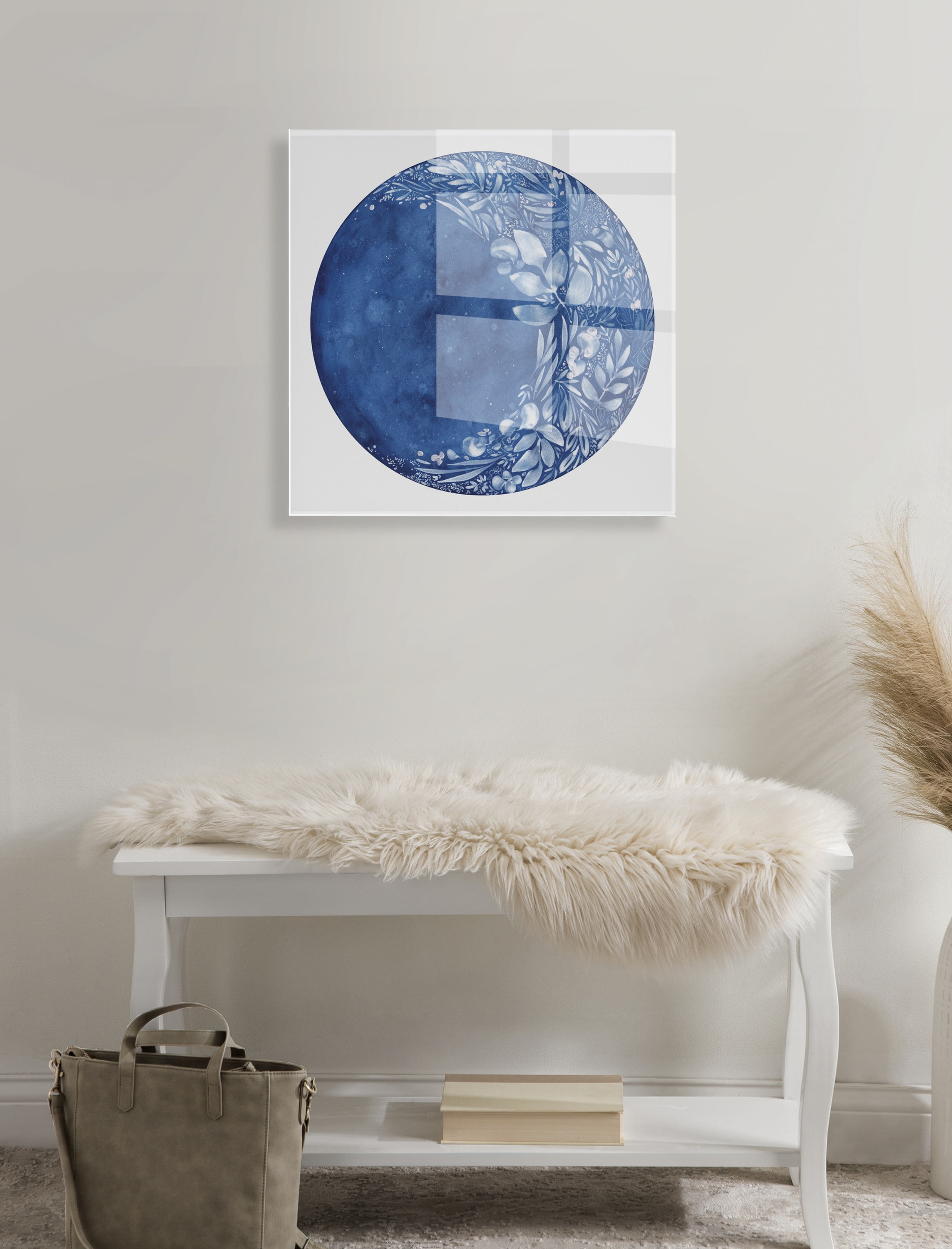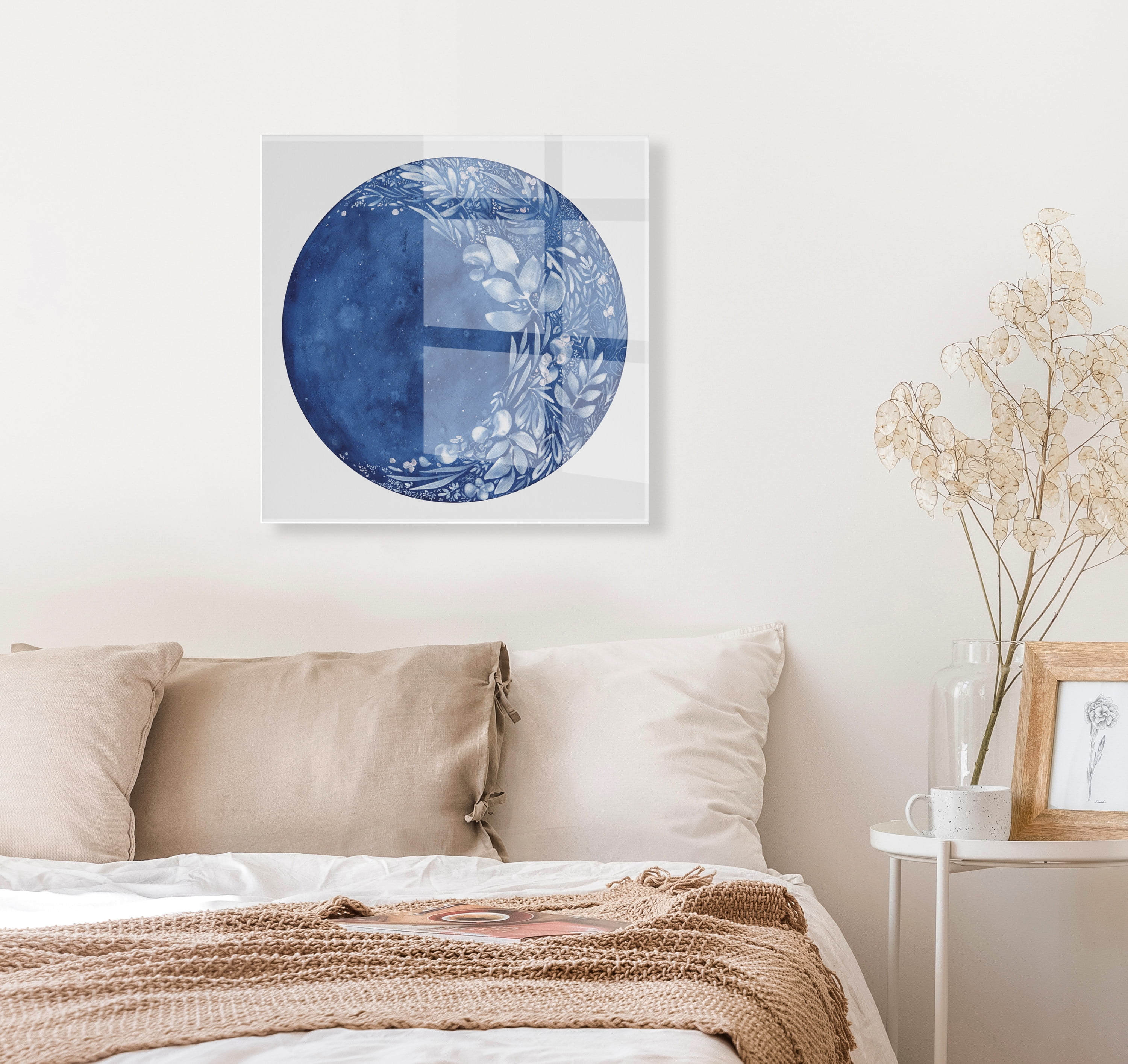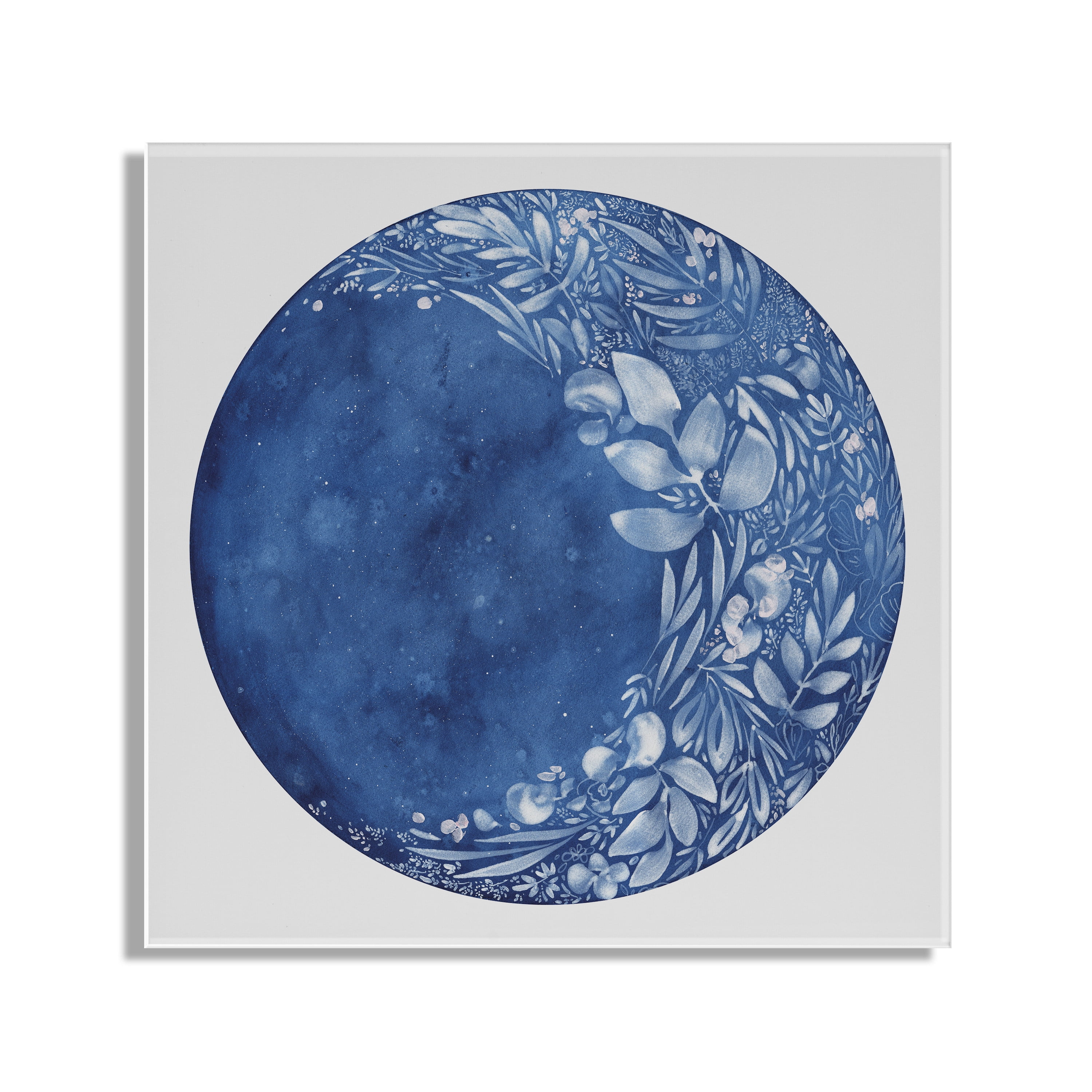 Kate and Laurel Waxing Flower Moon Floating Acrylic Art by Ingrid Sanchez of CreativeIngrid, 23×23, Decorative Moon Art for Wall