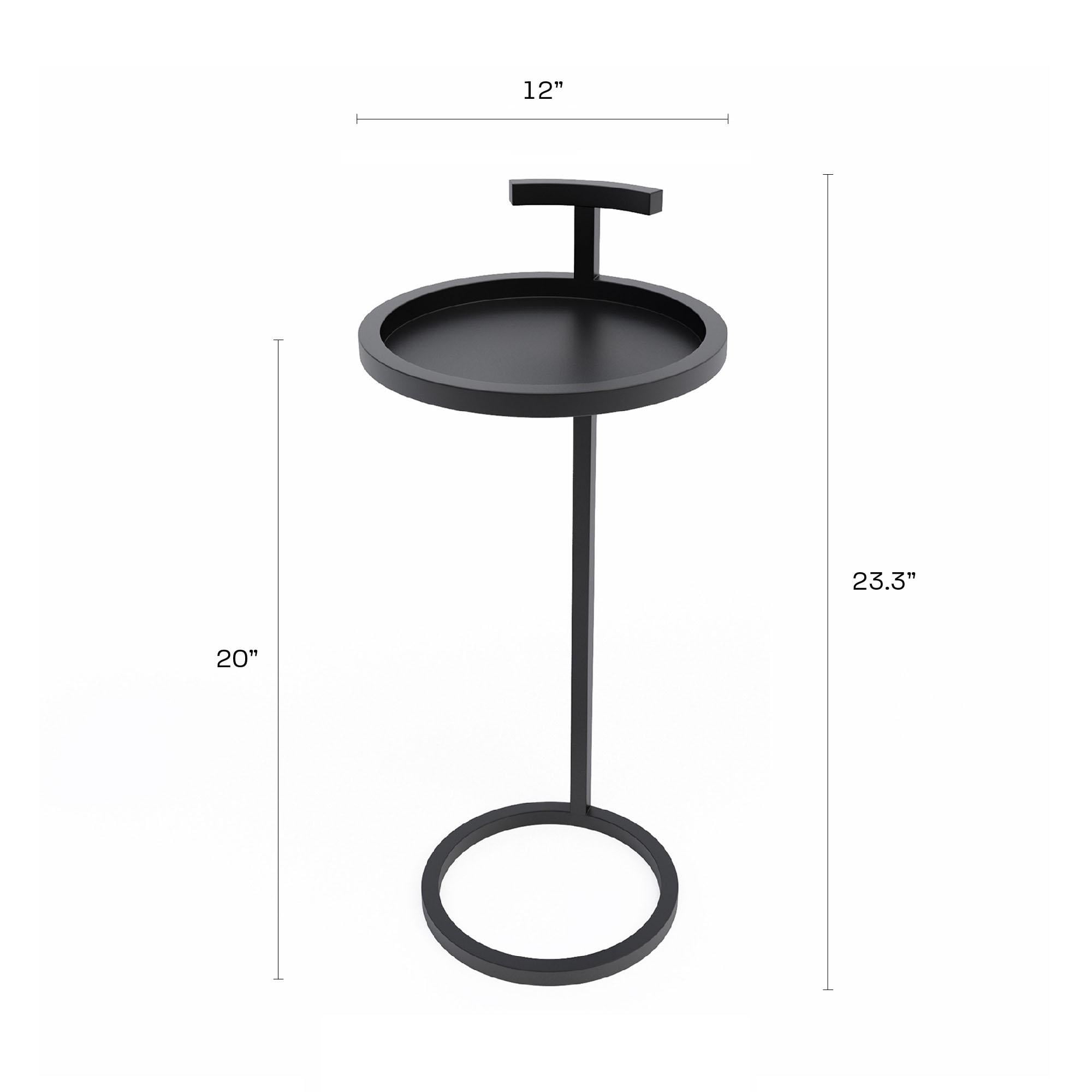 Appealing design and color elevates the everyday side table Compact size works like a charm in small spaces Powder coated black finish adds sophistication to the surroundings Round lipped table top keeps cocktails and knick-knacks stable Convenient handle for easy transporting Child-friendly rounded corners Sturdy and heavy metal base for stability Powder coated metal surfaces for easy cleaning Appealing design and color elevates the everyday side table Compact size works like a charm in small spaces Powder coated black finish adds sophistication to the surroundings Round lipped table top keeps cocktails and knick-knacks stable Sturdy and heavy metal base for stability Convenient handle for easy transporting Child-friendly rounded corners Powder coated metal surfaces for easy cleaning