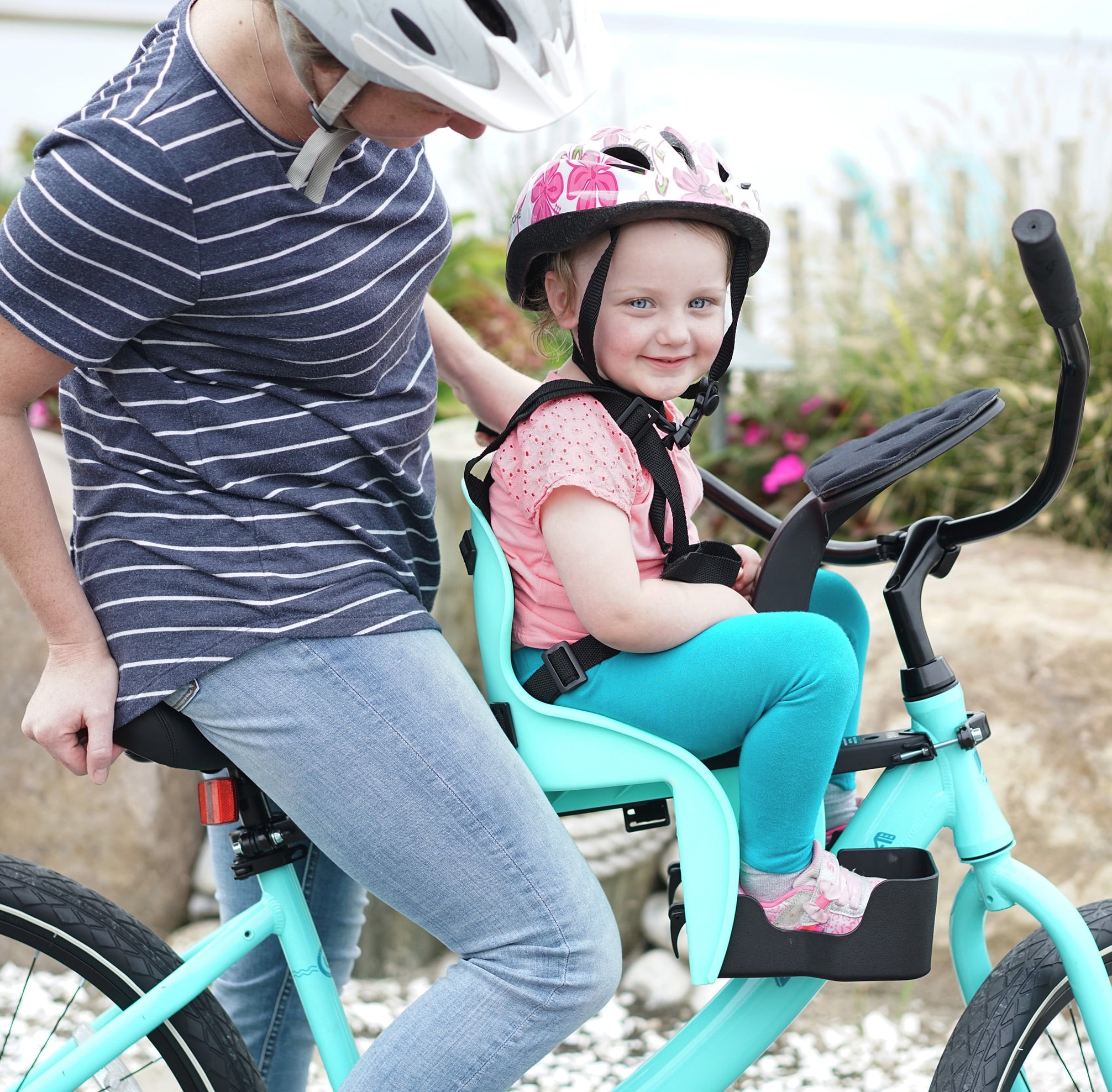 Bring your child along for a ride in comfort and safety. With the Kazam Center Mounted Child Bike Seat in green, your child is positioned safely in front of you, using our patented center mount system. This allows a child to experience the ride in a more natural way, while also offering the parent rider better balance, control and safety while they ride. Featuring a 5-point safety harness, adjustable foot cups, and a padded dashboard and seat, this bike seat will grow with your child and offer plenty of opportunities to create amazing memories for parent and child!