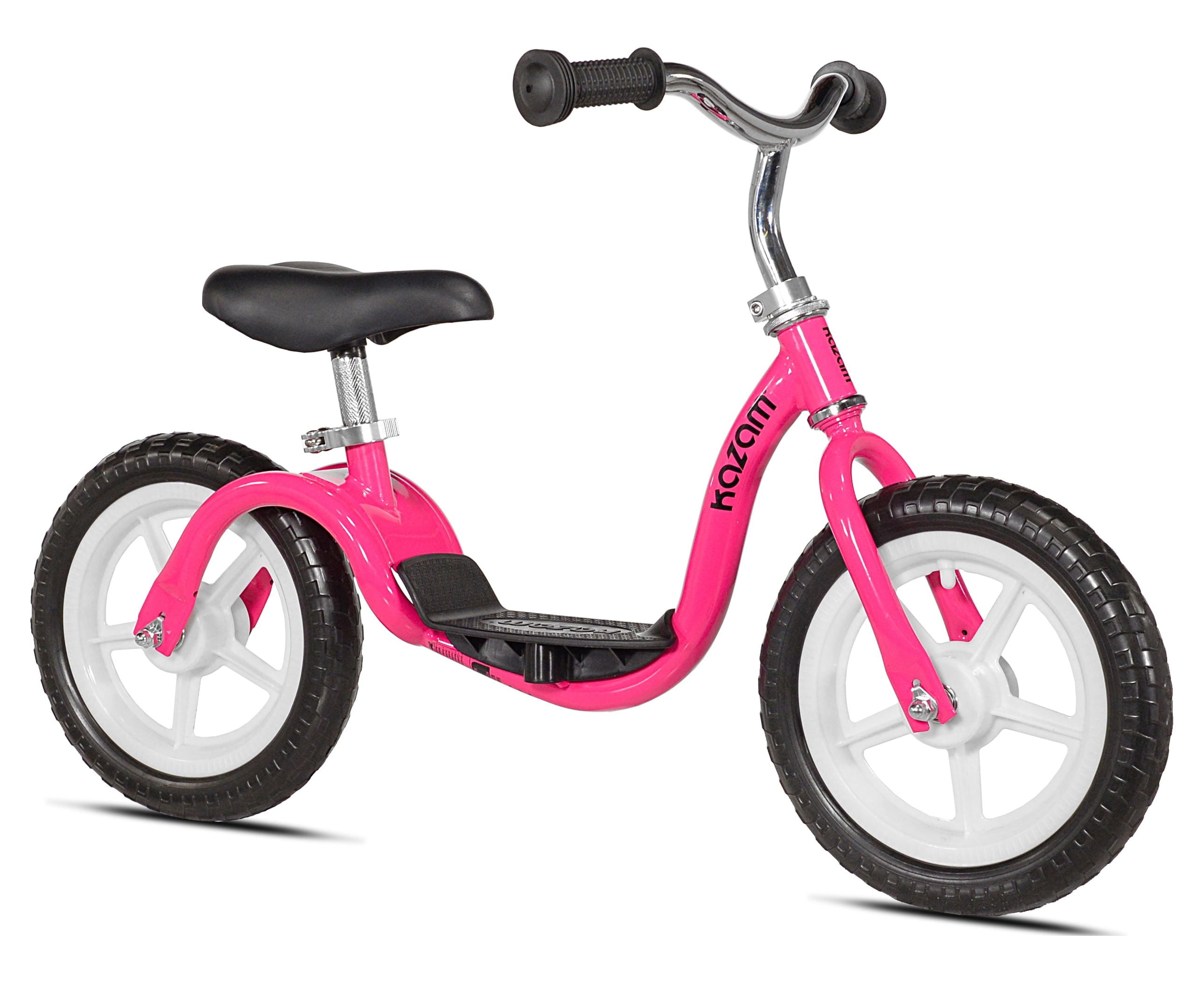 KaZAM balance bikes are quality made, using real bicycle components and are meant to be passed from child to child. Step-through frame allows for easy on/off, and KaZAM’s patented foot platform sets our balance bikes apart. Our footrest is in a natural position, similar to where they’re feet would be if coasting on a pedaled bike. Having a foot platform that is both comfortable and functional helps kids find their center of gravity. KaZAM balance bikes offer a better alternative to training wheels! With KaZAM, kids learn at their own pace without fear of falling. Gone are the days of clunky, uneven training wheels, which focus only on pedaling. After all, balance is the hard part, pedaling is easy! With KaZAM, children develop balance and proper steering while at the same time build confidence and independence. Great news! If you select Site to Store delivery, you can call your local store as complimentary assembly may be offered at that location.
