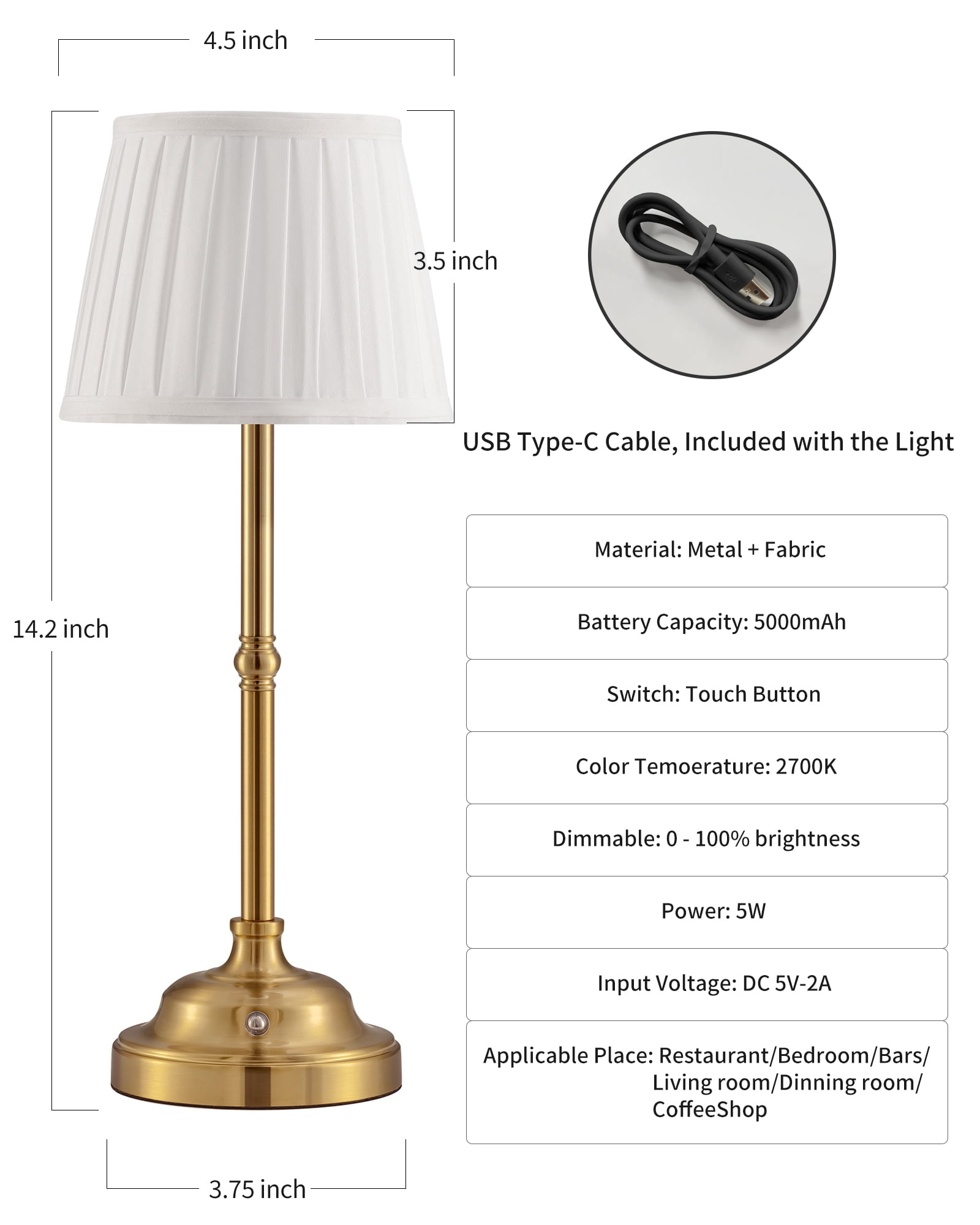 【Portable Cordless Design】Choose the cordless design, no cord twisting annoyance, put it on the table without occupying visual space. Moderate weight and size, can be picked up at any time and placed elsewhere. Retro and fashionable appearance, add a different beauty to your living room. Not only can be used in bedrooms, study rooms and other indoor places, but also can be used in coffee shops, dining bars, commercial restaurants and other places. 【Stepless Dimming】LED adjustable desk lamp with reliable touch buttons installed on the lamp base, you can easily control on/off by tapping the lamp or long press to change the brightness, provides 5W 2700K soft and cozy warm light that can be adjusted from 5-100%. The highest brightness is used for working and studying, while the lower brightness can be used for parenting, meditation, watching movies and more. Suitable for all scenes and people of different ages. 【Built-in Battery】Built-in 5000mAh rechargeable battery, a light bulb is included in the package, and can be used after installation and full charge. Charging time is 4-6 hours. It can be used for about 8-24 hours in the brightest state and 24-40 hours in the darkest state. Stable and non-flickering LED beads are carefully selected to diffuse light through the bulb, providing enough light without harming your eyes.