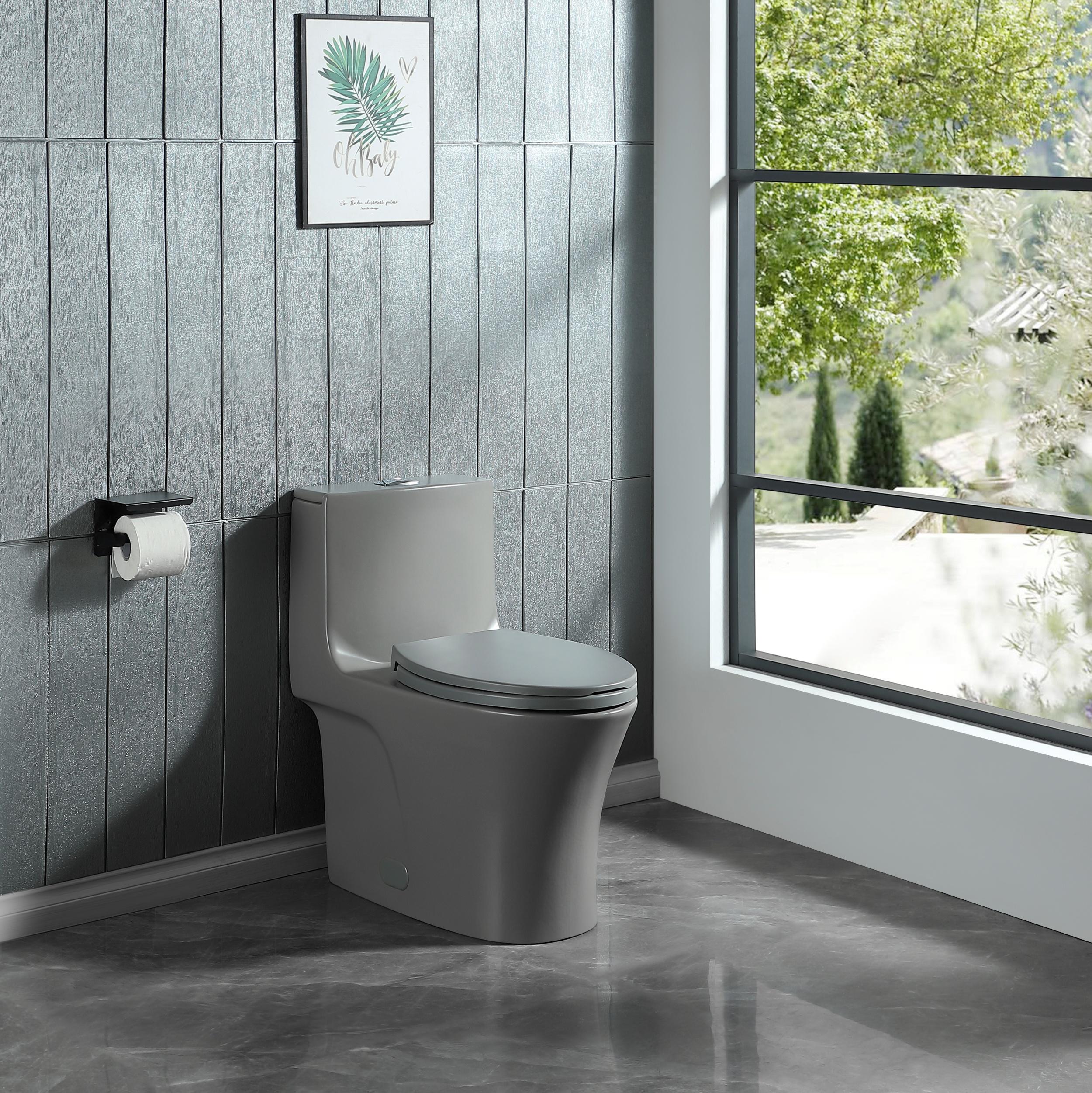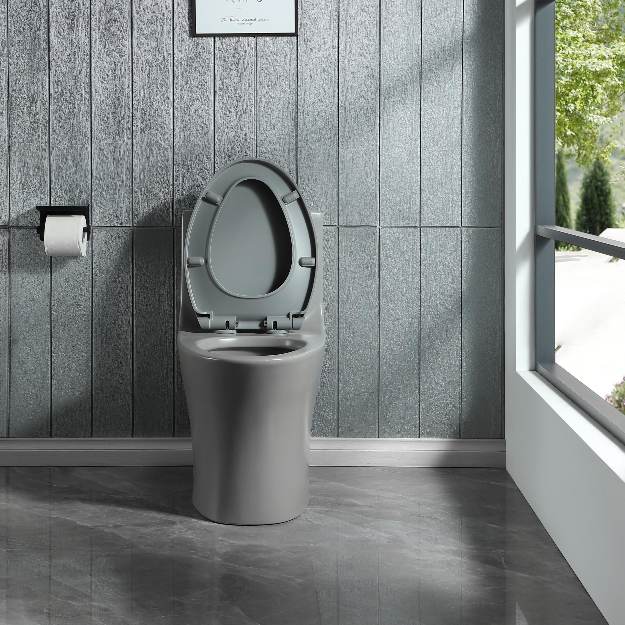 Keazile Toilet.1.1/1.6 GPF Dual Flush One-Piece Elongated Toilet with Soft-Close Seat in Light Grey with dual flush system, can choose between 1.1 or 1.6 gallons per flush, helping you save water and reduce your environmental footprint. The sleek light grey finish enhances the aesthetic appeal of any bathroom, while the ergonomically designed seat ensures comfort during use. Setting up this toilet is quick and easy, making it suitable for all bathroom types. Plus, its premium craftsmanship guarantees lasting durability and performance, providing you with a reliable fixture for years to come. Say hello to style, efficiency, and comfort with our Dual Flush 1-Piece Elongated Toilet.