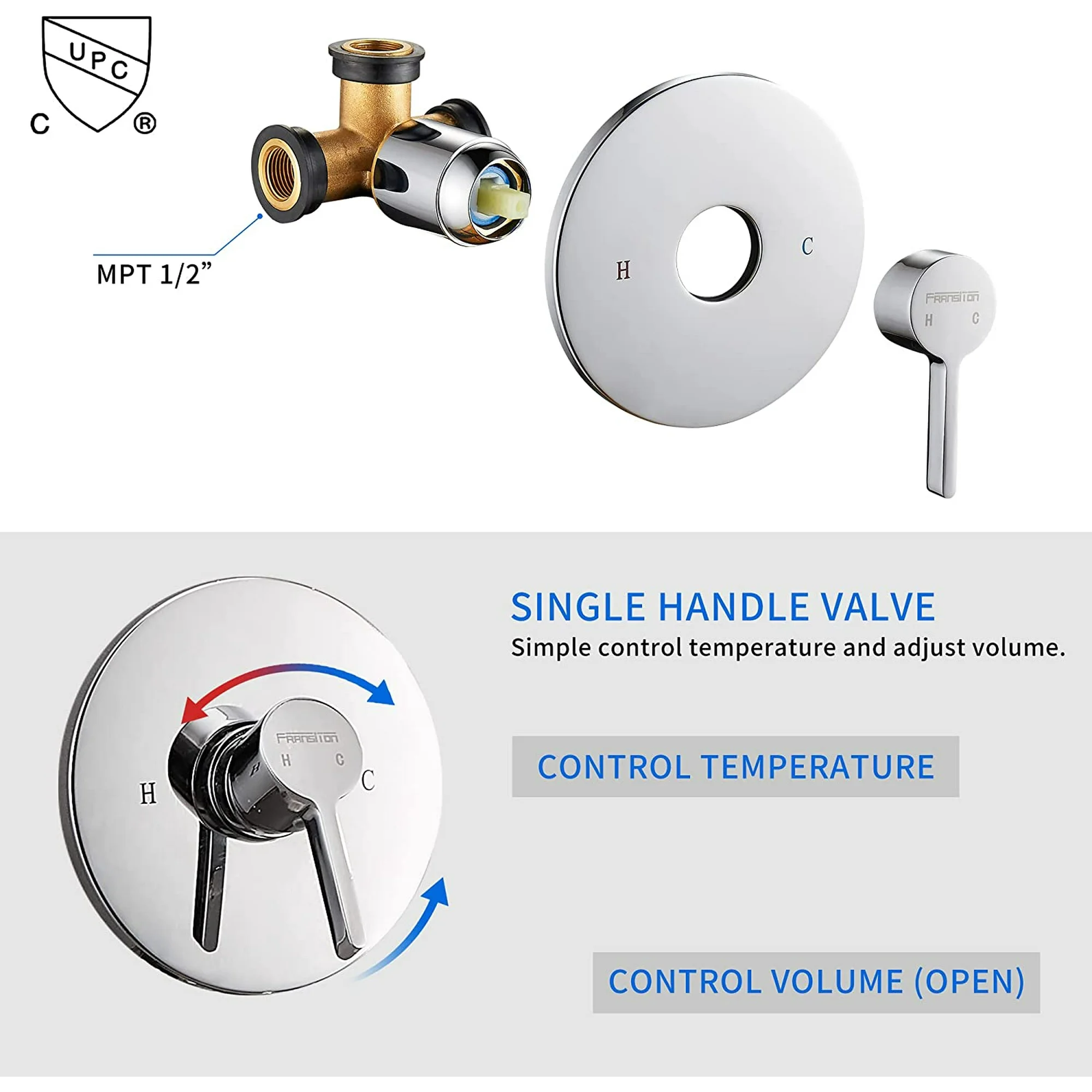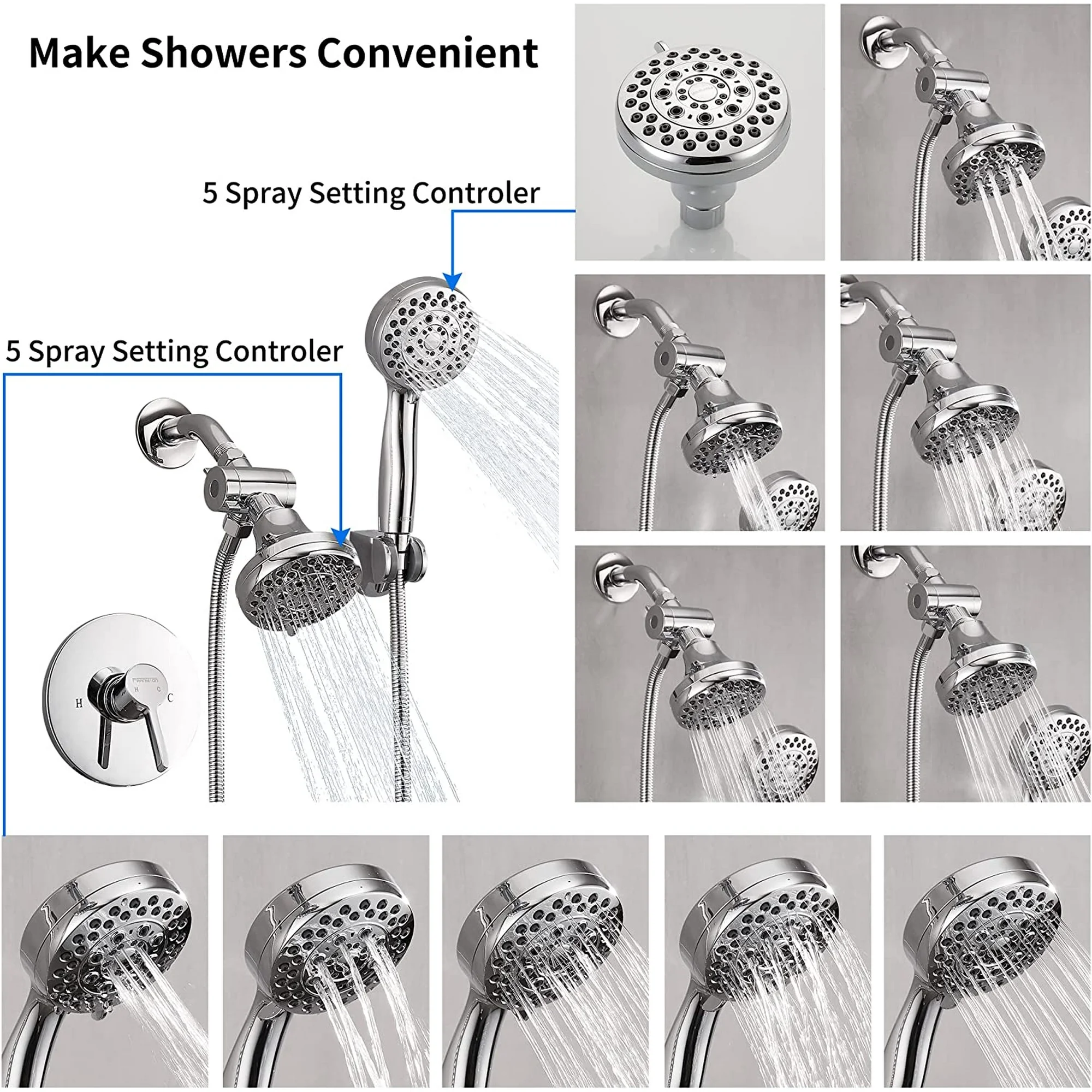 【5-Modes Shower Head】- Powerful Massage, Wide Massage, Power Rain+Massage, Rainfall, Full Cover Rain, contains 59-inch stainless steel shower hose. You can take out the bathroom handheld shower from the shower holder, and the adjustable shower seat provides you with a suitable shower angle. THREE way mixer valve, NOT applicable to bathtub.【Pressure Balance Valve 】-It can be adjusted to the water volume and temperature you want and maintain the temperature constant. The wand is BETTER to be mounted to the wall. BETTER NOT be mounted to the old stationary shower head mount. 【Easy Clean 】- KEDE offers shower faucet sets completely equipped with Touch-Clean soft rubber nubbins (spray holes) that allow you to easily wipe away calcium and lime build-up with the touch of a finger. It is particularly helpful for areas with hard water.??Please discard the old accessories when installing and use our new products and accessories completely. Otherwise, there may be water leakage due to mismatched parts. 【Package Including】 – Shower valve with valve trim(Brass), 5-setting rain high pressure handheld shower head * 2(ABS), 6″ shower arm(304 Stainless steel), 59-inch shower hose(304 Stainless steel),adjustable shower holder(304 Stainless steel). These are designed to be less susceptible to corrosion in wet environments.