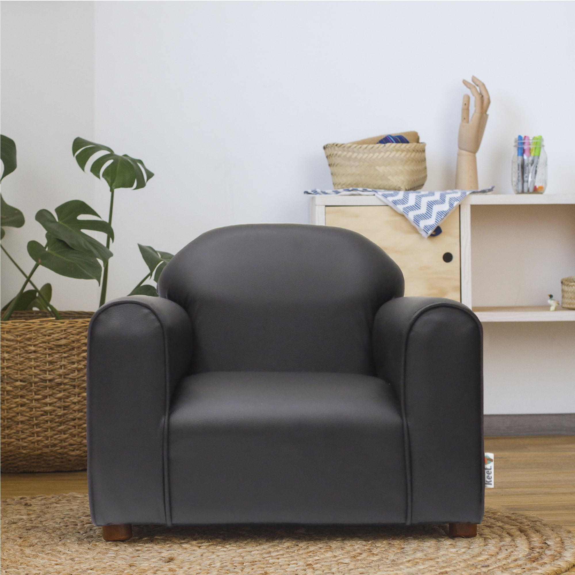 Keet Premium Chocolate Children’s Chair, Heavy Duty Faux Leather with Ottoman