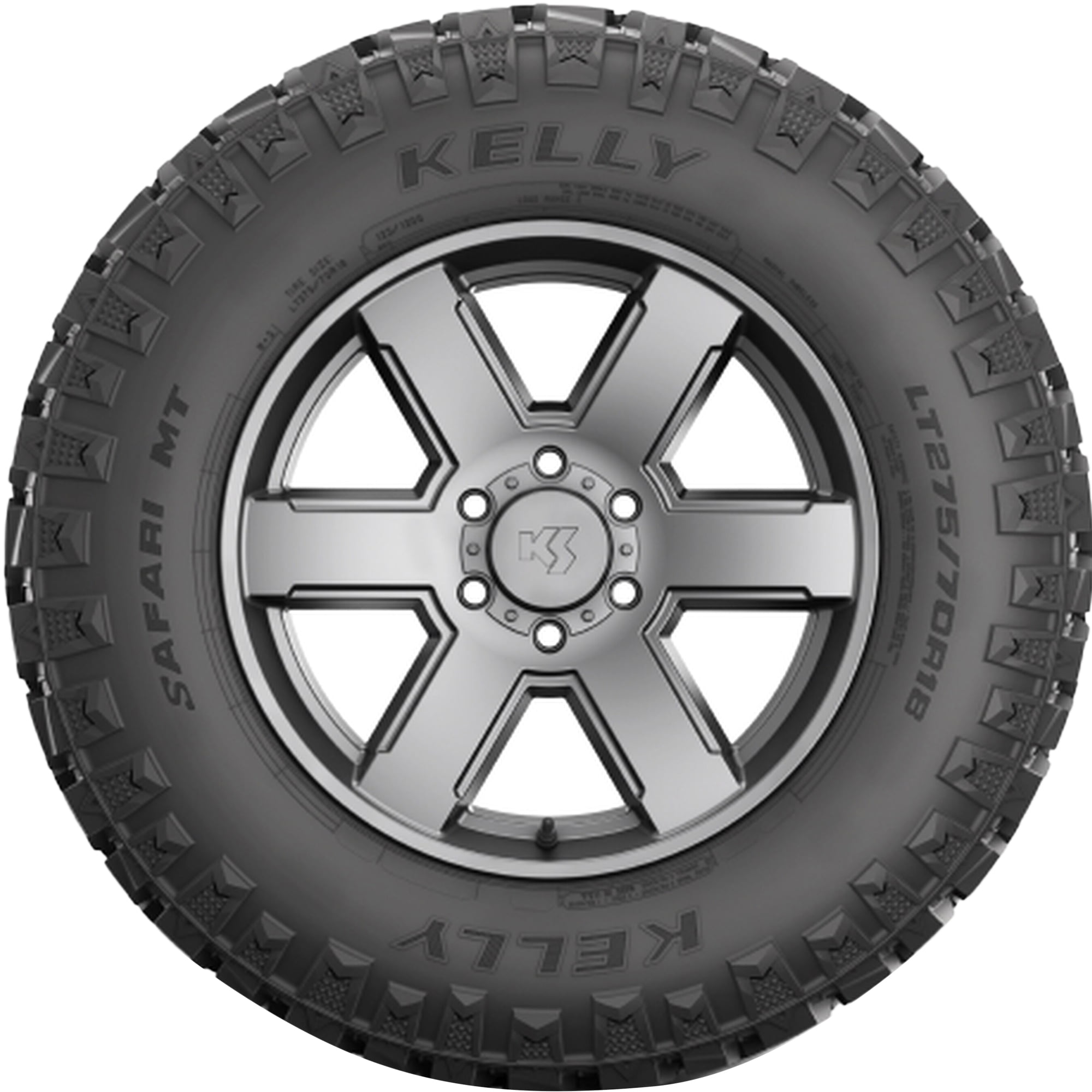 Kelly Safari MT LT275/65R20 126/123Q E OVERVIEW The Kelly Safari MT mud terrain tires that is designed for use on light trucks, offering exceptional performance in off-road conditions. These tires are ideal for drivers who regularly navigate challenging terrains like mud, loose soil, and rocky landscapes. With an aggressive tread pattern, the Safari MT provides excellent traction and grip, crucial for maintaining control in slippery and uneven conditions. In addition, the Safari MT is built with a robust construction that ensures durability and resistance to the rough and rugged demands of off-road driving.