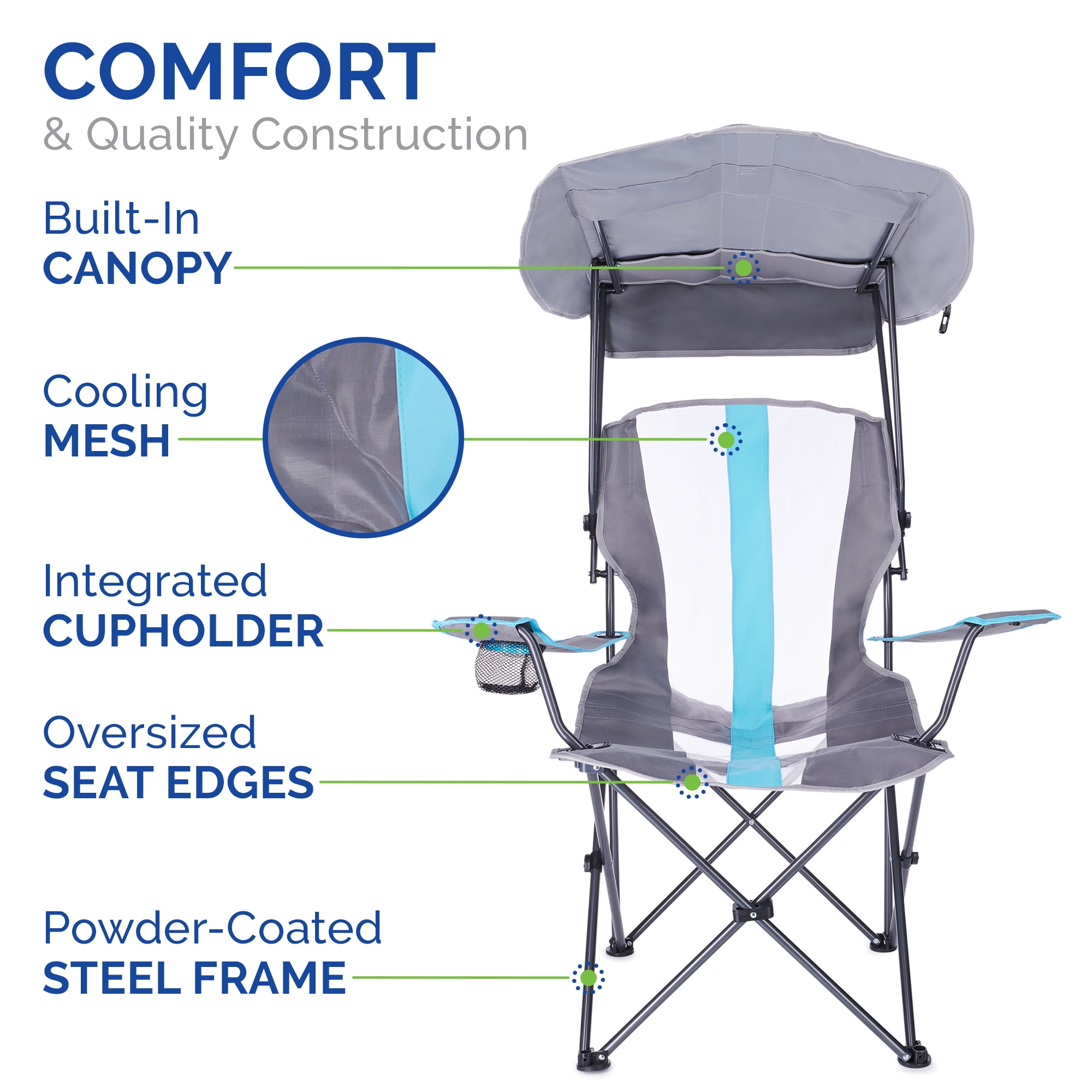 Kelsyus Original Foldable Canopy Chair for Camping, Tailgates, and Outdoor Events, Grey/Light Blue