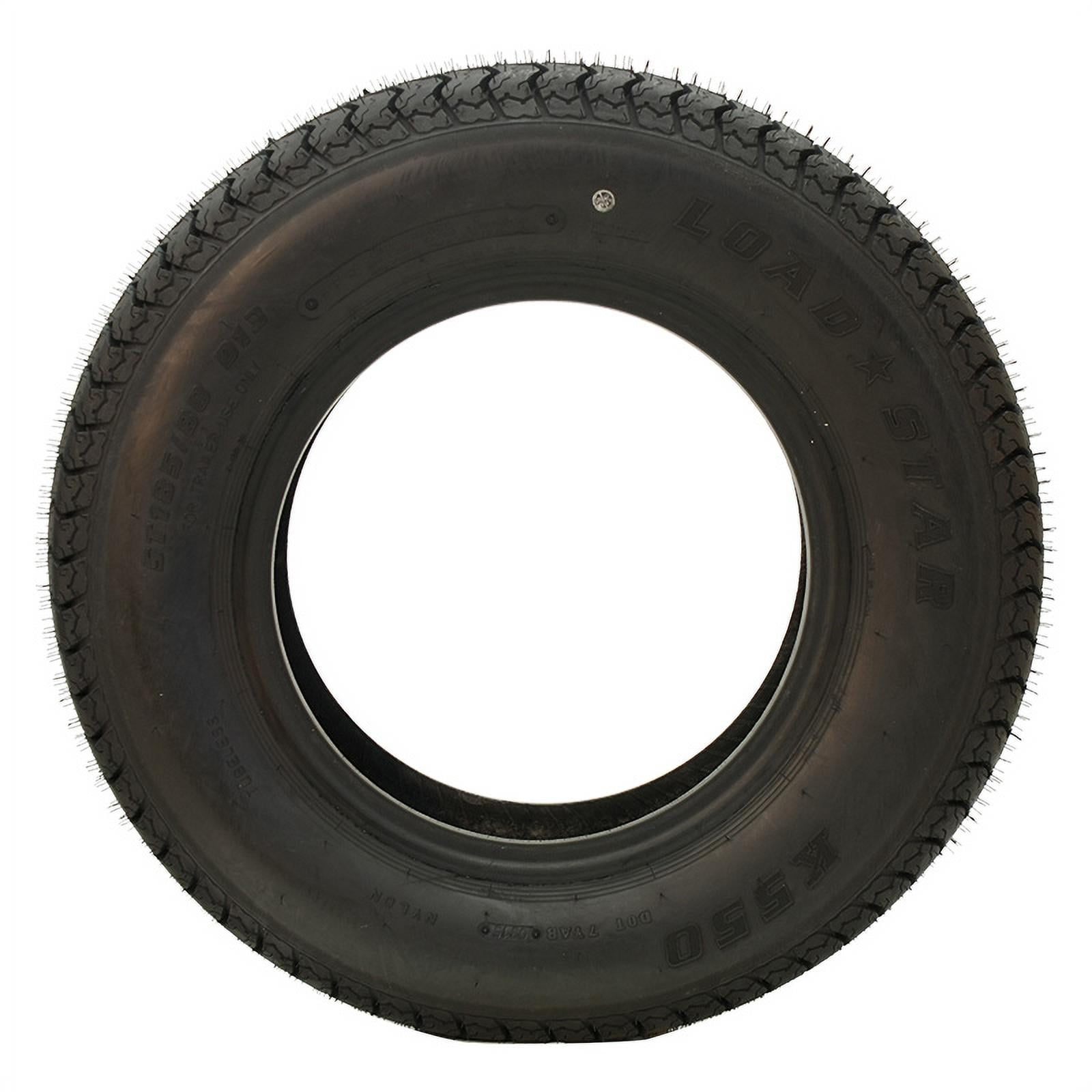 A trailer tire, the Loadstar K550 from Kenda features a low rolling resistance design that improves handling and ride characteristics of a towed vehicle. The Loadstar K550 is built with a durable, bias-ply construction and combines the looks of a radial tire.