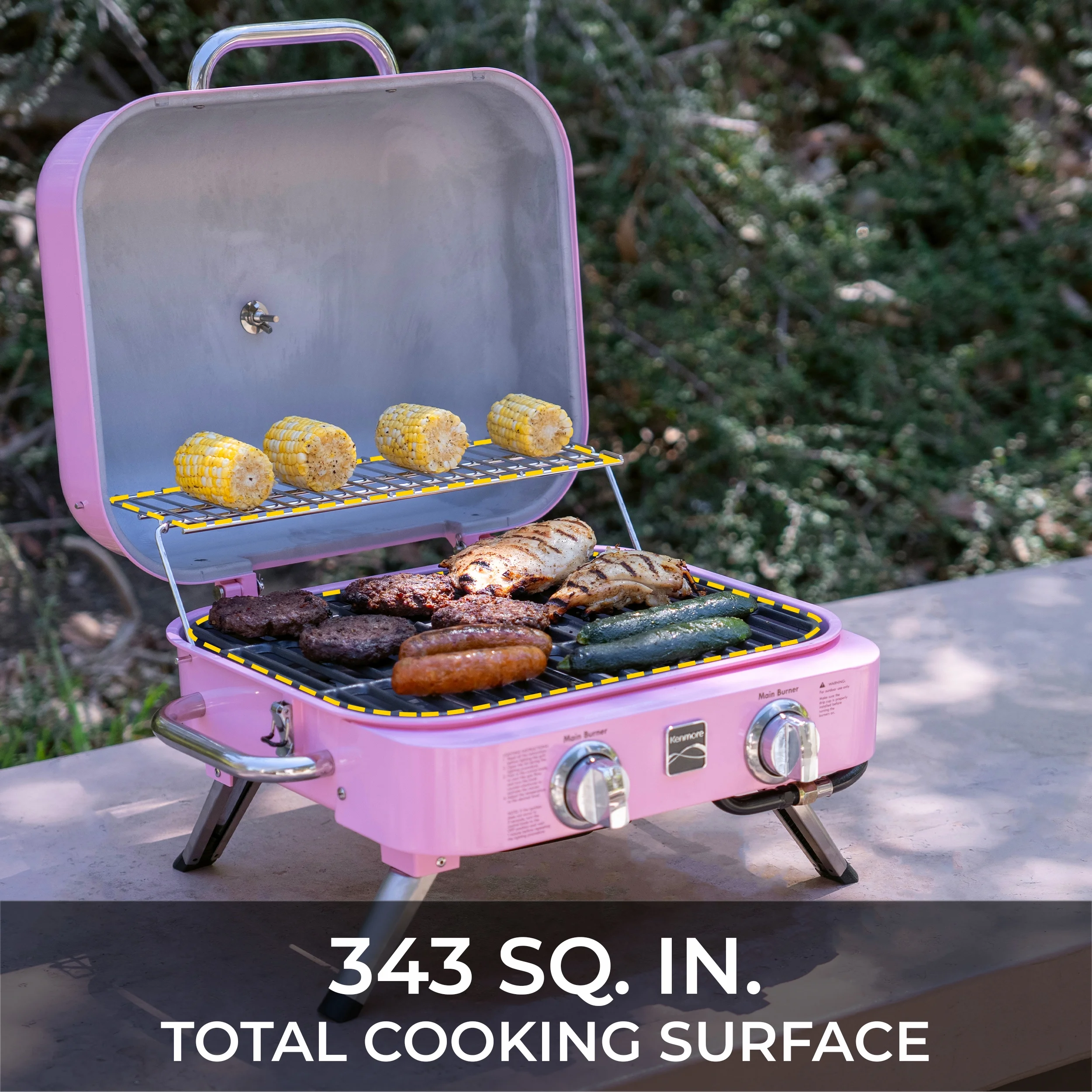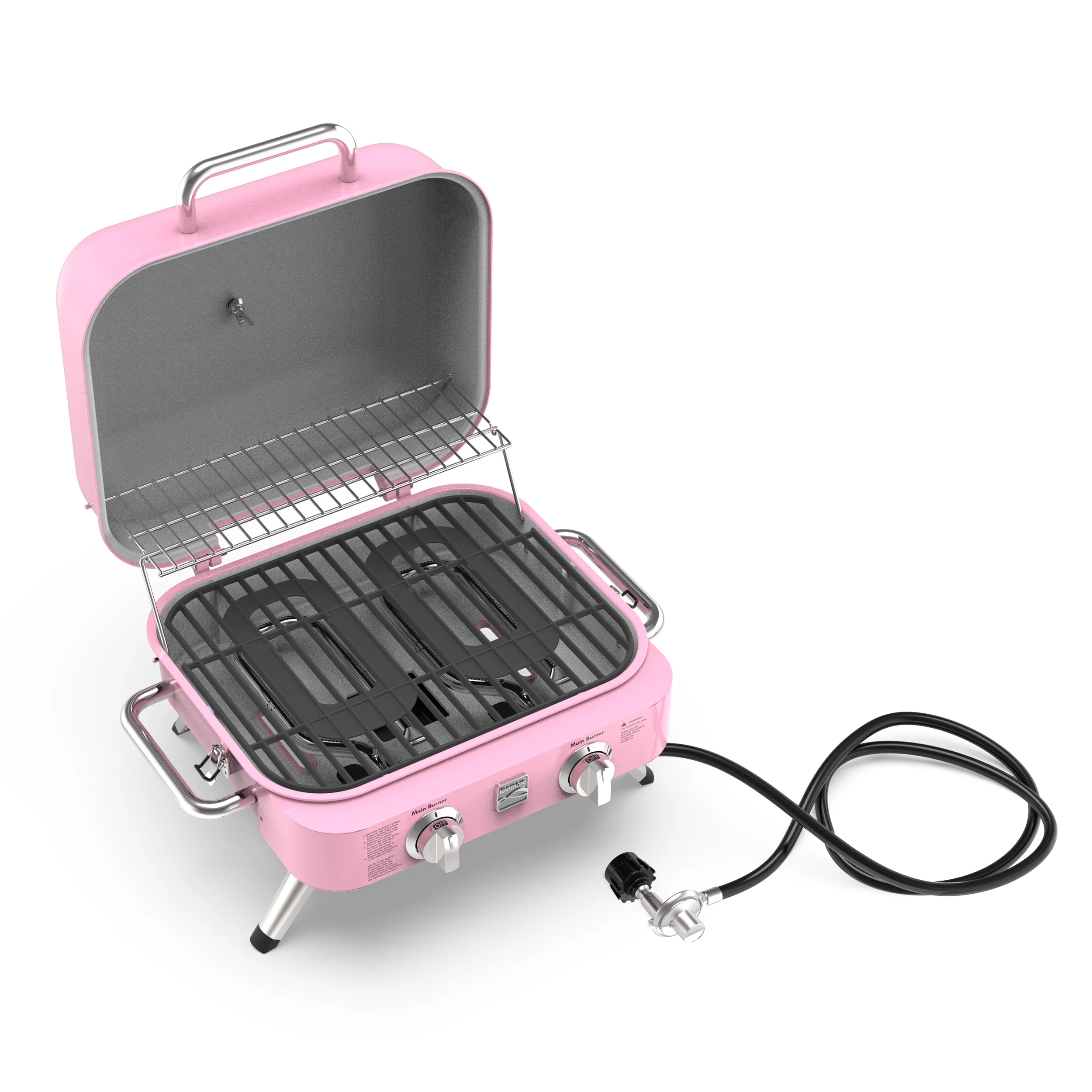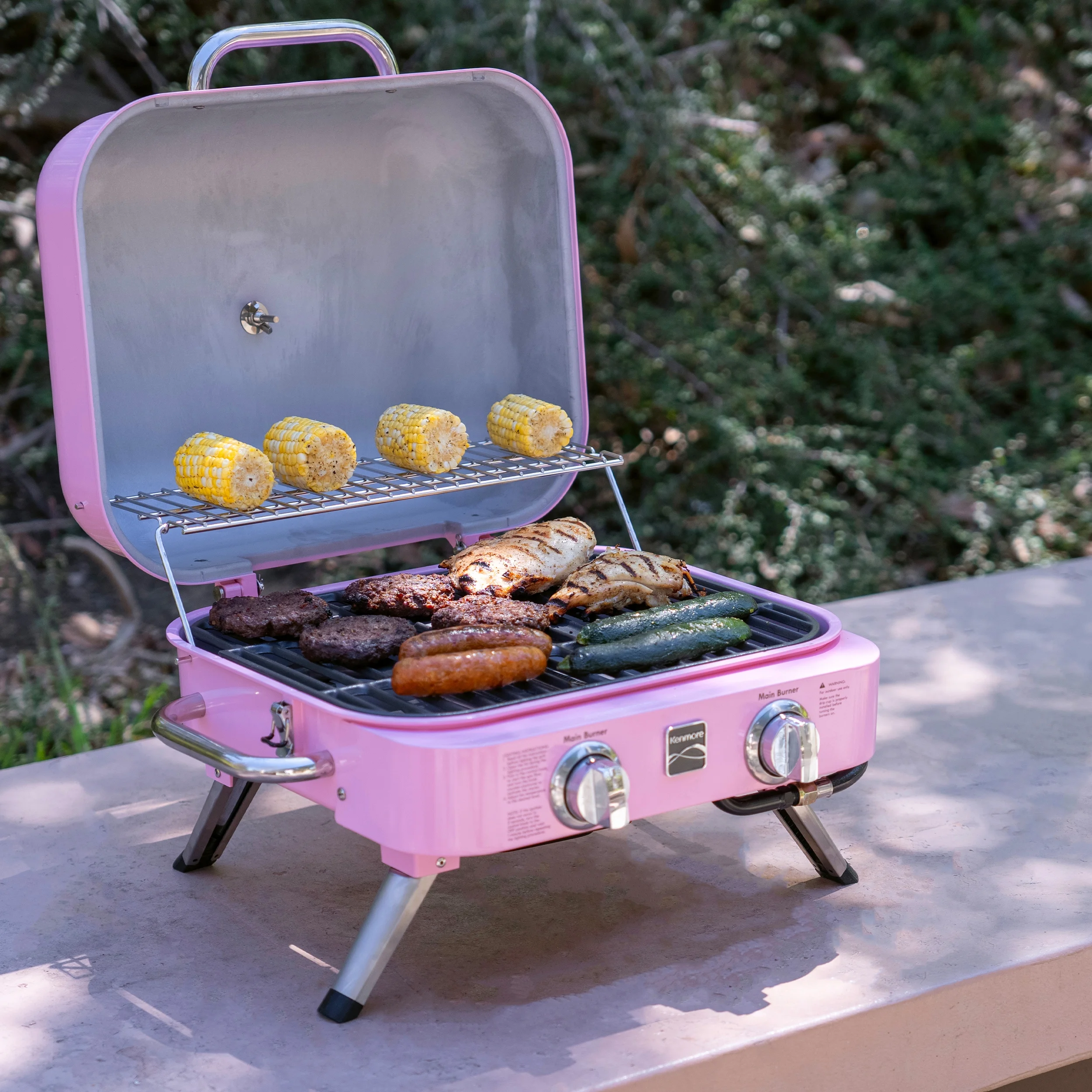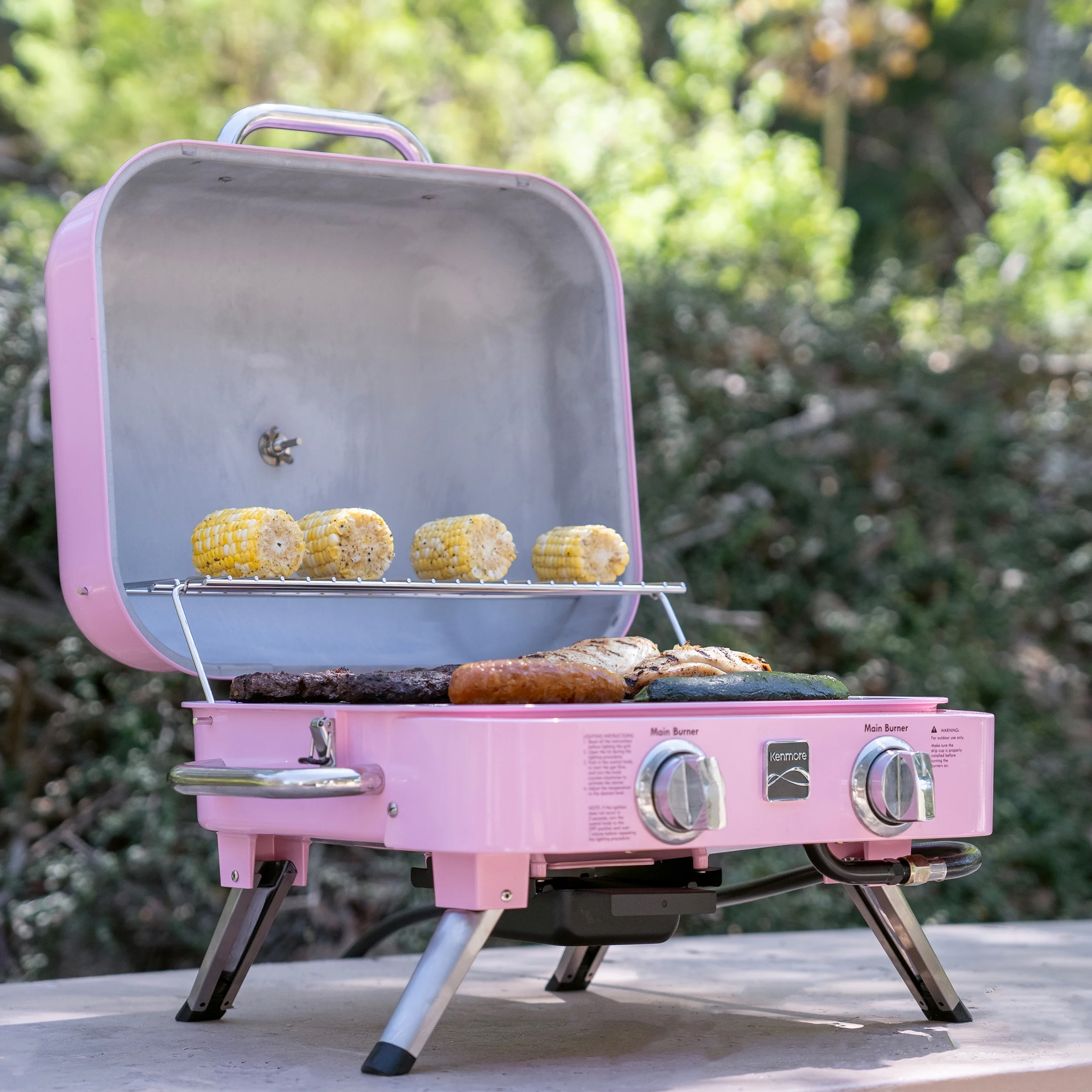 Elevate your outdoor cooking experience with the new Kenmore 2-Burner Portable Tabletop Retro Gas Grill. This two-burner small propane gas grill is designed for on-the-go grilling, boasting a generous 343 square inches of barbeque grilling surface—perfect for sizzling up to 9 burgers at once. With its sleek retro design and tabletop versatility, this small compact BBQ grill not only delivers style but also functionality. Equipped with flamethrower ignition and a warming rack, the Kenmore 2-Burner portable gas grill offers a total of 14,000 BTUs of heating power. Its compact size and side handles make it an ideal companion for camping, fishing, glamping, tailgating, outdoor adventures, parks, picnics, road trips, and BBQs on the go. Whether you’re embarking on family escapades or celebrating outdoor events, this portable outdoor gas grill ensures a memorable and flavorful experience. Experience the convenience of quick and efficient barbecue grilling wherever your journey takes you. Invest in the Kenmore 2-Burner Retro Portable Gas Grill for a perfect blend of style, portability, and impressive outdoor cooking capabilities.