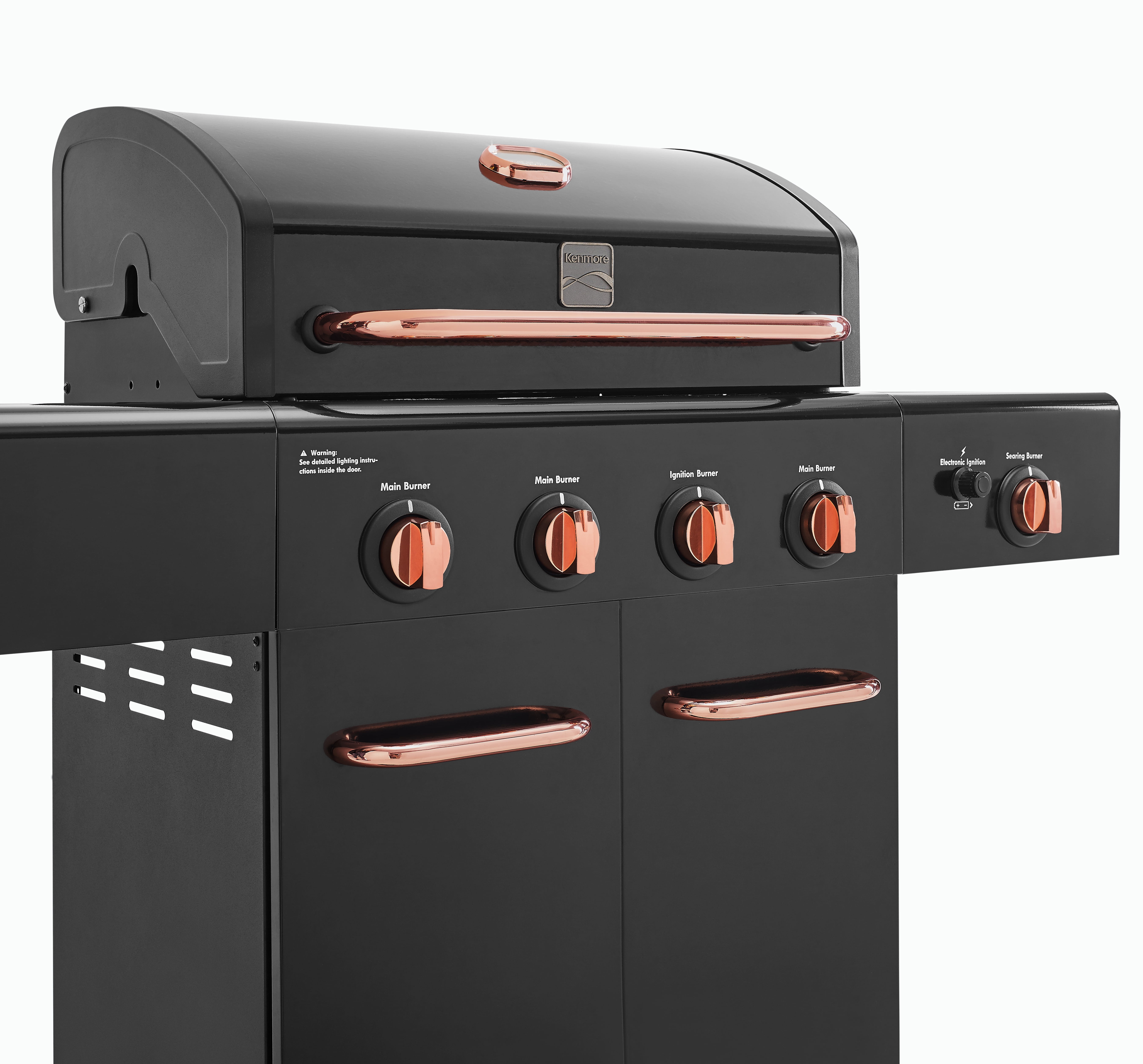 Kenmore 4-Burner Propane Gas Grill with Searing Side Burner in Black with Copper Accent