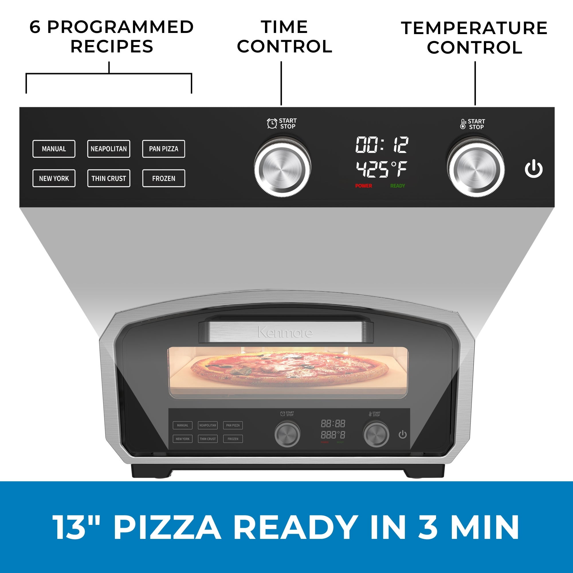 Kenmore Outdoor/Indoor Electric Pizza Oven – Cooks 13” Pizza In Minutes | 850°F For Wood Fired Taste | Weather-Resistant Portable Countertop Oven | 5 Presets | Pizza Stone & Peel | Stainless Steel