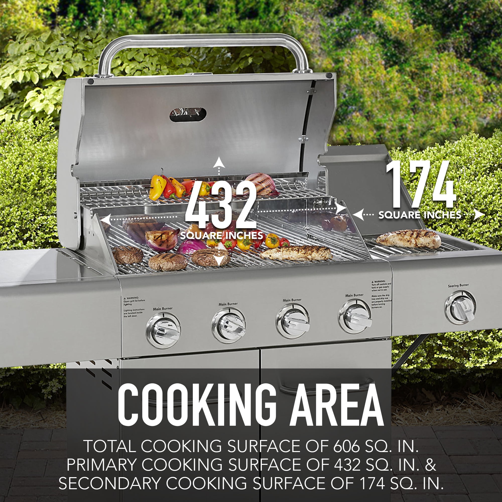 Kenmore PG-40405S0L-SE 4 Burner Outdoor Patio Propane Gas BBQ Grill with Searing Side Burner, Stainless Steel