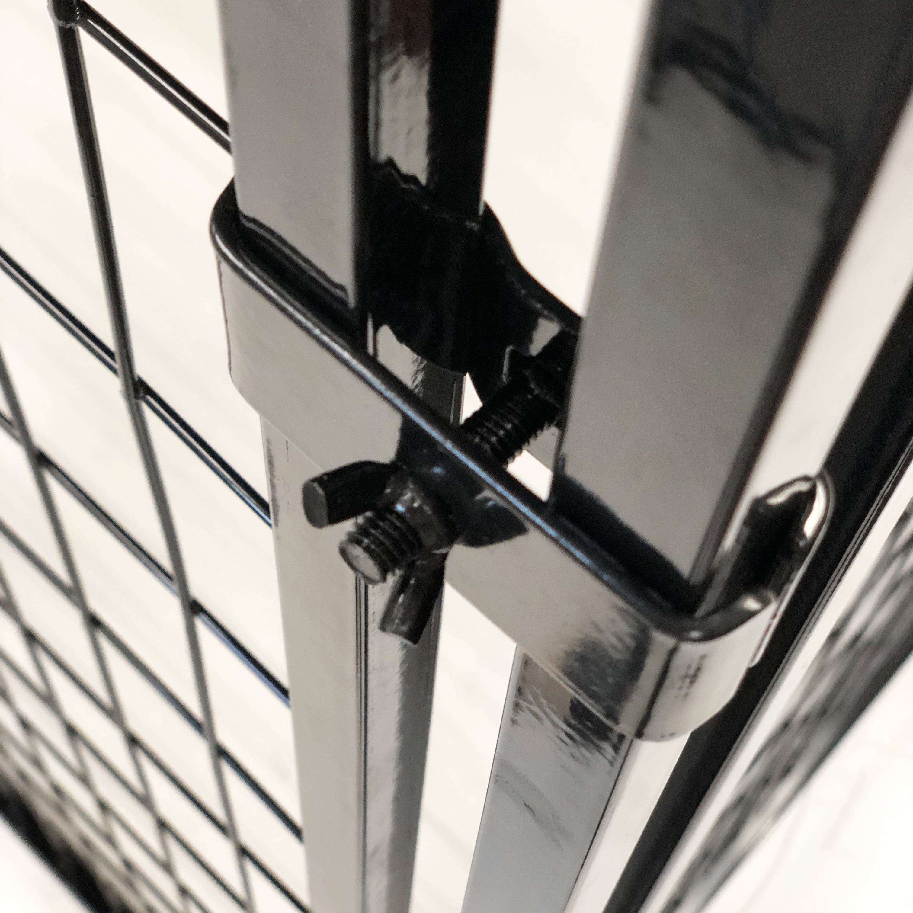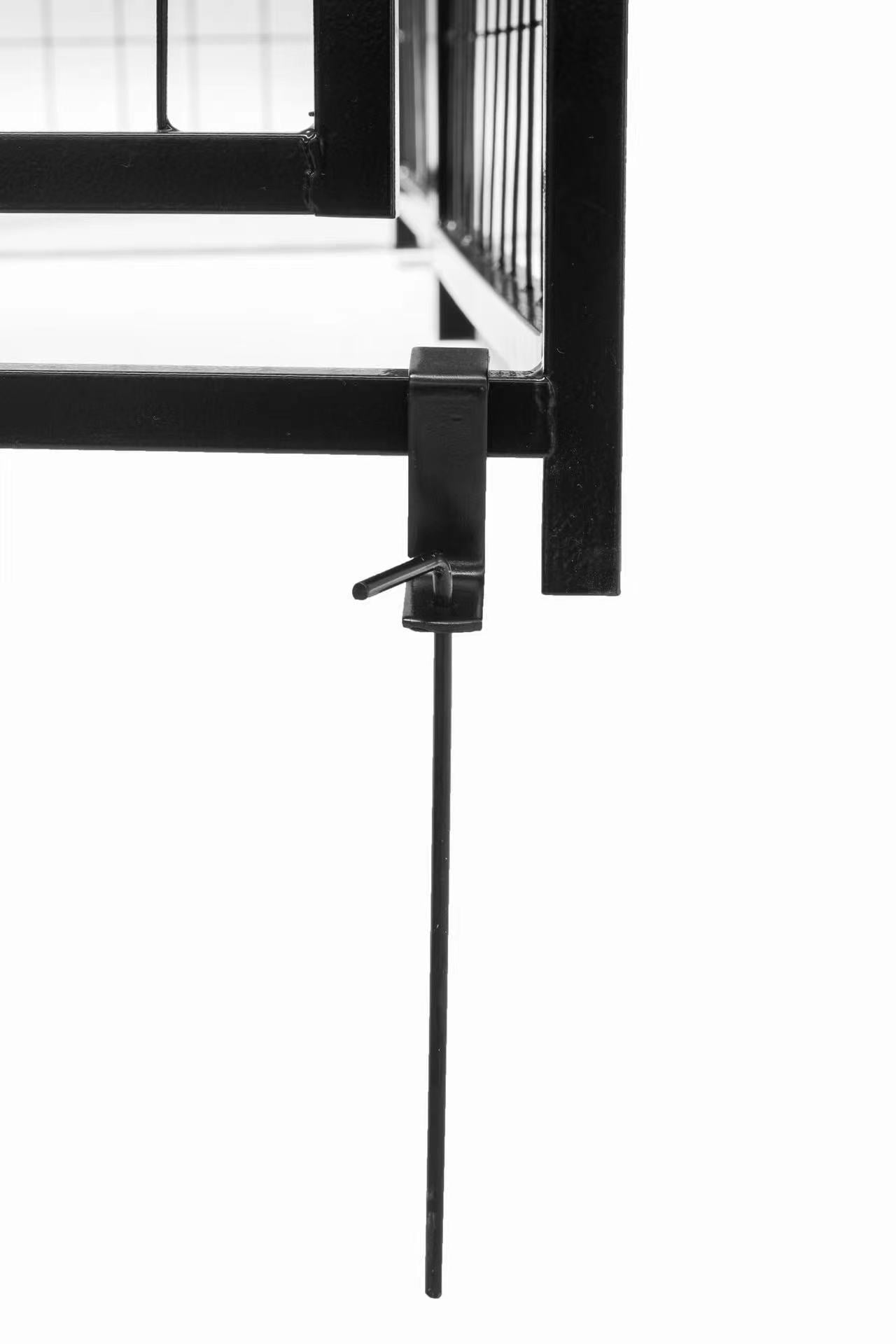 Easy 1-person assembly – no tools needed. Hammertone powder coating resists rusting, eliminates sharp points, and has an attractive, textured finish Gate-in-gate design permits placement of food and other items without allowing pets to escape Waterproof cover provides shade from direct sunlight and shelter from rain Suitable for use indoors and outdoors. Ideal for dogs, cats, and other small animals.