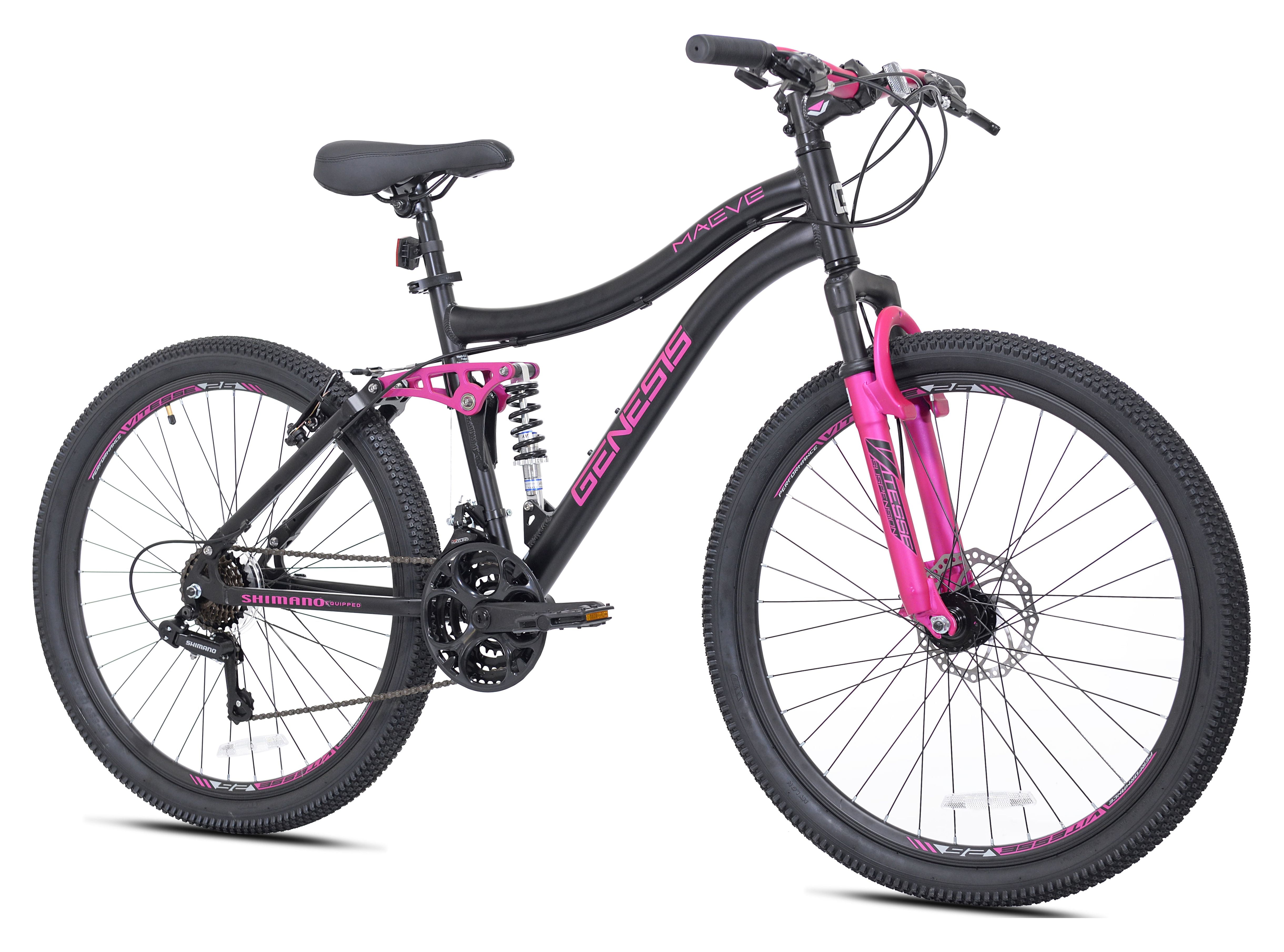 Kent Genesis Maeve Mountain Bike, 26″ Wheels, Adults Ages 13+, Black and Pink