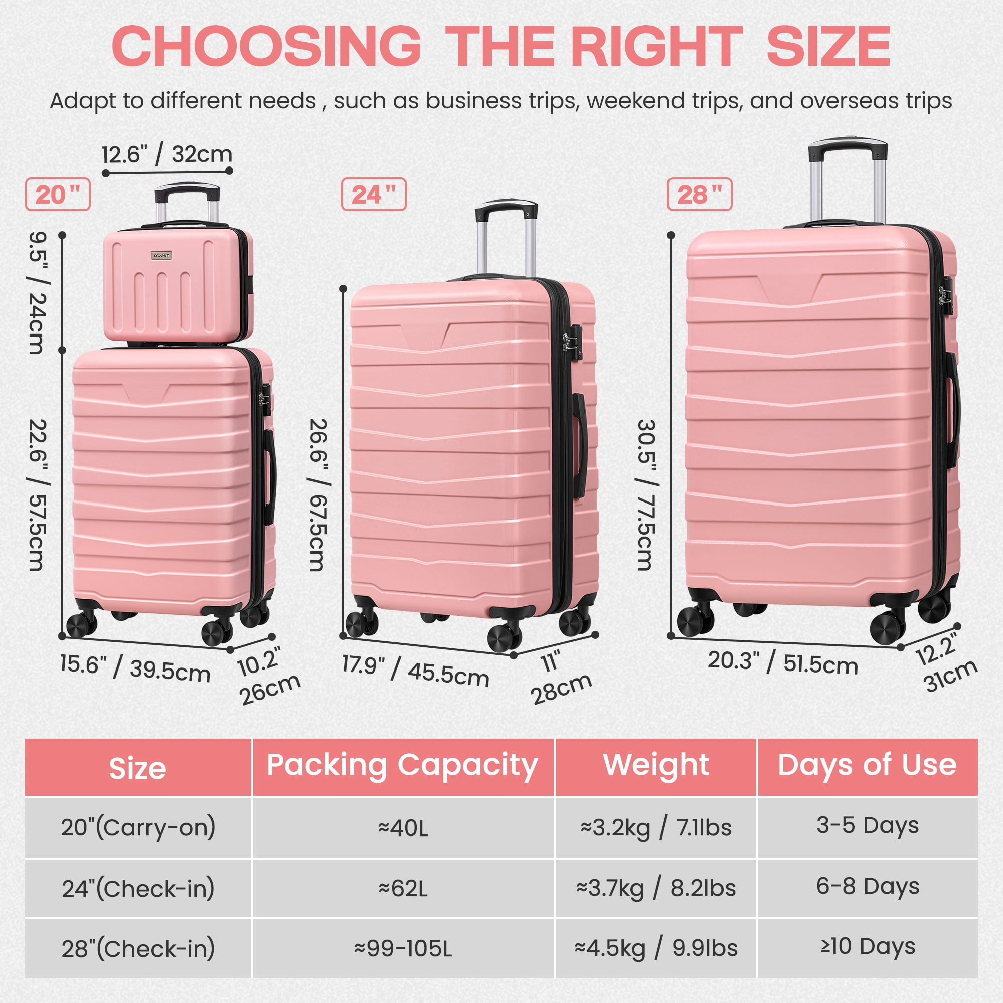 【High Quality】These luggages are made of high quality PC+ABS material, which is wear resistant and drop resistant. The shell is hardside, not easy to deform, and easy to move. Double-layer explosion proof zipper design, whether open or closed, will not jam.Everything is so smooth. 【Capacity and Space Design】24inch: 96L. You can choose the right suitcases according to your needs, and the standard 20-inch suitcases can be carried directly on the plane. Mesh bags and dry and wet separation bags allow small items to be organized, X fixed belt to secure clothing, to avoid messy. No matter how bumpy the journey, the luggage is always in order. 【Adjustable Pull Bar and Handle】The height of the pull bar can be adjusted freely according to the user’s height in different environments and can be adjusted at any time. Reasonable slot space, so that the tie rod will not be stuck, will not loose off. There is a soft TPC handle on the top and side of the luggage, which can easily lift the suitcase in places where it cannot be rolled. 【TSA Lock and Silent Universal Wheel】TSA lock is safe and reliable, only you can easily open the luggage, protect your personal belongings security. Double row four wheels, large size and high quality wheel hub, can bear higher weight, more wear resistance, rolling silk smooth, roller using silent design, no longer embarrassing because of noise by pedestrians. 【Customer Service】We have a professional customer service team, no matter what problems you encounter in the process of use, please feel free to contact us at any time. We will provide you with a satisfactory solution.