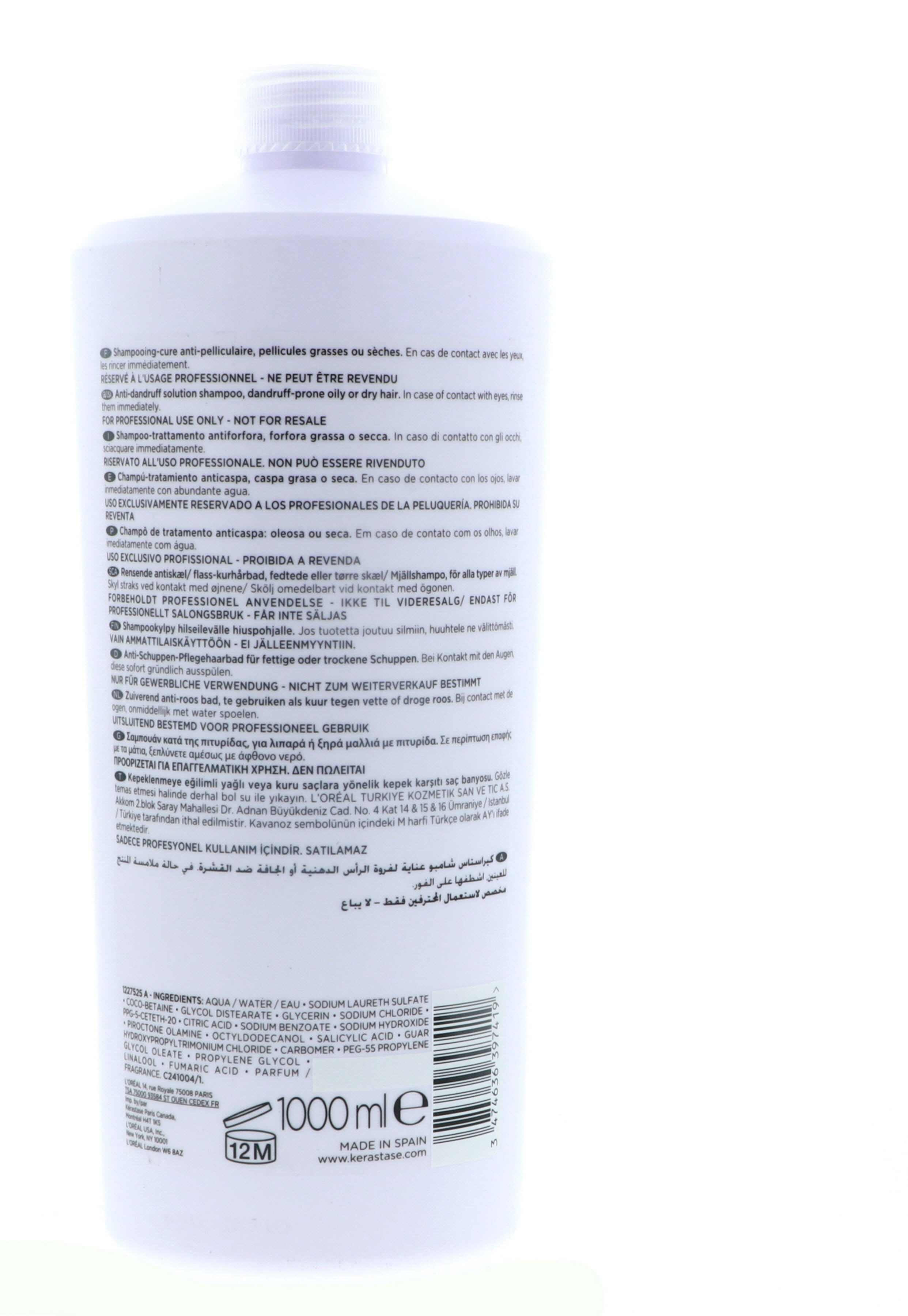Kerastase Bain Anti-Pelliculaire 1 Liter This shampoo gives long-lasting protection against dandruff Scalp is soothed and exfoliated Hair is left soft and toned and zinc pyrithione targets and eliminates bacteria responsible for dandruff A silicon-free anti-dandruff shampooContains an active ingredient to treat the causes of dandruffBlended with exfoliating Salicylic Acid to provide a deep scalp cleansingPrevents the recurrence of dry or oily dandruff for eight consecutive weeksGreat for dandruff-prone oily or dry hair Tested under dermatological controlTo use: Apply to damp hair emulsify & massage to activate micro-circulation & rinse thoroughly