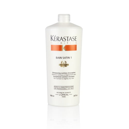 Gently cleanses and nourishes hair, eliminating build-up and leaving hair shiny and smooth with a silky, lightweight finish. Kerastase Nutritive Bain Satin 1 Shampoo, 34 Fl Oz This nourishing shampoo provides key nutriments to soften normal to slightly dry hair from root to tip.