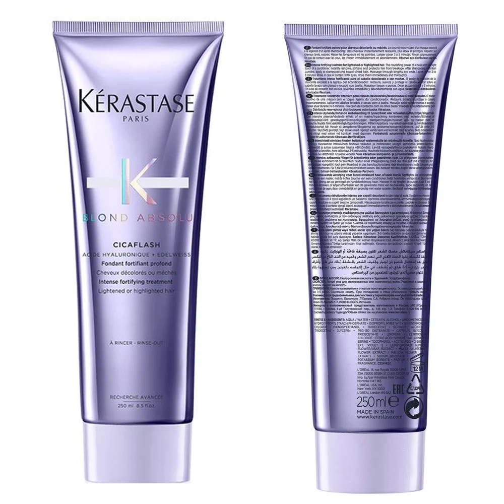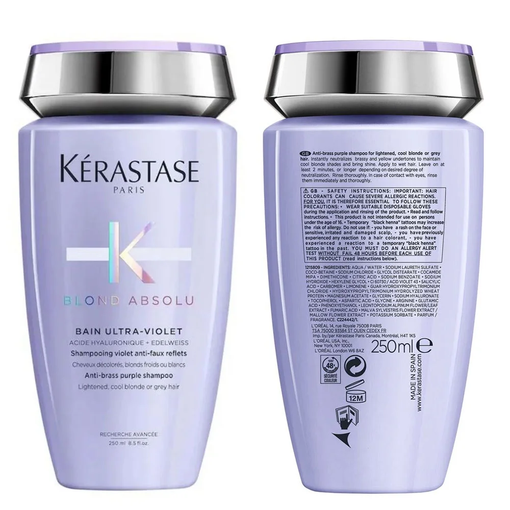 Bain Ultra-Violet shampoo effectively neutralizes brassiness and unwanted yellow tones, maintaining a cool and luminous blonde shade Cicaflash Conditioner provides intense hydration and restoration, leaving your hair soft, supple, and beautifully nourished Specially formulated for blonde or lightened hair, this set is part of the Blond Absolu range, catering to the unique needs of blonde locks The duo offers complete care for blonde hair, addressing toning, hydration, and restoration for a comprehensive hair care routine It hydrates sensitized hair, protects hair from oxydation, instantly neutralises brassiness and boosts color luminosity for bright shiny blonde hair. Embrace the brilliance of your blonde hair with the Kerastase Blond Absolu Bain Ultra-Violet Shampoo & Cicaflash Conditioner set, ensuring your locks stay vibrant, nourished, and beautifully toned