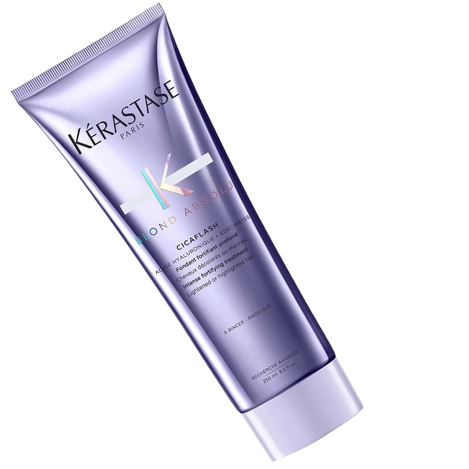 Kerastase Blond Absolu Illuminating Shampoo, in an 8.5 oz bottle, is a hydrating powerhouse that removes impurities, intensively hydrates fibers, and leaves hair feeling light. Improving and illuminating natural shine, it strengthens from within, resurfaces the cuticle for uniform porosity, and imparts a brilliant shine. Pair it with the CICAFLASH Intense Fortifying Conditioner, also 8.5 oz, a luxurious blend enriched with hyaluronic acid and Edelweiss flower extract. This opulent formula combines mask-like nourishment with a lightweight conditioner texture, delivering intense hydration and repair, leaving your blonde locks exceptionally vibrant and resilient. Trust Kerastase Blond Absolu for the ultimate care for lightened or highlighted hair.