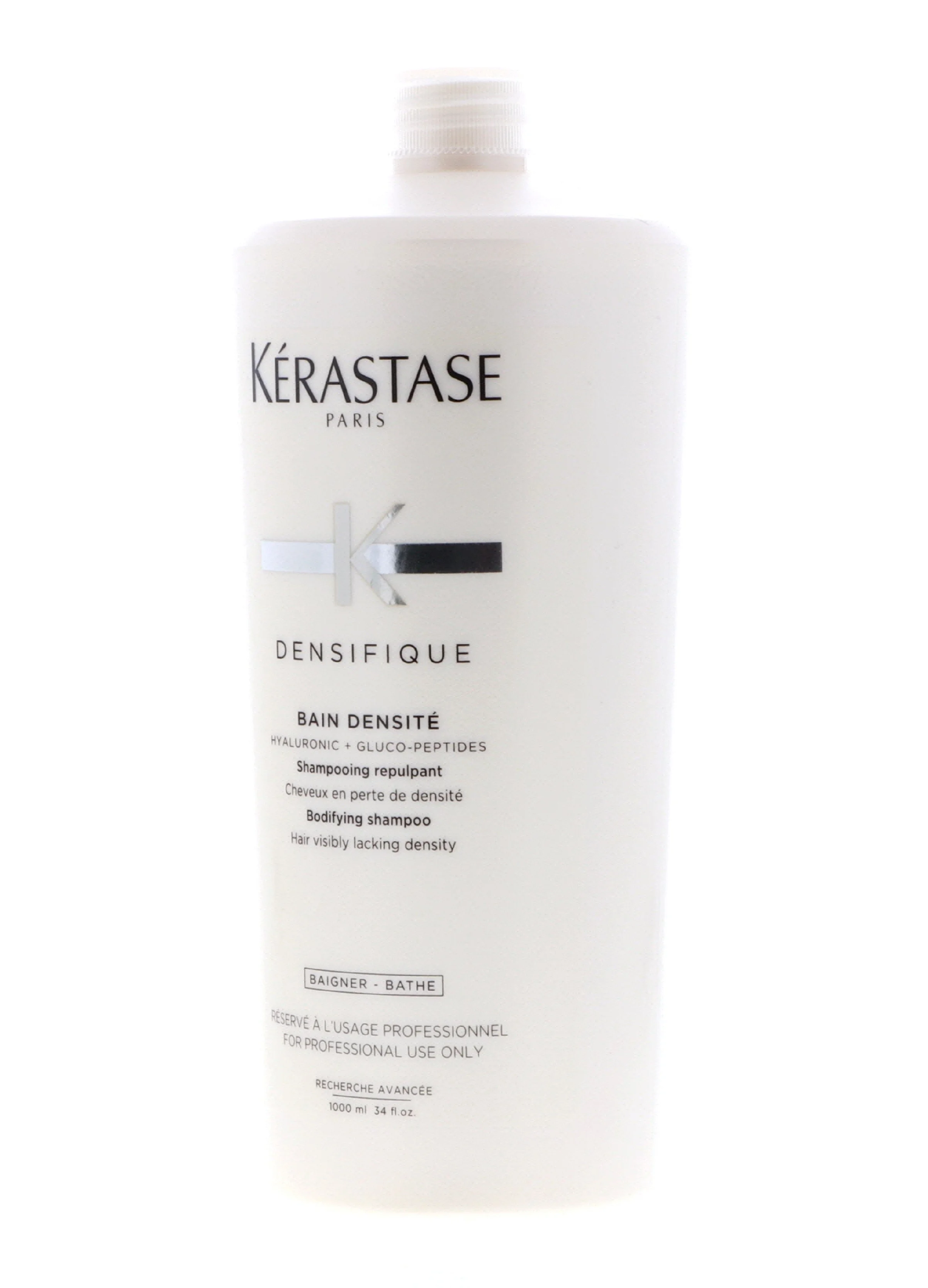 Kerastase Densifique Bain Densite Shampoo is a thickening shampoo designed to add volume and density to hair that lacks fullness. The product comes in a large 34 oz bottle, making it ideal for those who use it regularly. This shampoo is formulated with a combination of hyaluronic acid and gluco-peptides to help plump and strengthen the hair fibers, making hair look and feel thicker and fuller. It’s suitable for all hair types, including those that are thinning or lacking in volume.