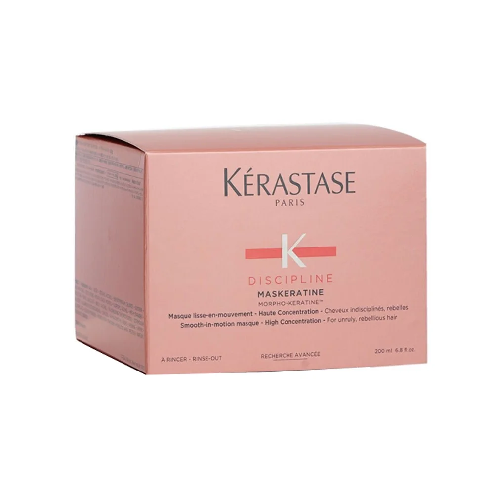 Kérastase Discipline Maskeratine Smooth-in-Motion Masque is a high-concentration hair mask designed to provide intense smoothness and manageability. Formulated with Morpho-Keratine technology, this masque helps discipline unruly hair, reducing frizz and promoting a sleek, polished finish. The high-concentration formula ensures a deeply nourishing experience, leaving the hair feeling soft, supple, and beautifully conditioned. Ideal for those with frizzy and unmanageable hair, it works to restore and enhance the natural movement of the hair for a smoother and more controlled look. Kérastase Discipline Maskeratine Smooth-in-Motion Masque is a transformative treatment for achieving salon-worthy results, making it a key component in the Discipline range.