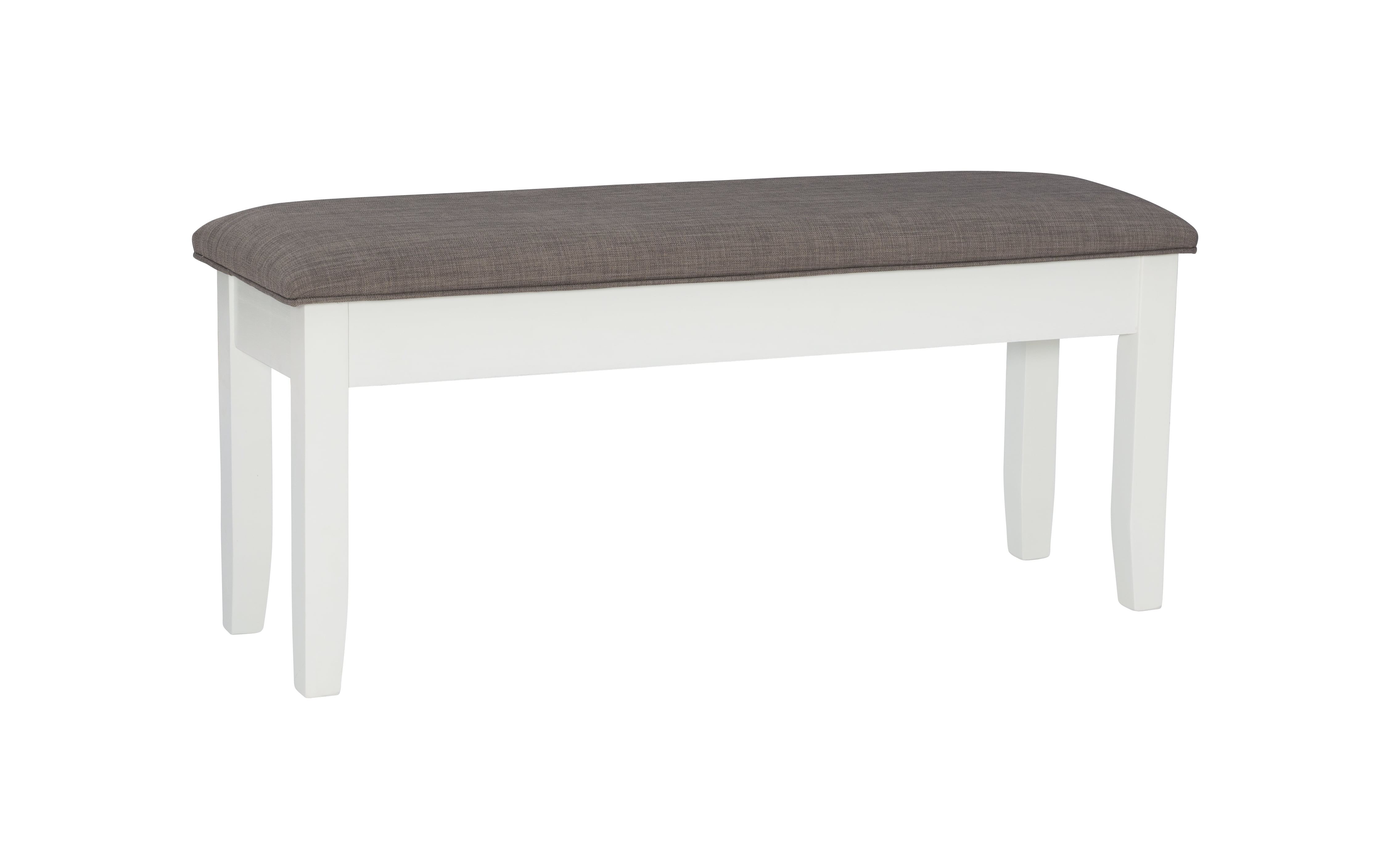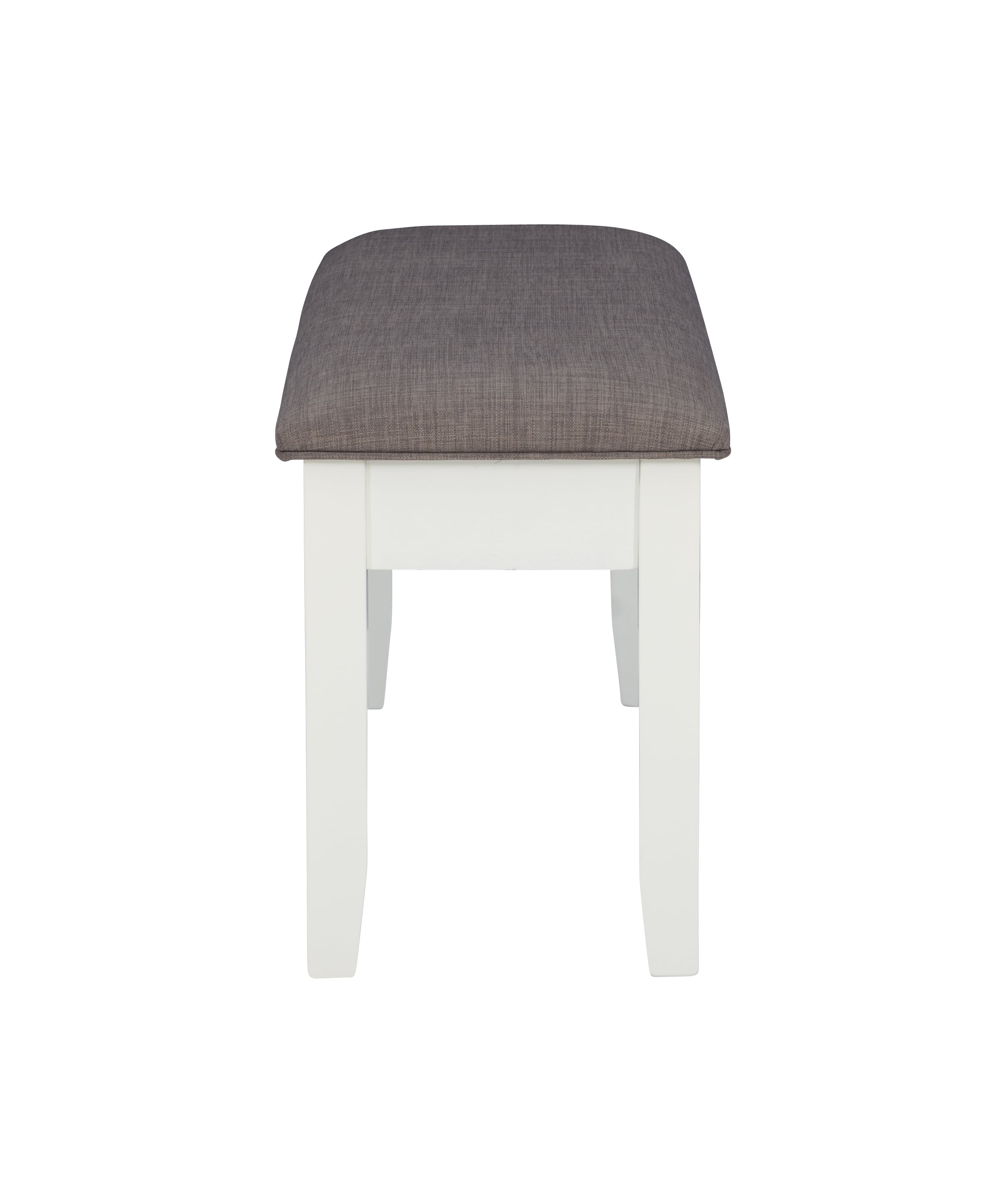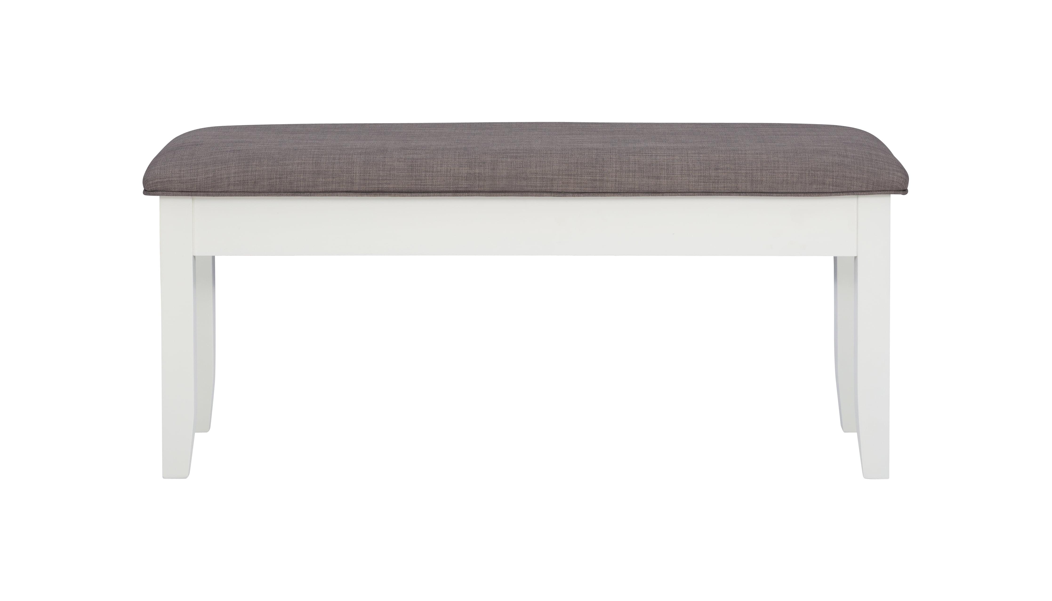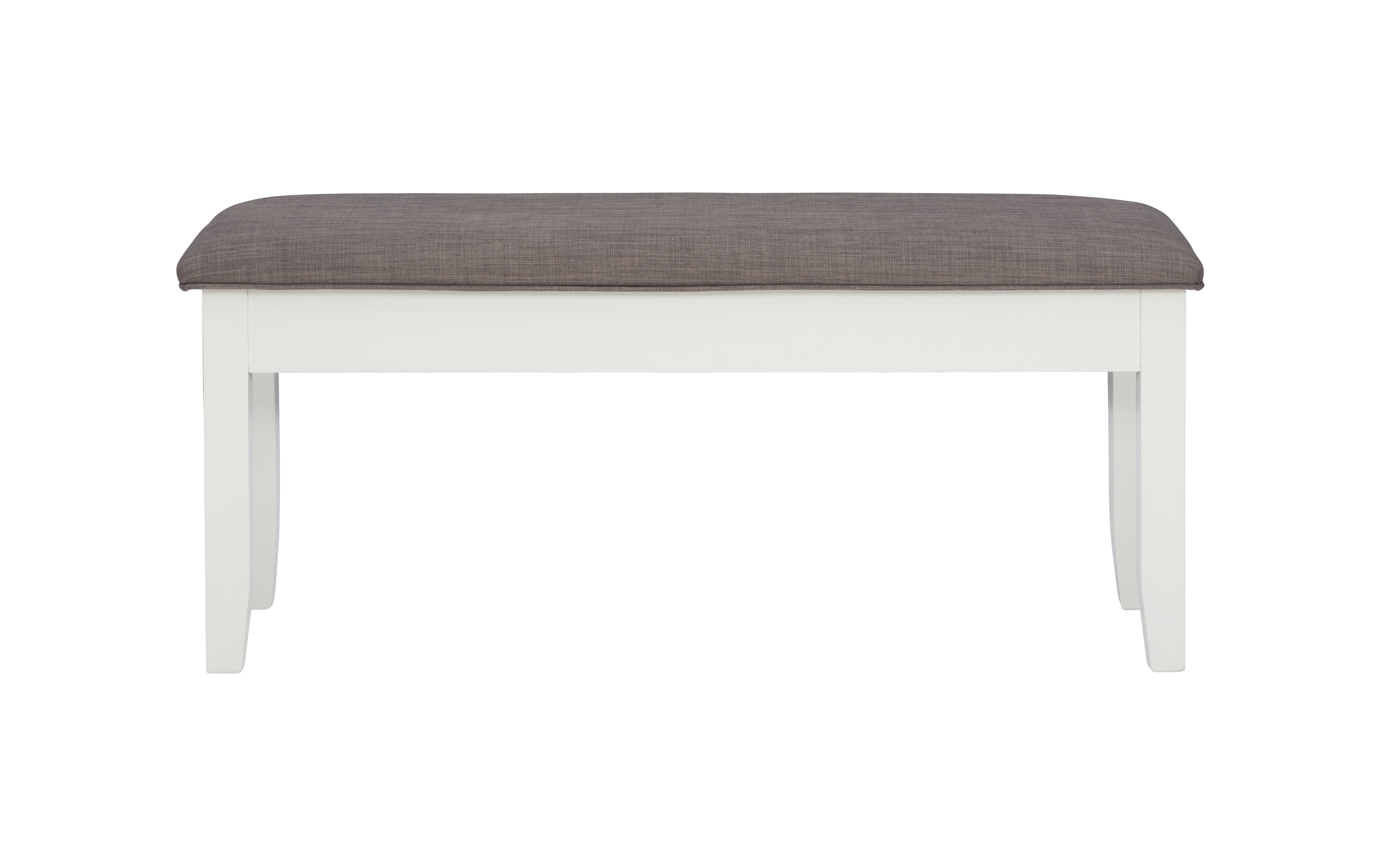 Introducing the Kesten Farmhouse Dining Bench with Storage – a stylish and versatile addition to any home. Featuring a chic vanilla white finish and a rustic taupe upholstered seat, this bench exudes timeless elegance while offering practical functionality. Designed to complement the Emma Dining Table, it seamlessly integrates into any space, from the dining room to the hallway, bedroom, or living room. The seat opens to reveal hidden storage, providing a clever solution for keeping your space organized while maintaining a sophisticated aesthetic. With a comfortable 19.25-inch seat height, the Emma Storage Bench ensures ergonomic seating, while the crosshatch fabric design adds visual interest. Assembly is simple with easy-to-follow instructions, and maintenance requires only spot cleaning with a damp or dry cloth. More than just a seating option, this bench enhances your home with both style and practicality. Pair it with the matching dining table and side chair for a cohesive look, or use it as a standalone piece to elevate any room effortlessly.