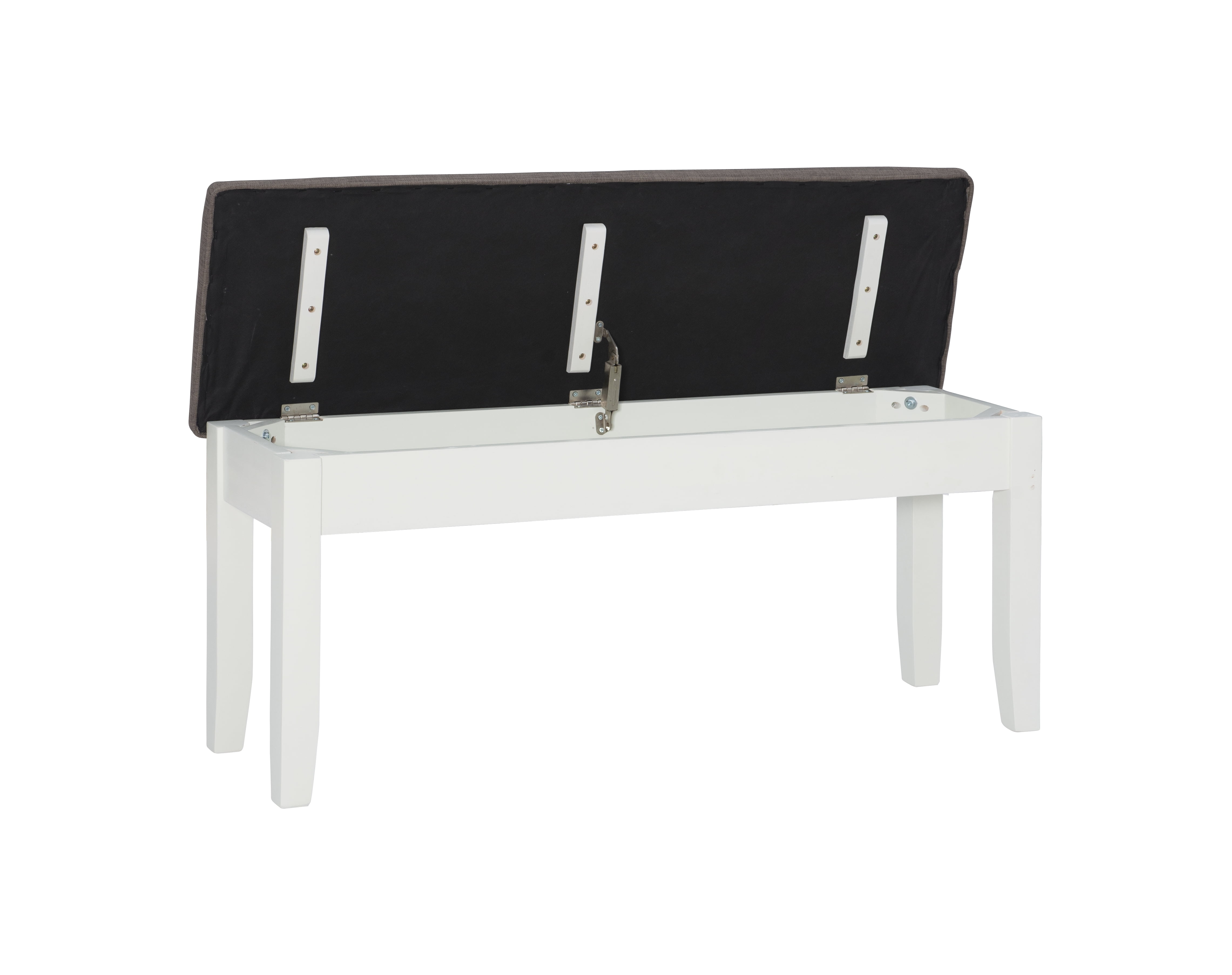 Sophisticated & Versatile Design: A chic vanilla white frame paired with a rustic taupe upholstered seat effortlessly enhances any room, from dining areas to entryways and beyond. Clever Hidden Storage: The lift-up seat reveals generous hidden storage, offering a stylish solution to keep your space organized and clutter-free without compromising on design. Ergonomic Comfort: Designed with a 19.25-inch seat height, this bench ensures maximum comfort and support, perfect for extended seating or quick relaxation. Effortless Assembly & Low-Maintenance Care: Quick and easy assembly with simple instructions, plus spot cleaning with a damp or dry cloth ensures your bench stays looking fresh with minimal effort. Perfect for Every Room: Whether placed in the dining room, hallway, bedroom, or living room, this versatile bench blends seamlessly into your home, adding both form and function to any space.