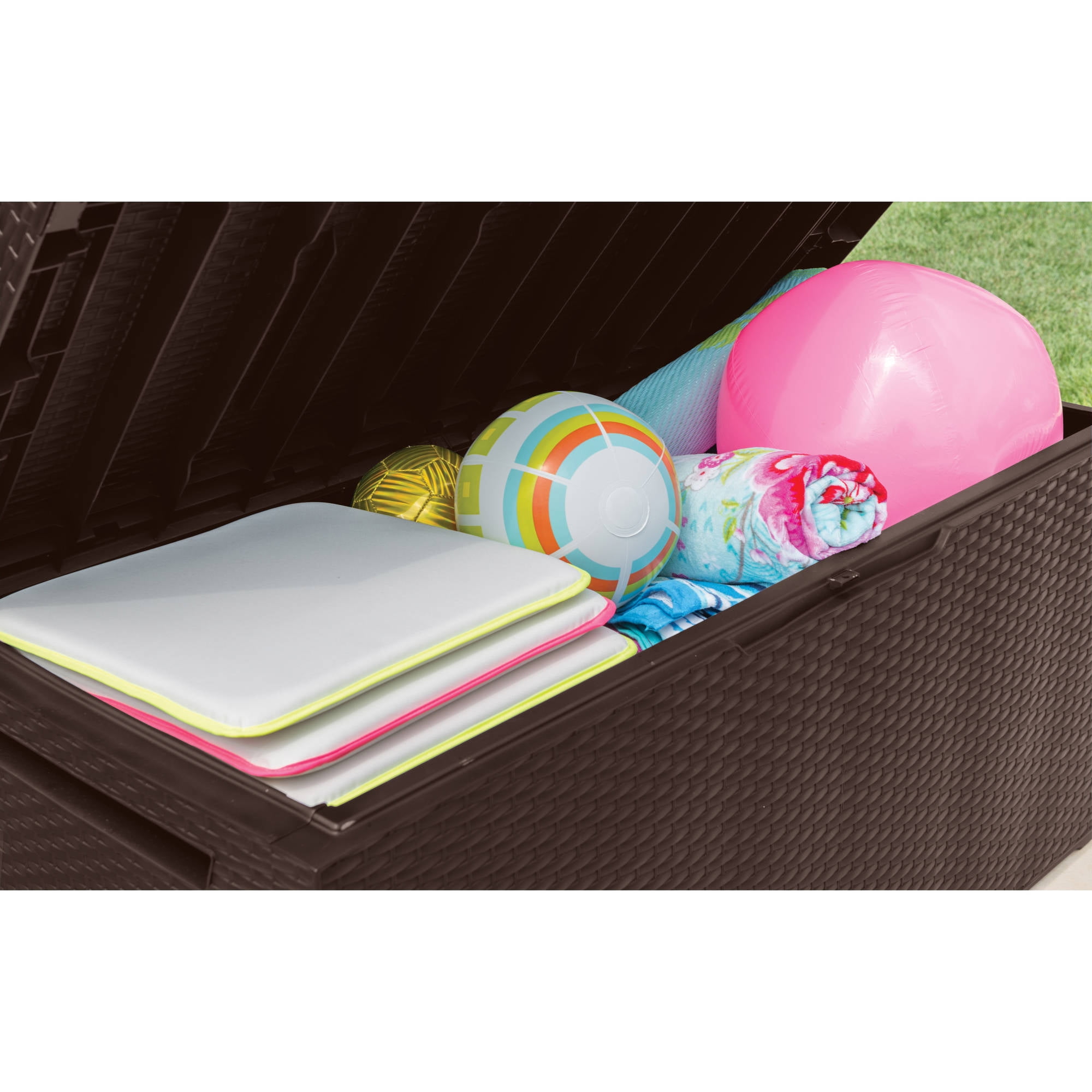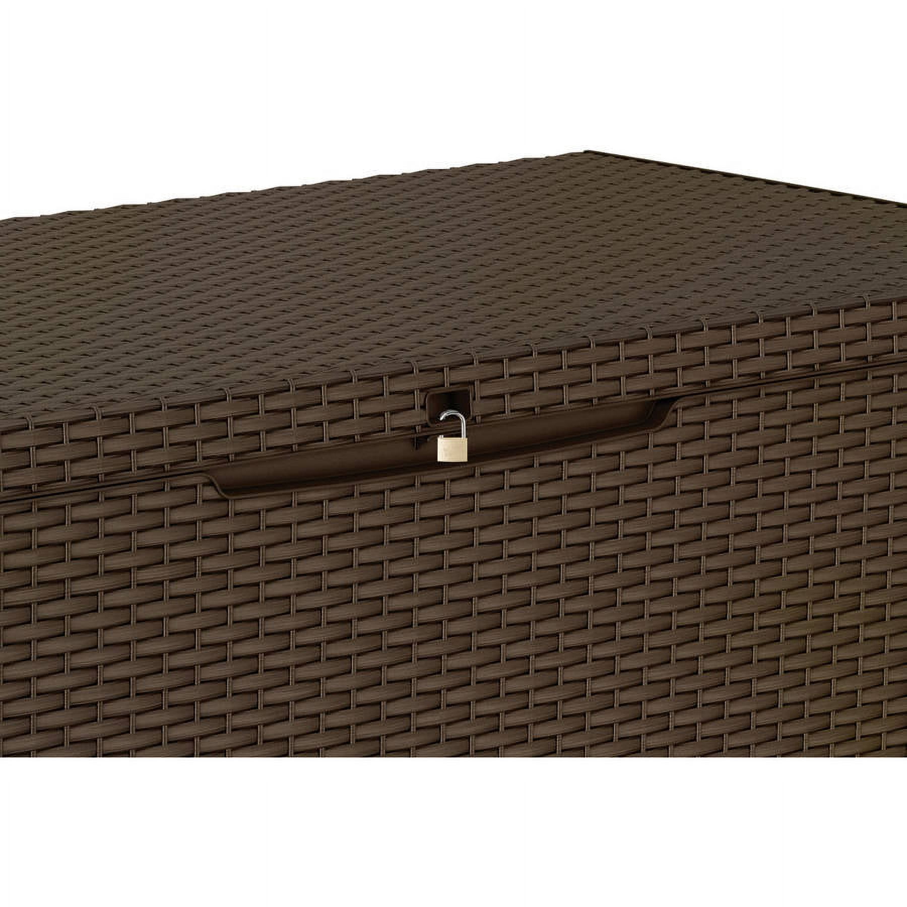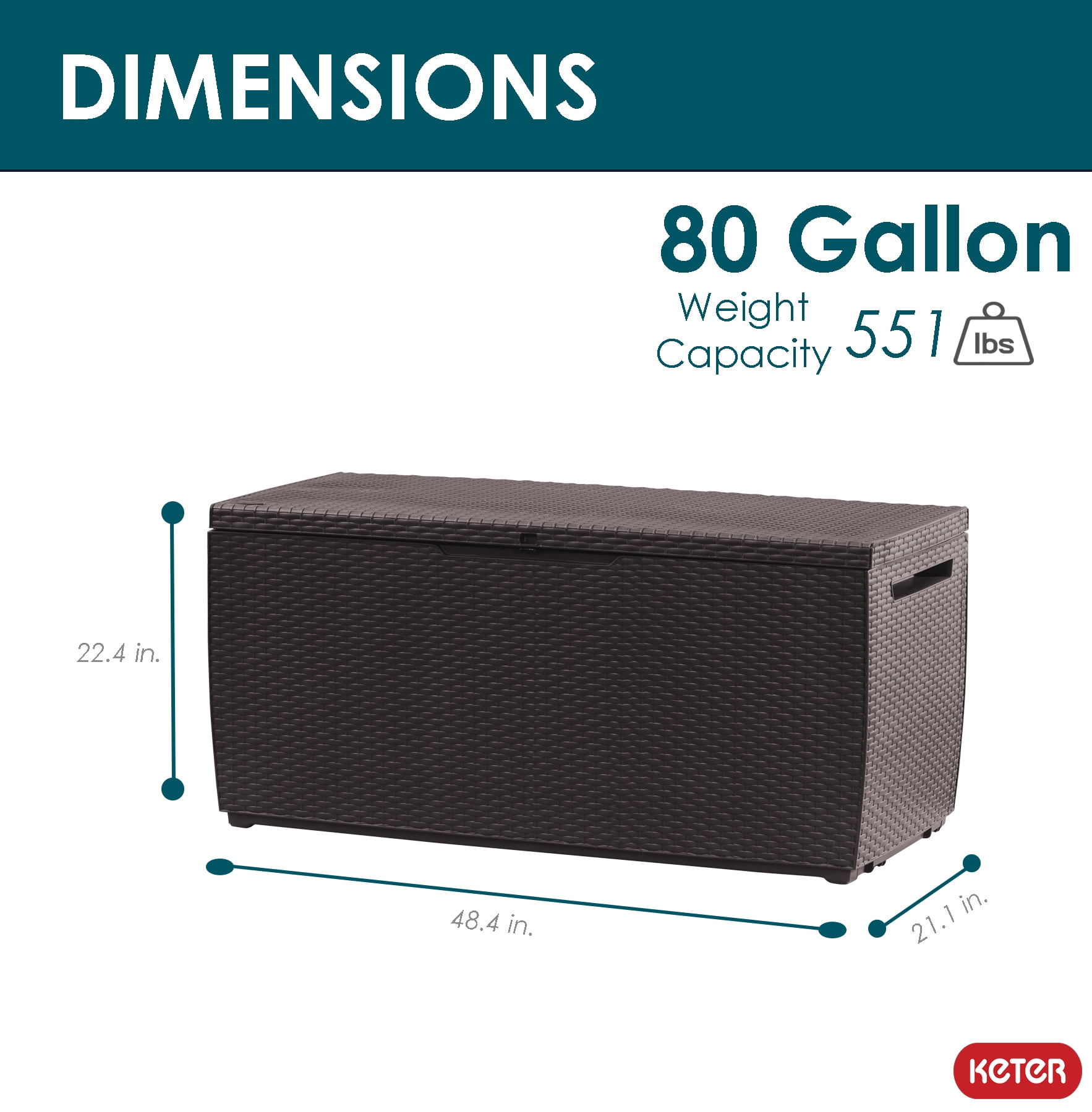 Keter Capri 80 Gallon Durable Weatherproof Resin Deck Box Organization and Storage for Outdoor Patio and Lawn, Rattan Espresso Brown