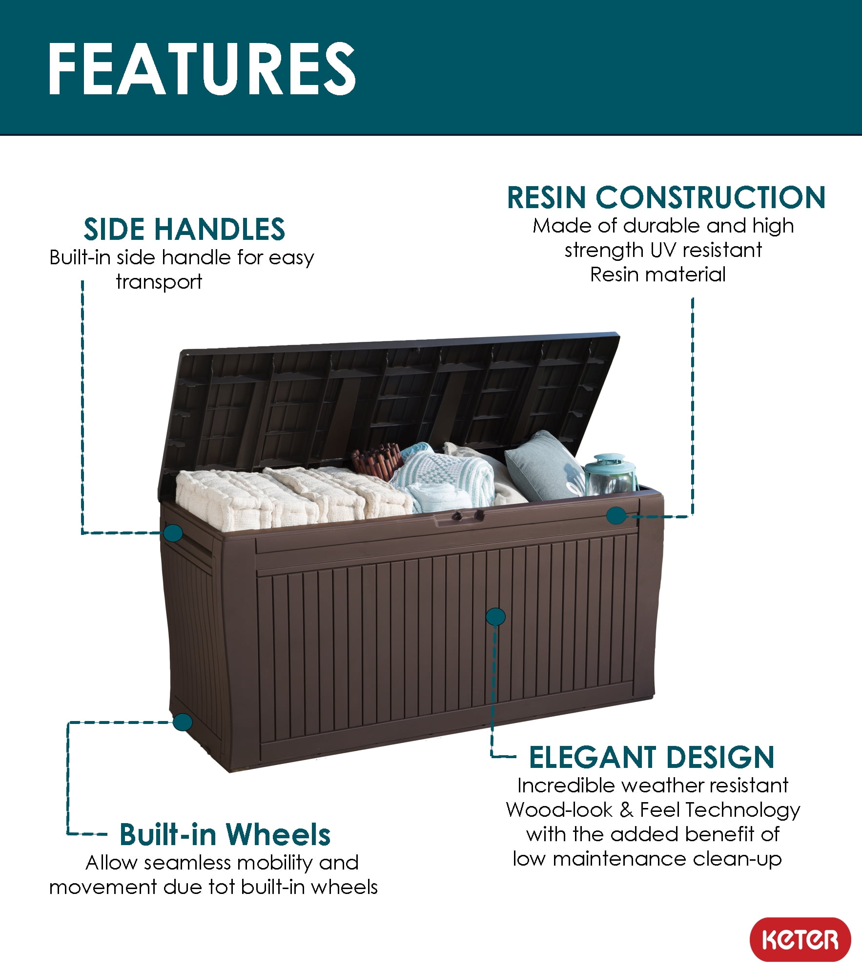 Keter Comfy 71 Gallon Durable Resin Outdoor Deck Box Storage Organization, Espresso Brown