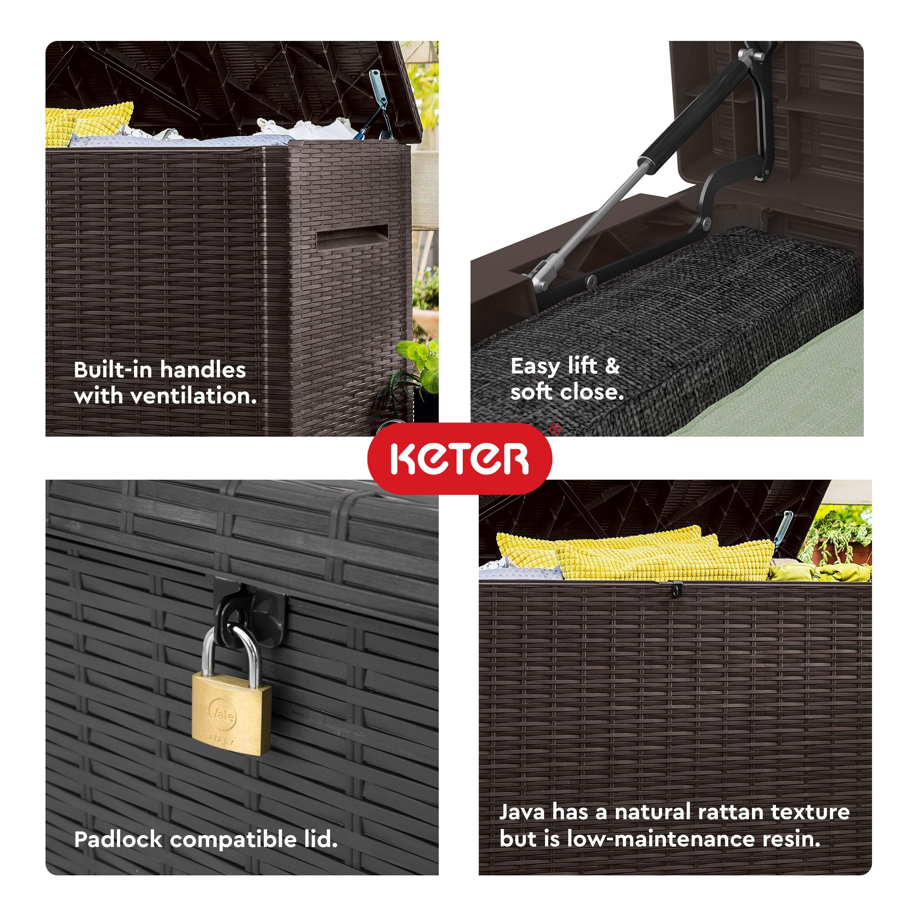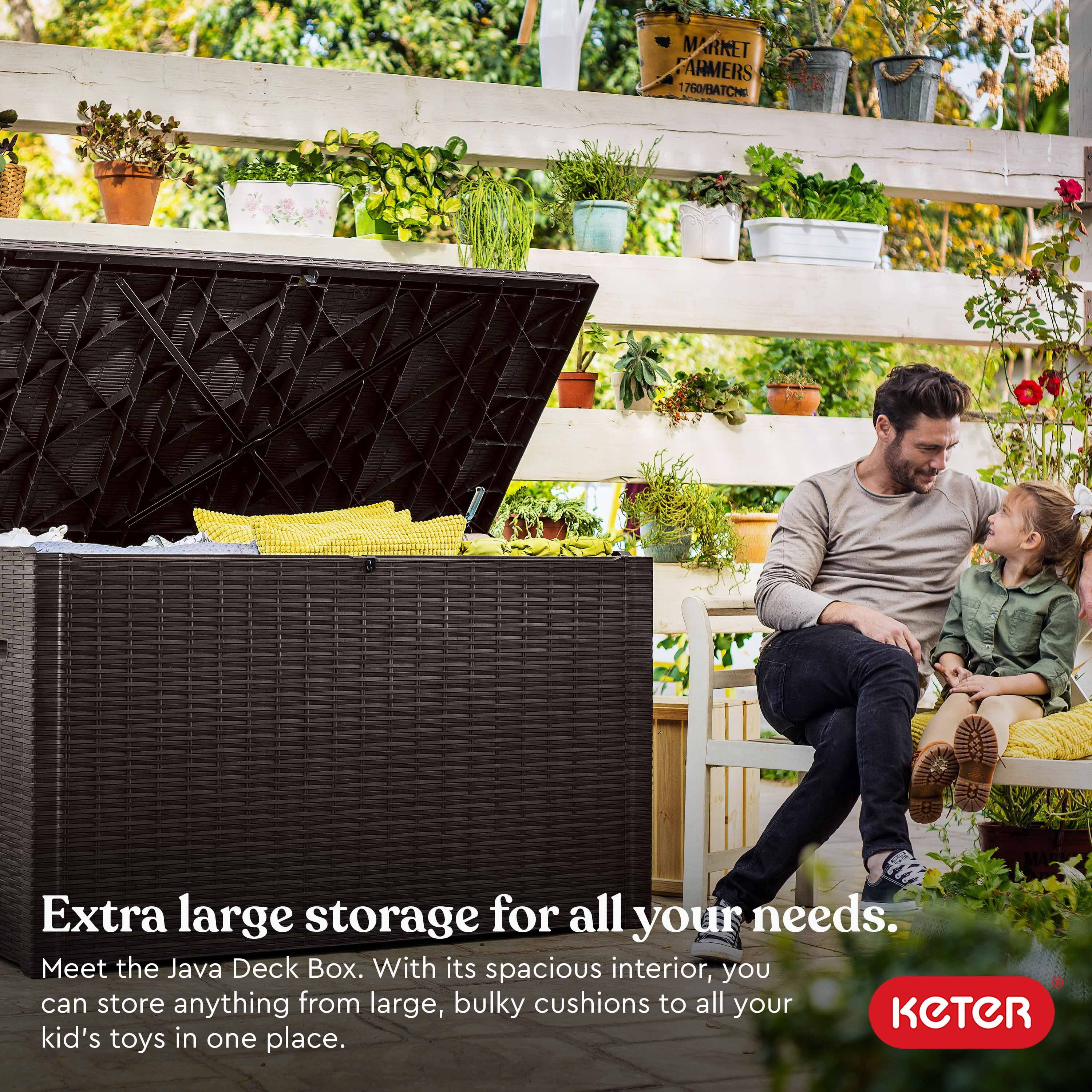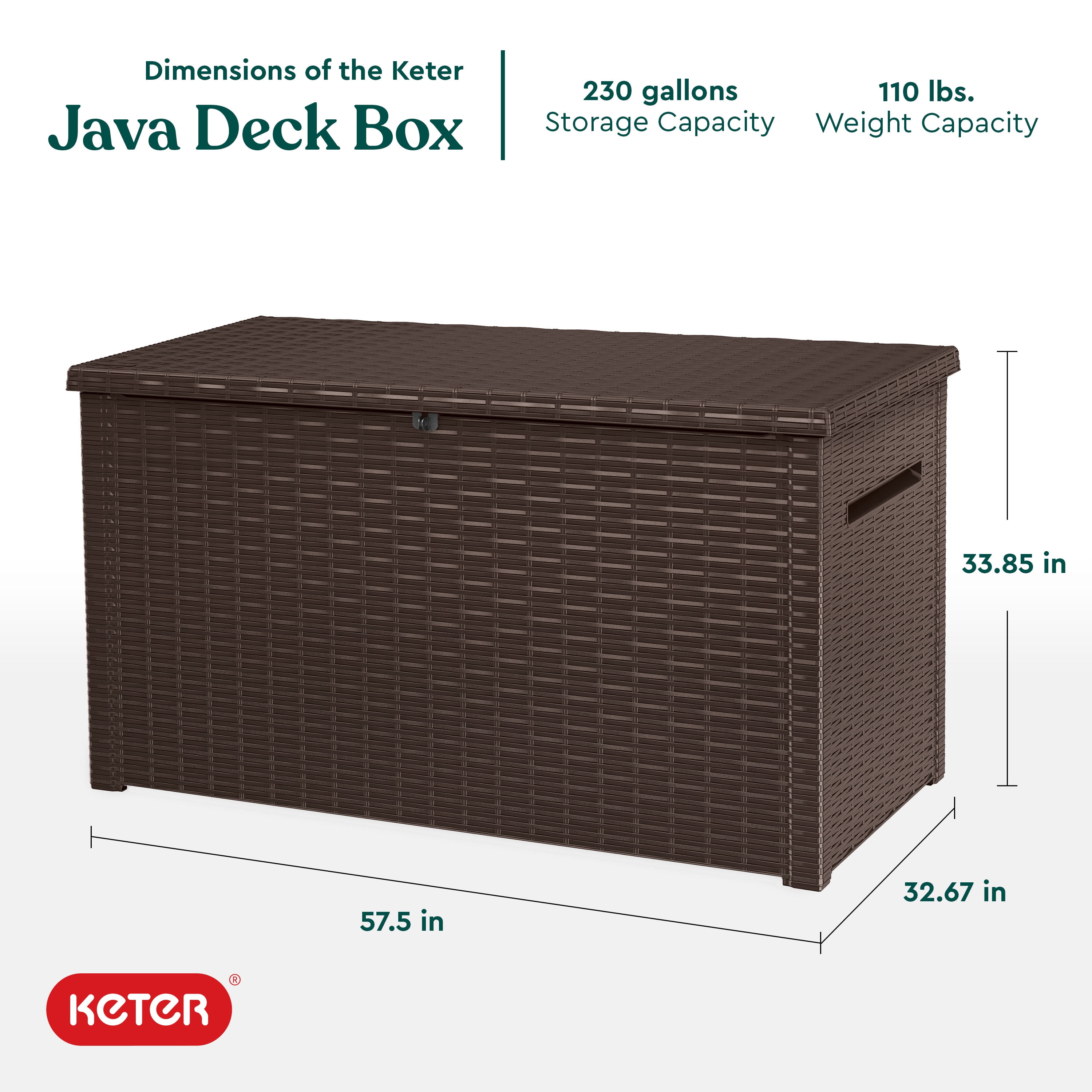 Keter Java 230 Gallon XL Durable Resin Outdoor Deck Box Storage Organization, Wicker Espresso Brown