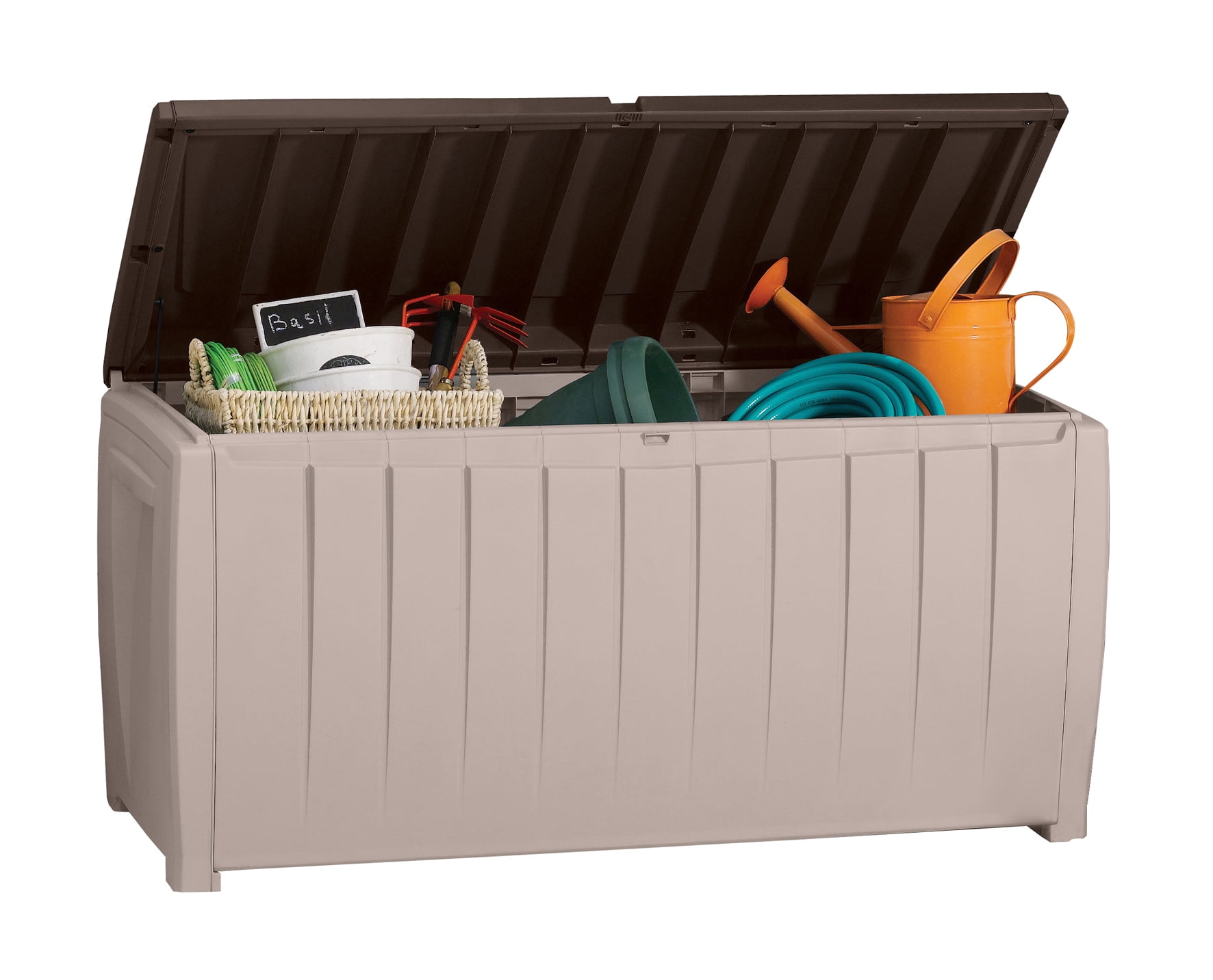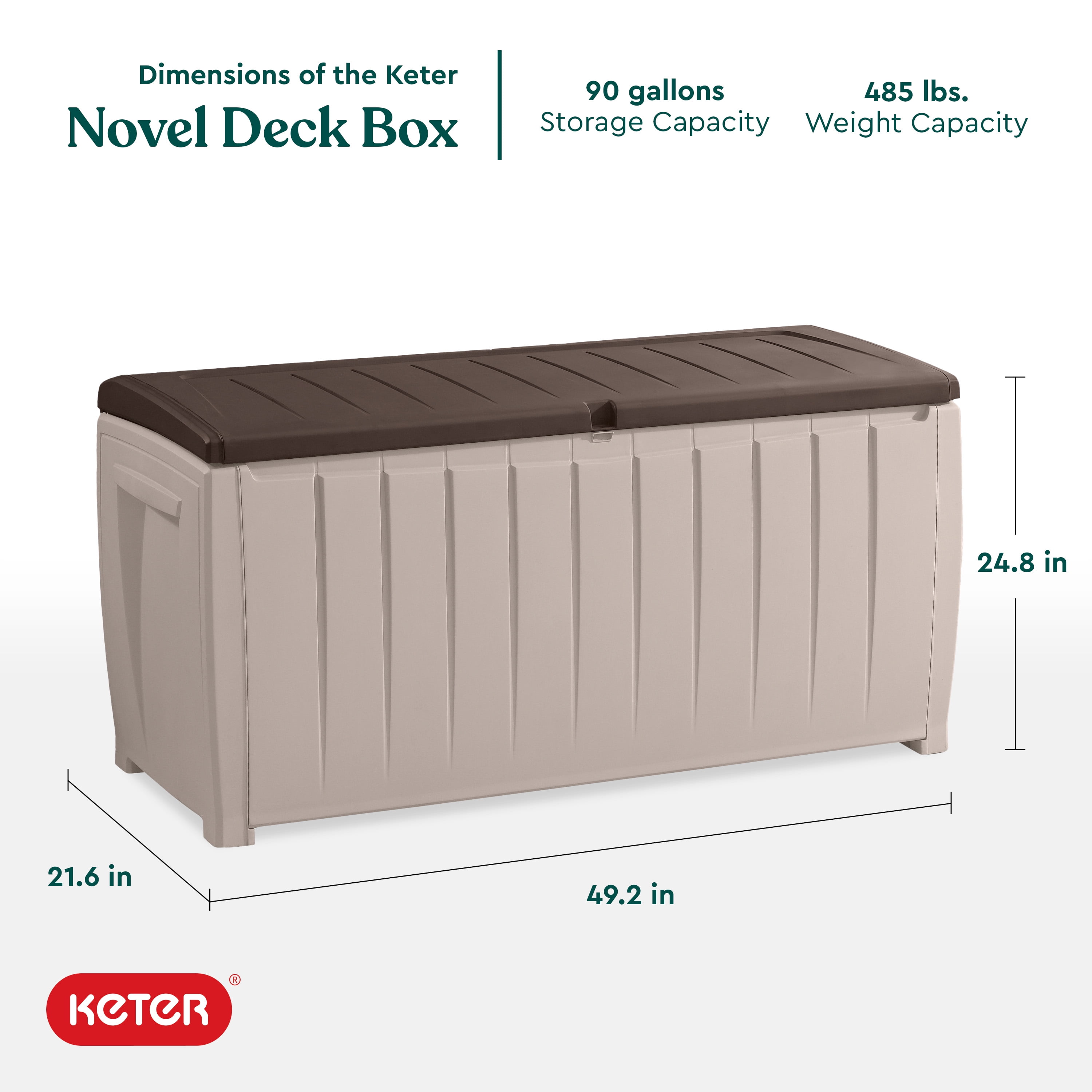 Keter Novel 90 Gallon Durable Resin Outdoor Deck Box Storage Organization, Brown