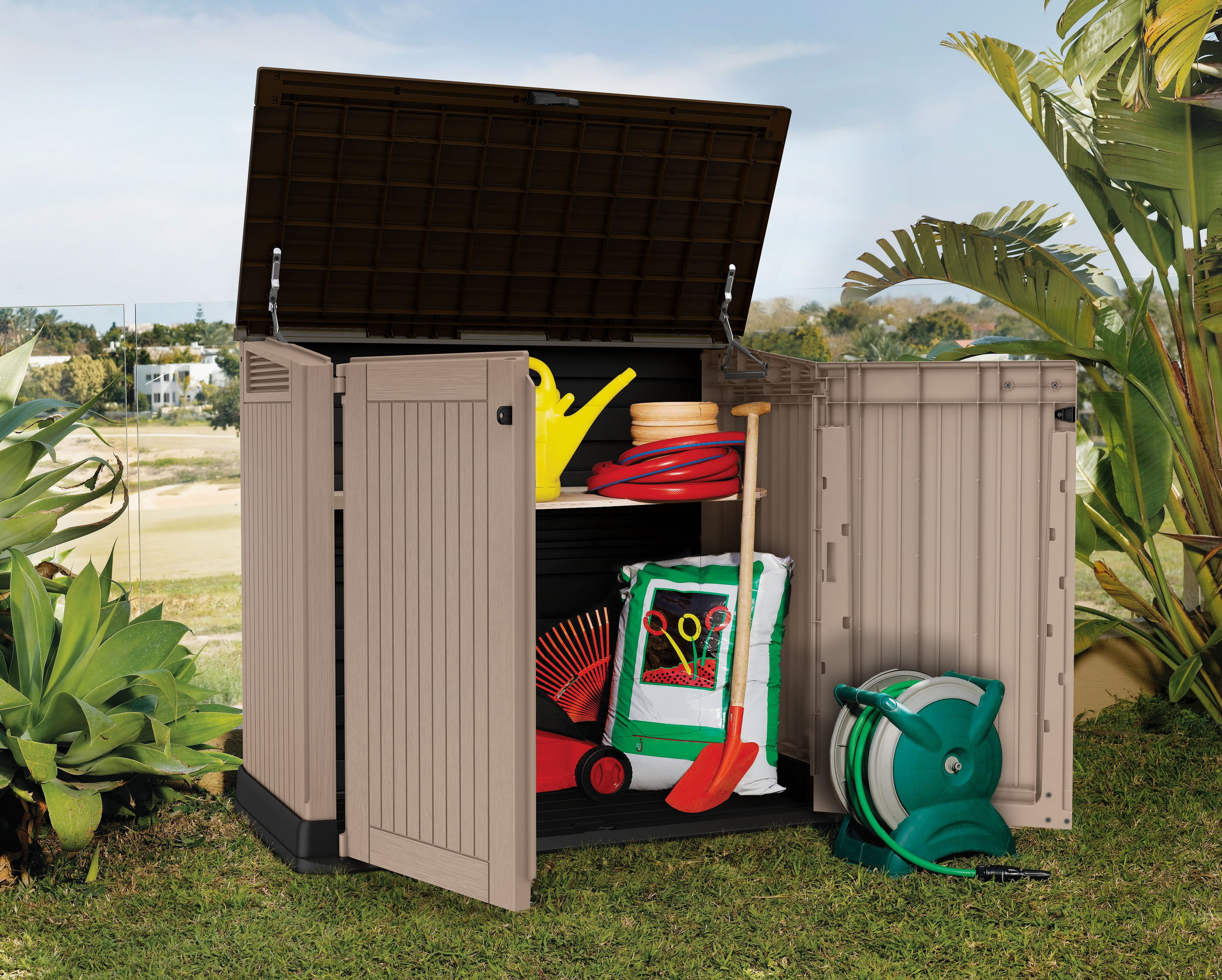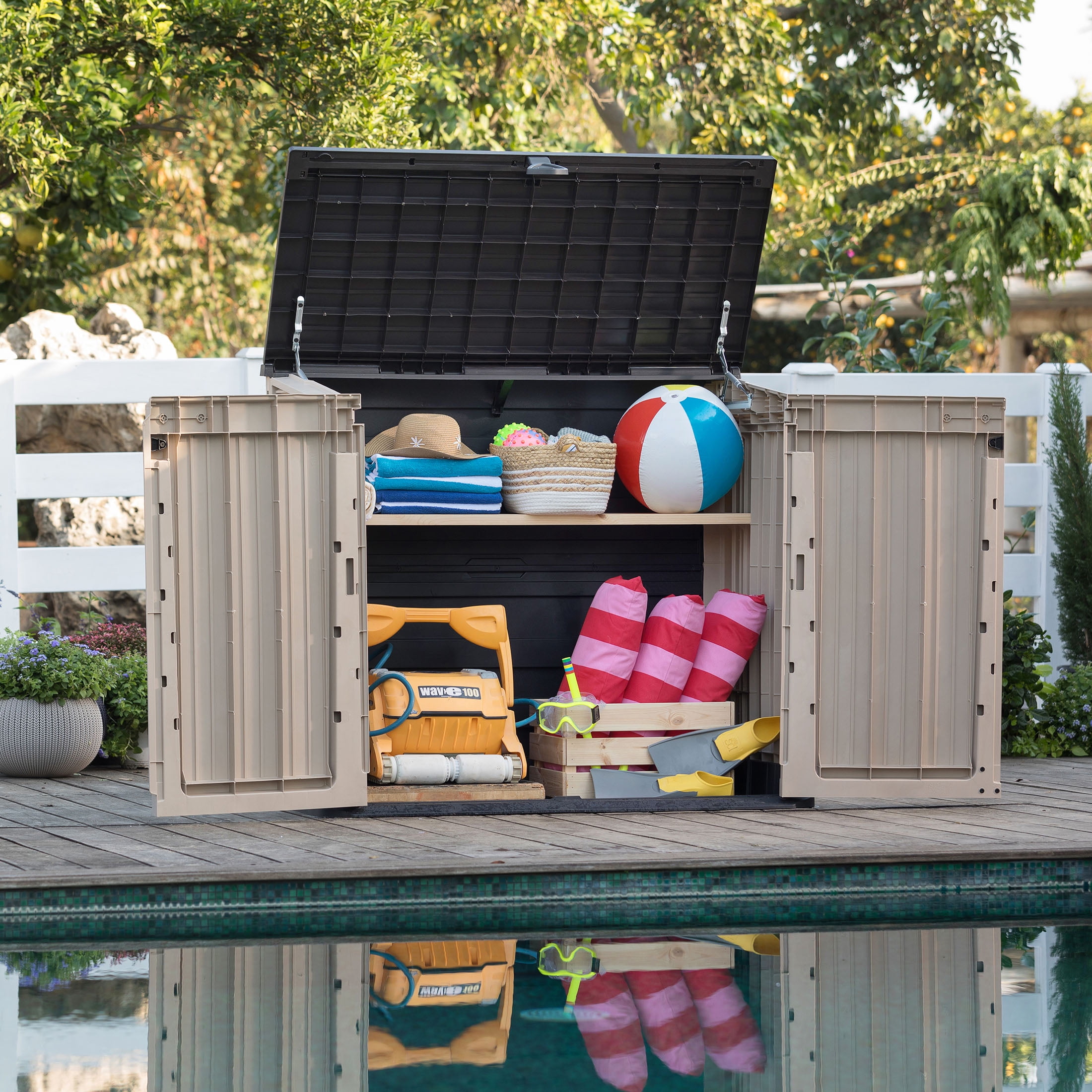 Keter Store-It-Out Midi Horizontal Durable Resin Outdoor Storage Shed With Heavy Duty Floor and Locking Latch, Beige