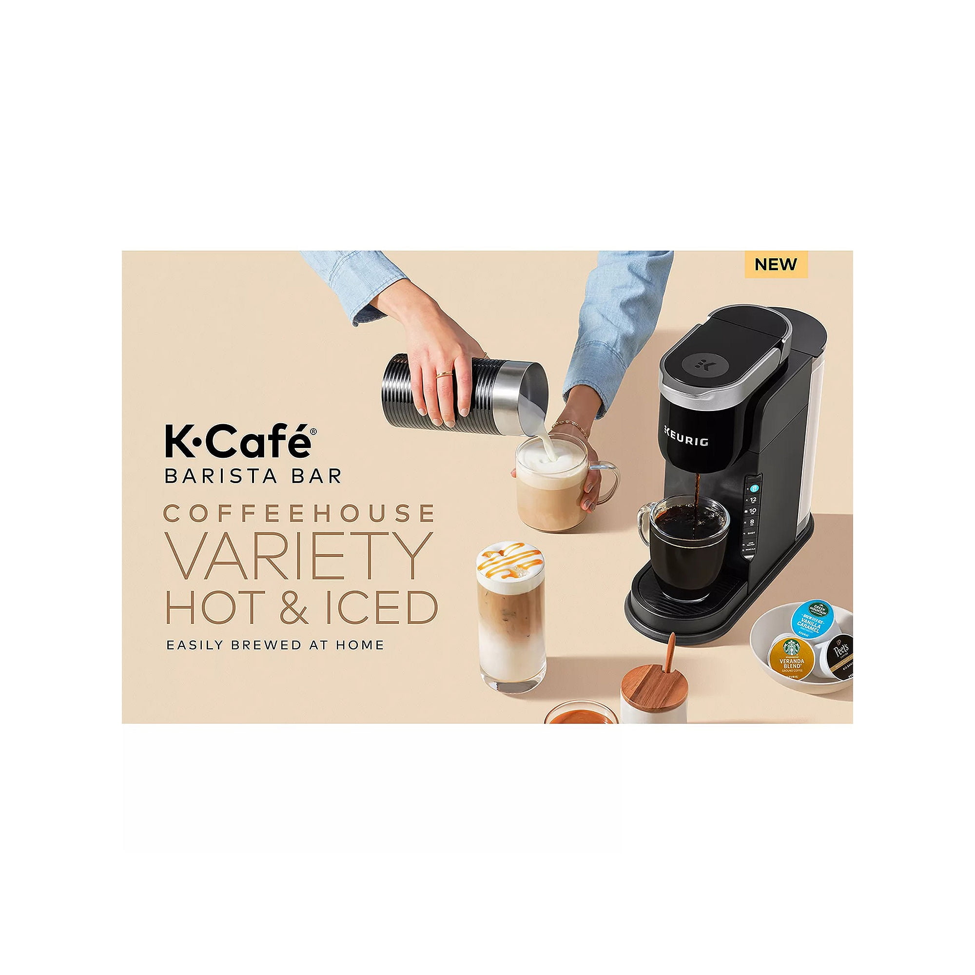 With the Keurig¬Æ K-Caf√©¬Æ Barista Bar single-serve coffee maker, you can enjoy all your go-to coffeehouse beverages – without the go. Easily create hot or iced favorites like creamy lattes, rich cappuccinos, and more at home with the included frother, or enjoy full-flavored iced coffee at the touch of a button. All your hot and iced coffeehouse favorites – always simply made, always delicious. In the mood for something indulgent? The K-Caf√©¬Æ Barista Bar coffee maker lets you create any coffee beverage you’re craving with its included milk frother. Just pour in fresh milk or your favorite dairy alternatives such as oat, almond, or soy to make perfectly frothed milk in minutes. And with both hot and cold temperature settings, you can add froth to all your hot and iced beverages. Enjoying refreshingly delicious iced coffee is simple with the Brew Over Ice button. One push and the K-Caf√©¬Æ Barista Bar coffee maker automatically adjusts the brew temperature, starting hotter to extract full flavor, then cooling down to minimize ice melt. The result is a vibrant, balanced iced coffee that never tastes watered down. Use any K-Cup¬Æ pod with the Shot button – which brews a 2oz coffee shot for a more intense, bold flavor – and you can transform your house into a coffeehouse with magnificent macchiatos, impressive iced lattes, and more delicious coffee creations. This multitalented, tumbler-and-travel-mug-friendly coffee maker also brews the same full-flavored hot coffee you love. And whether you’re brewing hot or iced, you can choose from three different cup sizes – 8, 10, and 12oz (including ice) – and with a 42oz removable reservoir, you can enjoy up to 4 delicious cups between refills. Features: COFFEEHOUSE VARIETY: Easily brew hot or iced lattes, cappuccinos, and more of your favorite coffeehouse beverages at home using any K-Cup¬Æ pod. HOT AND COLD MILK FROTHER: Use fresh milk or your favorite dairy alternatives such as oat, almond, or soy, to create perfectly frothed milk f.