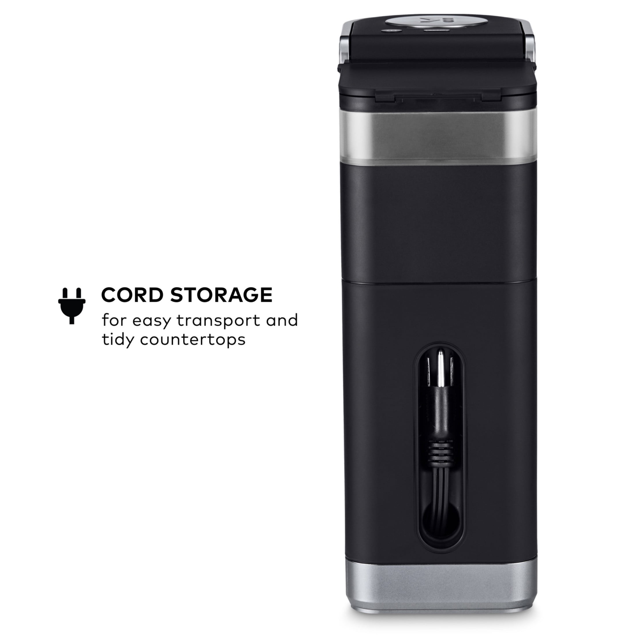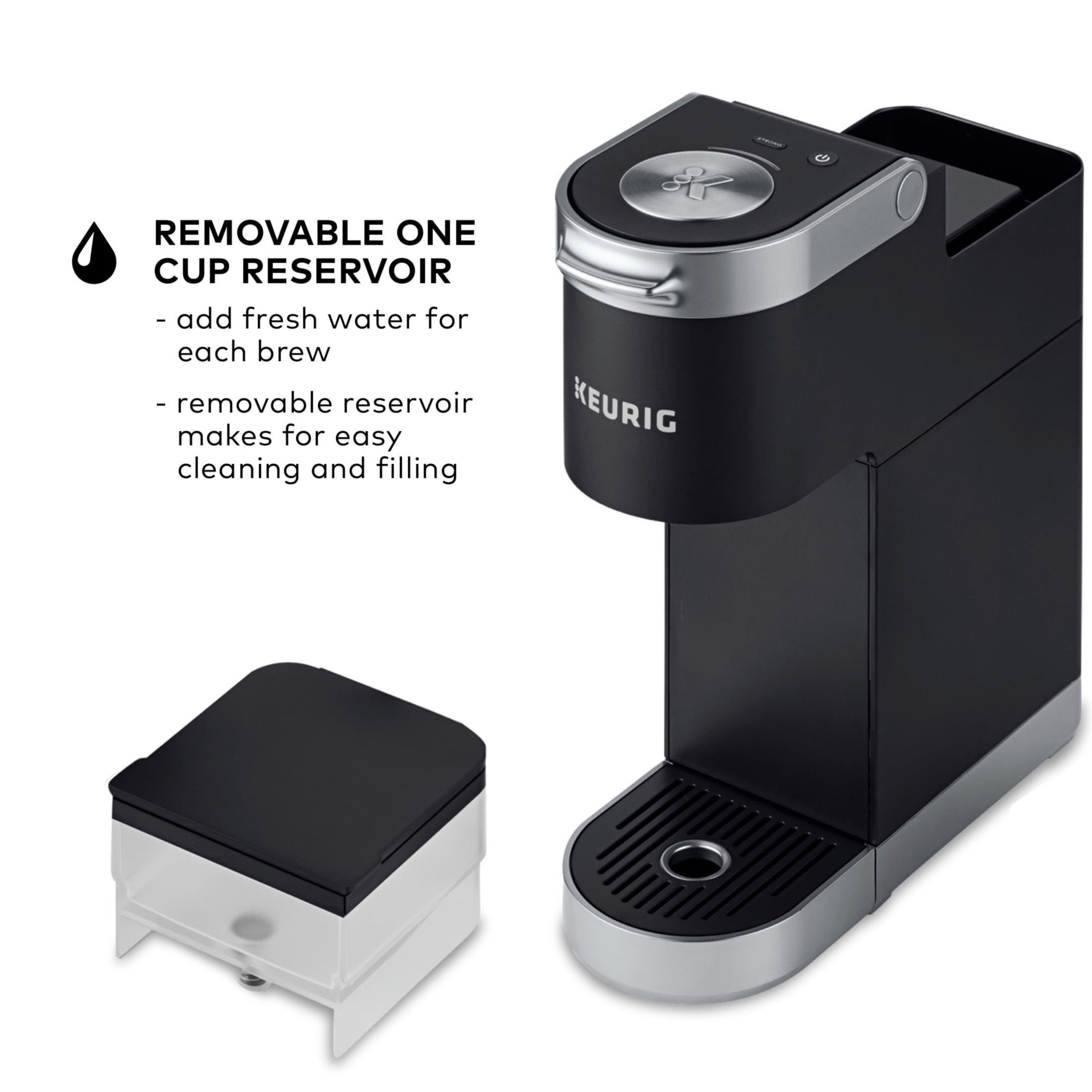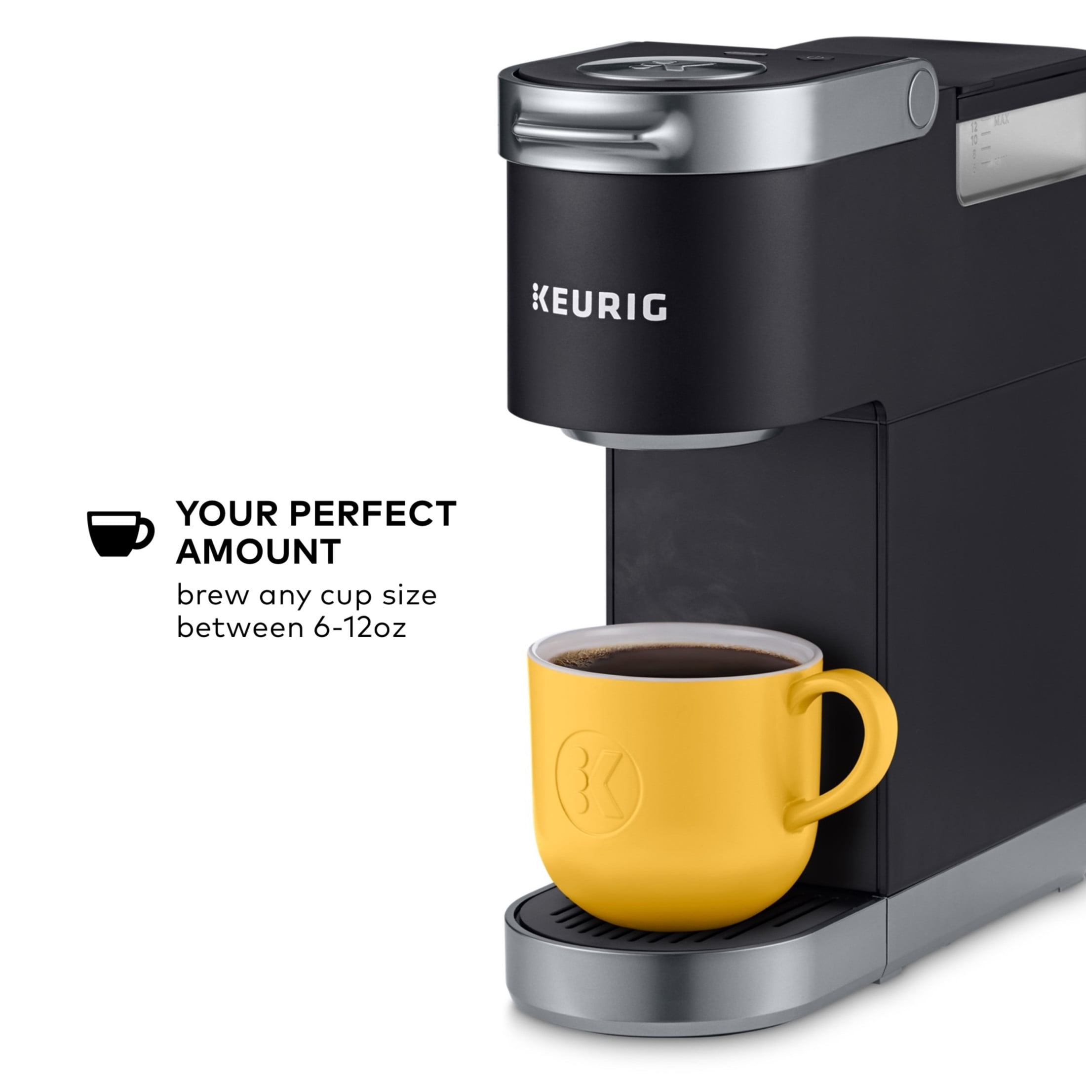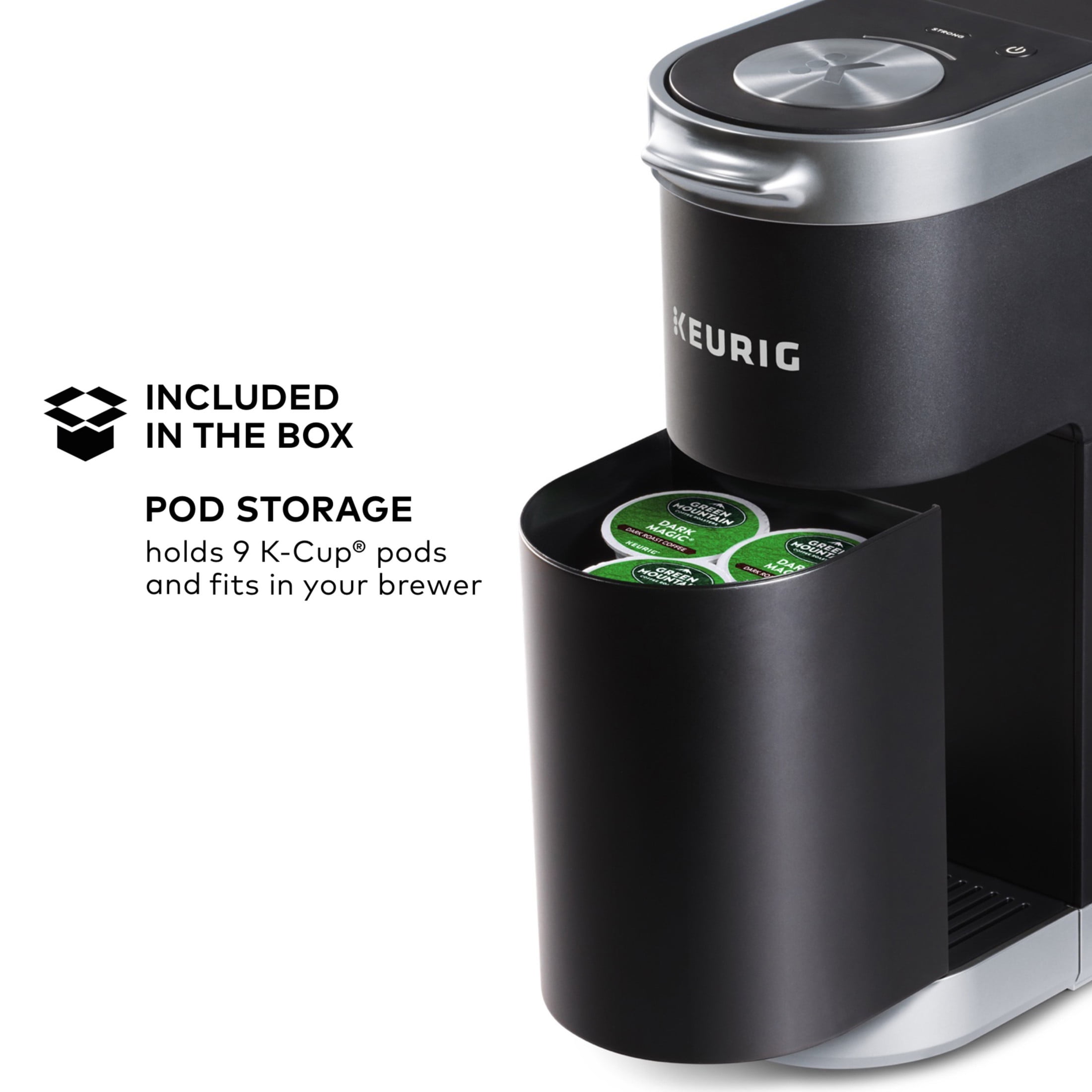 WHAT’S IN THE BOX: Keurig K-Mini Plus single serve coffee maker, pod storage unit that fits in your brewer and can hold up to 9 K-Cup pods. FITS ANYWHERE: Less than 5 inches wide, perfect for small spaces. STRONG BREW: Brew a stronger, more intense cup. YOUR PERFECT AMOUNT: Brew any cup size between 6-12oz with Keurig K-Cup pods. REMOVABLE ONE CUP RESERVOIR: Just add fresh water for each brew. Removable reservoir makes for easy cleaning and filling. FAST & FRESH BREWED: Coffee made in minutes. POD STORAGE: Holds 9 K-Cup pods and fits in your brewer for ultimate portability and saves counter space. CORD STORAGE: For easy transport and tidy countertops. TRAVEL MUG FRIENDLY: Removable drip tray accommodates travel mugs up to 7.0 inches tall and holds a full accidental brew for easy cleanup. ENERGY EFFICIENT: Auto off feature turns off your coffee maker 90 seconds after your last brew, helping to save energy. COMPATIBLE WITH THE MY K-CUP UNIVERSAL REUSABLE COFFEE FILTER: Brew your own ground coffee (sold separately). MATTE FINISH: Sleek simplicity meets modern style, the K-Mini Plus® coffee maker is available in a variety of matte-finish colors with silver detailing on the handle and drip tray. One coffee maker