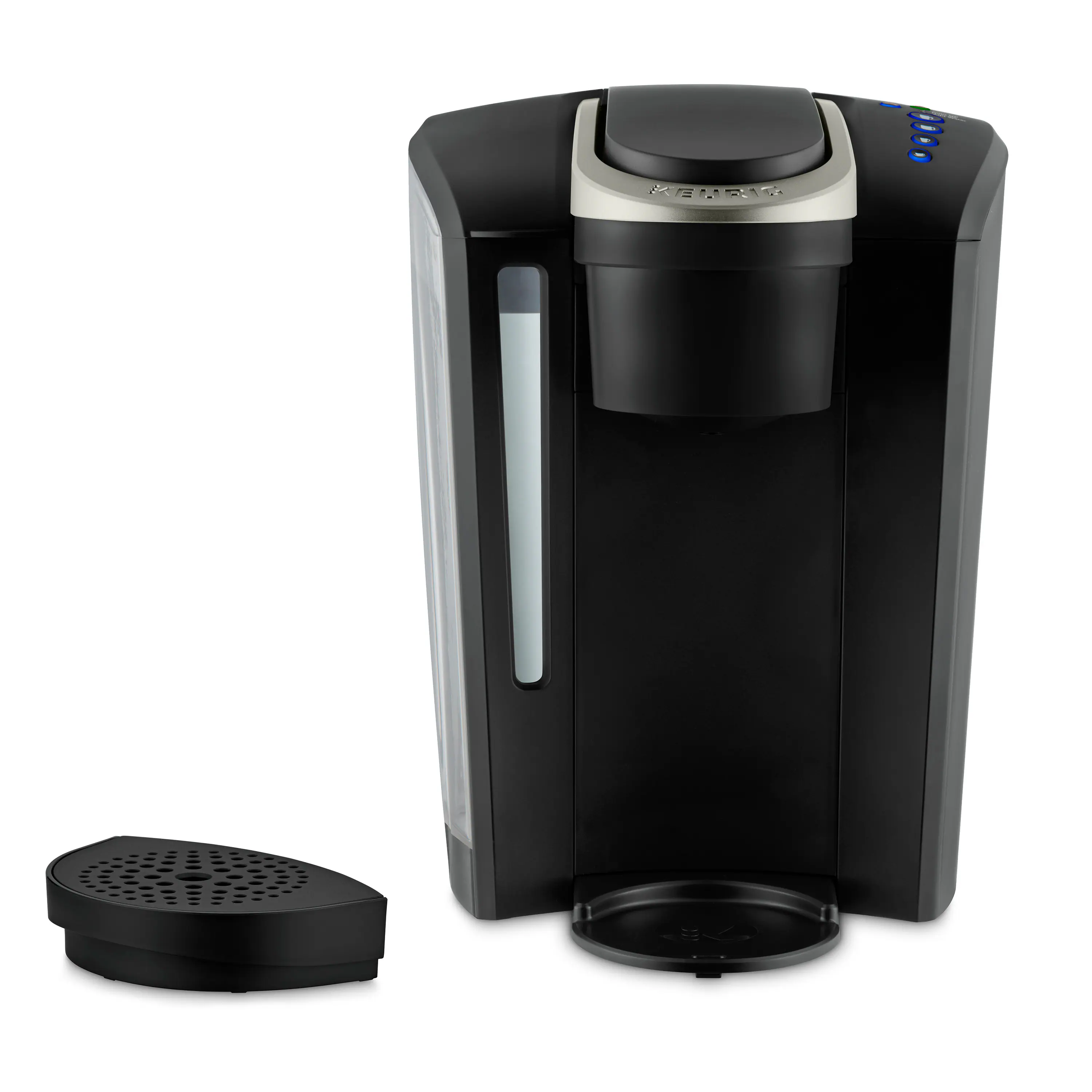The Keurig K-Select single serve coffee maker in Matte Black combines sleek design and more intuitive features to help you brew your perfect cup every single time. It features four brew sizes, so you can brew 6, 8, 10, or up to 12 oz. of your favorite coffee, tea, hot cocoa, or iced beverage with the touch of a button. And for those who like a stronger cup of coffee, the Keurig K-Select brewer is the perfect choice. The Strong Brew feature kicks up your coffee’s strength and intensity, so you can enjoy a bolder brew. Choose from hundreds of delicious varieties of K-Cup pods, or brew your own ground coffee with the My-K-Cup Universal Reusable Coffee Filter (sold separately). With the K-Select brewer, you can brew 5 cups between refills of the large 52 oz. water reservoir.