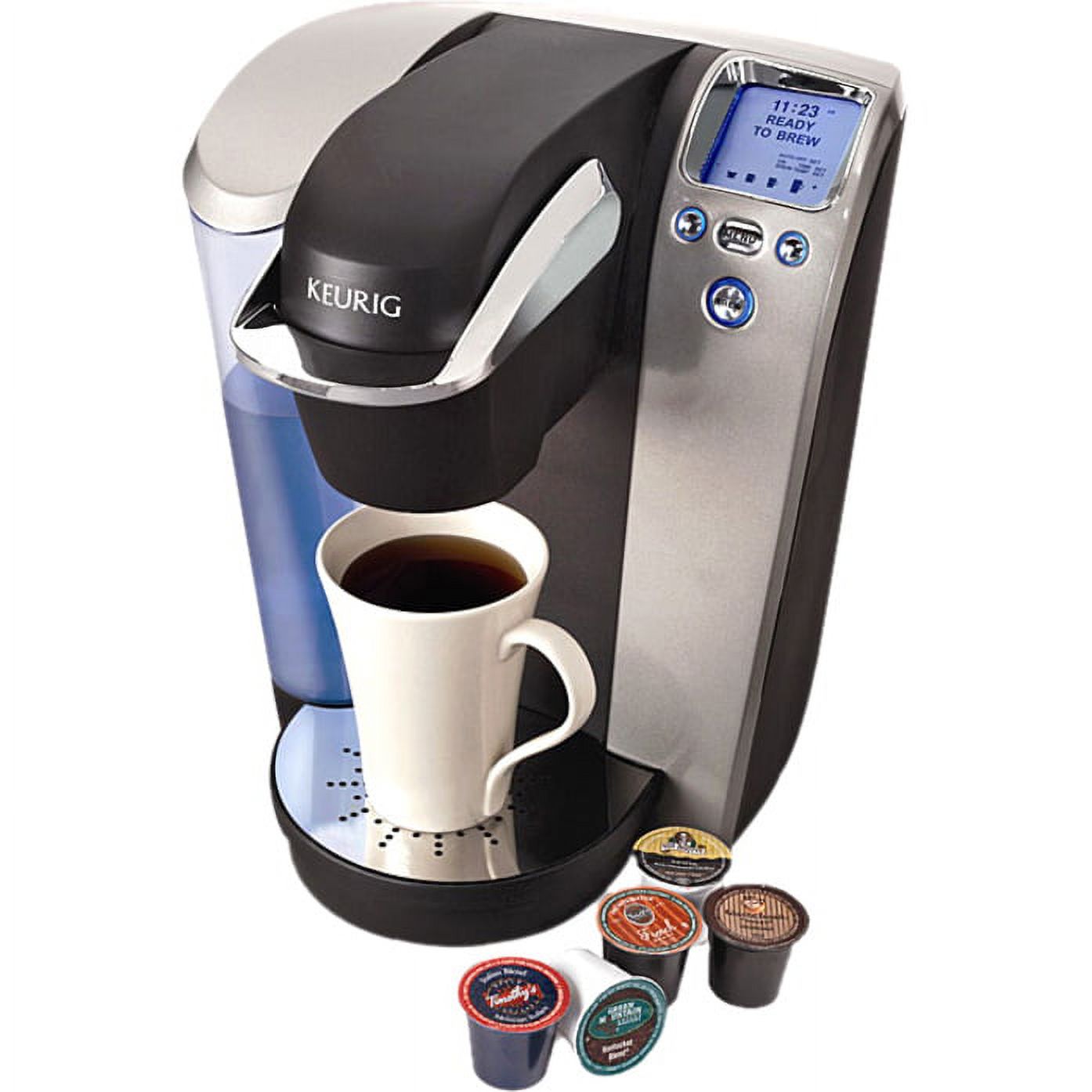 The Platinum Brewing System is Keurigs best single-cup brewing system for your home. This premium model brews a perfect cup of coffee tea hot cocoa or iced beverage at the touch of a button. and offers discerning coffee drinkers the widest range of five cup size options for brewing. it offers the full spectrum of features including Auto On & Off Digital Clock Adjustable Temperature Control and the Set Your Favorite Cup Size 4 Oz. 6 Oz. 8 Oz. 10 Oz. & 12 Oz. option. 72 Oz. removable water reservoir…