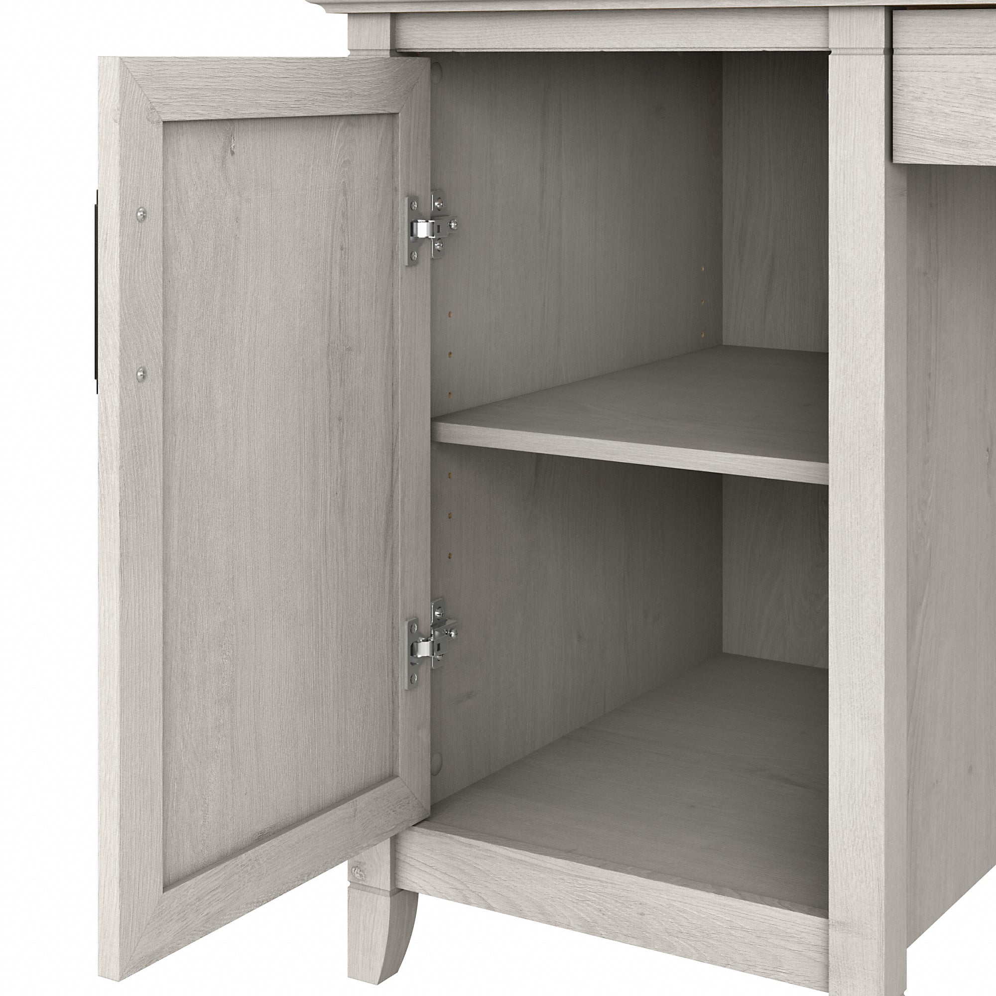 Computer Desk’s durable 54W x 24D desktop provides plenty of room to spread out with materials Keyboard or laptop tray features a cut out hole for wires to pass through and a flip down front that folds up neatly when not in use Storage cabinet includes one adjustable shelf to accommodate a variety of work materials Work surface easily supports a computer, books and more with a 200 pound weight capacity Unique X pattern accents on the cabinet door and side panel give the office desk with storage a relaxed appearance Sturdy and attractive post leg design withstands years of use in a home office or living room Multiple finish options allow you to choose the perfect farmhouse style for any living space Surface accepts Desktop Organizers (sold separately) for convenient storage of paperwork and supplies Tested to meet ANSI/SOHO quality standards for safety and performance Backed by the Bush Furniture 1 Year Manufacturer’s Warranty