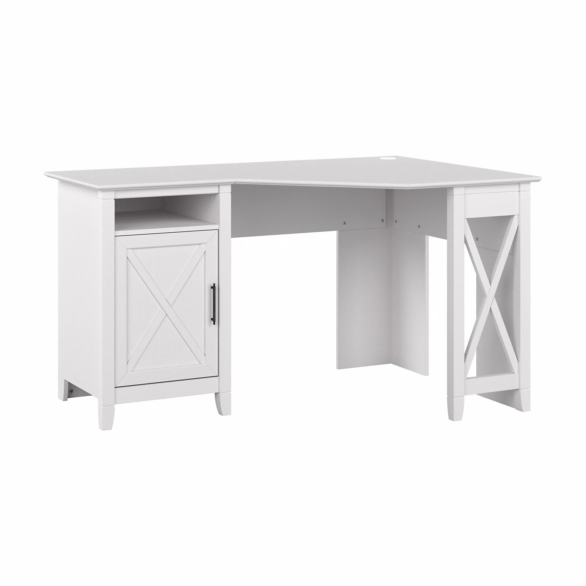 Corner Computer Desk with Storage provides an ideal workspace solution for casual home offices Durable desktop supports a computer, books and other materials with a weight capacity of 200 pounds Corner Desk surface features a built-in wire management grommet to keep cords and cables in order Thoughtfully designed for maximum stability and includes hardware to anchor the home office desk to a wall Storage cabinet contains one fixed shelf and one adjustable shelf to accommodate work materials of various sizes Open cubby is a perfect place to stash work-in-progress and other frequently used items Post leg design and unique X pattern accents convey a casual look that works well with cottage, coastal and modern farmhouse style Available in your choice of slightly distressed finish options Bush Furniture’s commitment to safety includes rigorous testing that meets or exceeds ANSI/SOHO standards Backed by a 1 Year Manufacturer’s Warranty